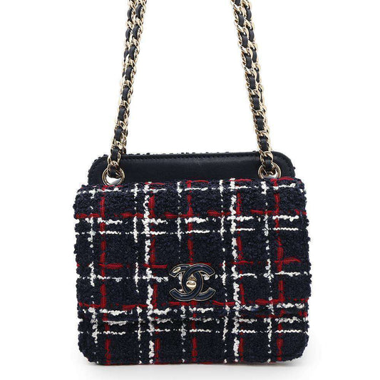 CHANEL Matelasse ChainShoulder Bag Navy Tweed Lambskin