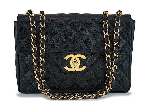 Chanel Vintage Black Caviar Jumbo Classic Flap Bag 24k GHW