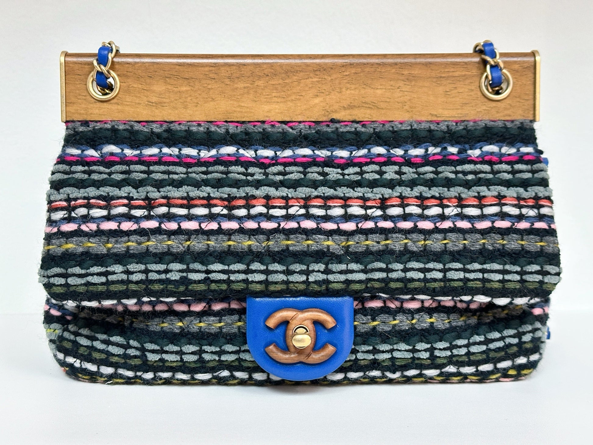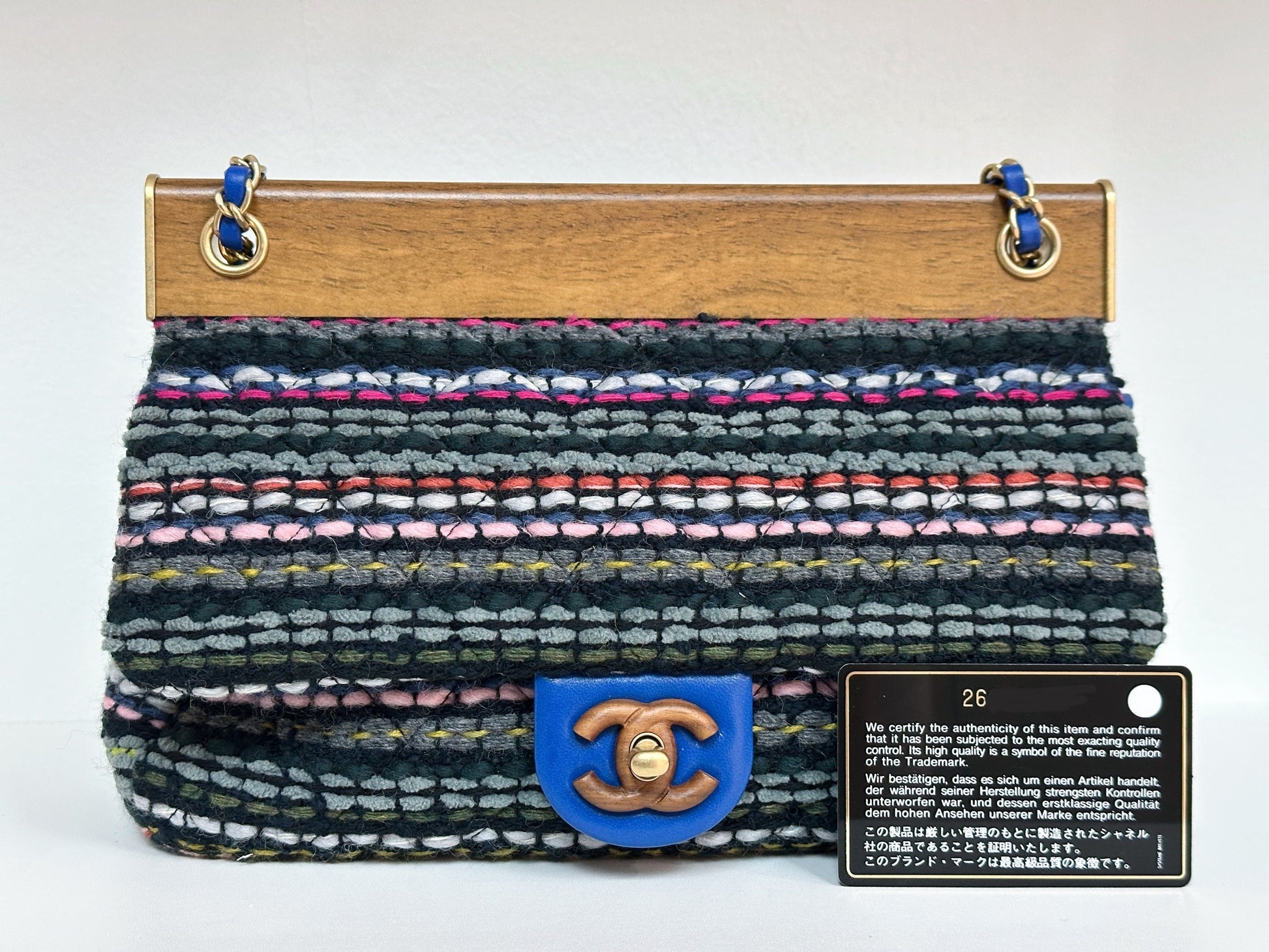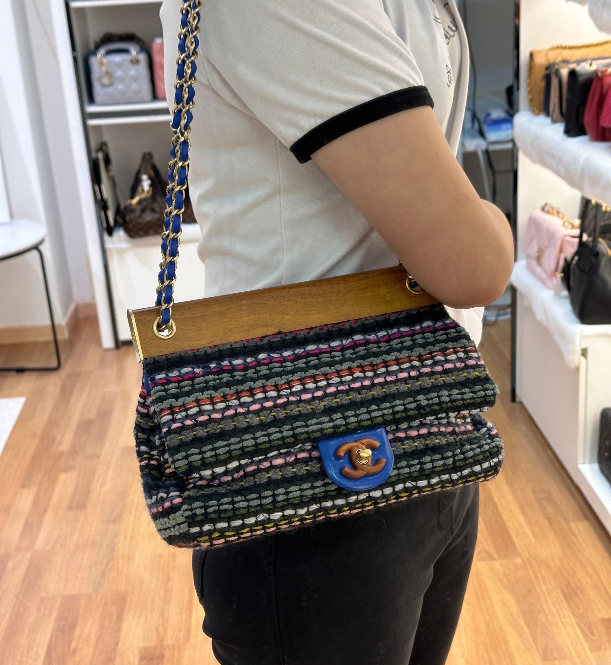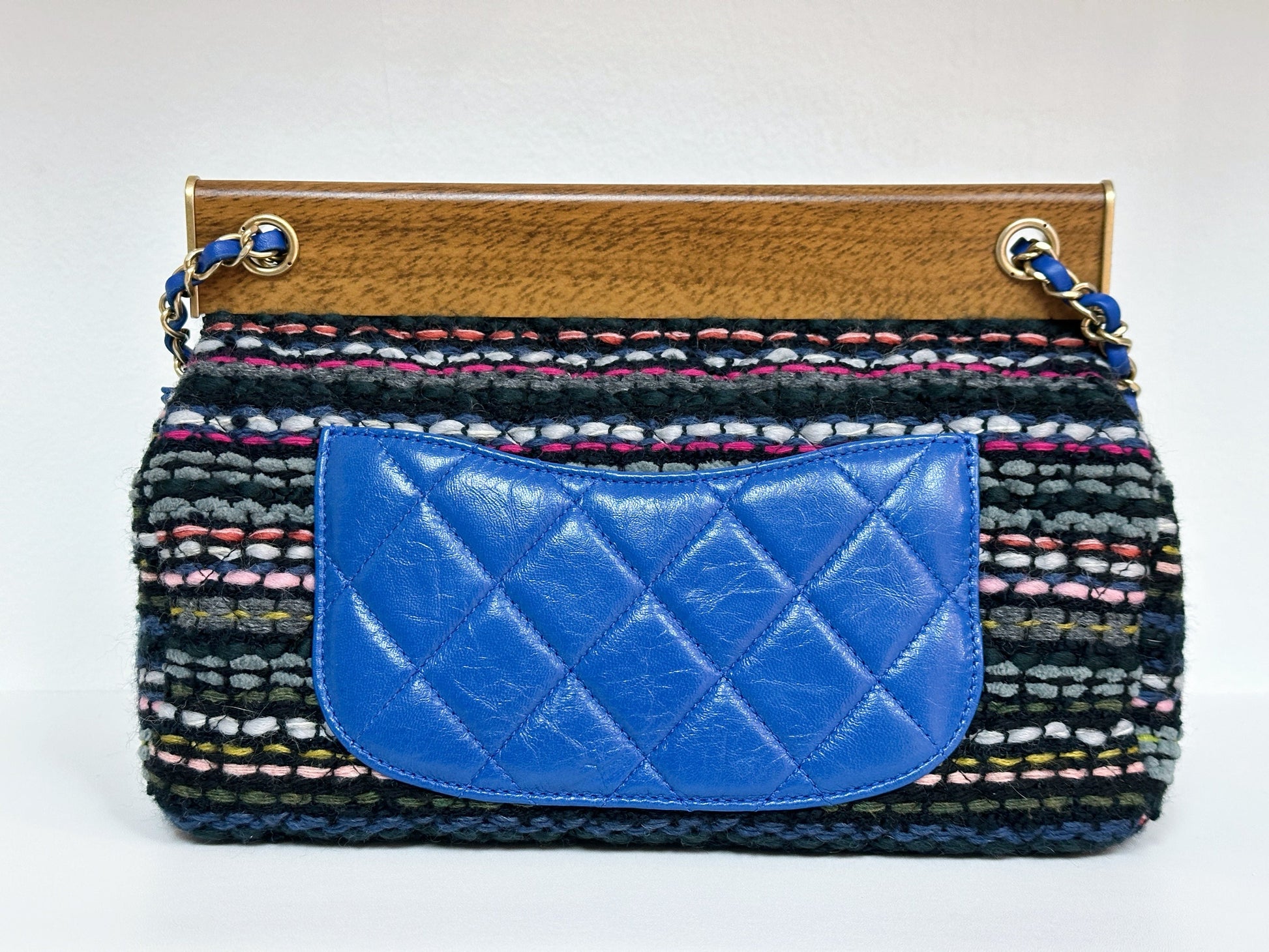 CHANEL Classic Flap Frame Knock on the Wood Tweed Shoulder Bag 2018 holo 2666