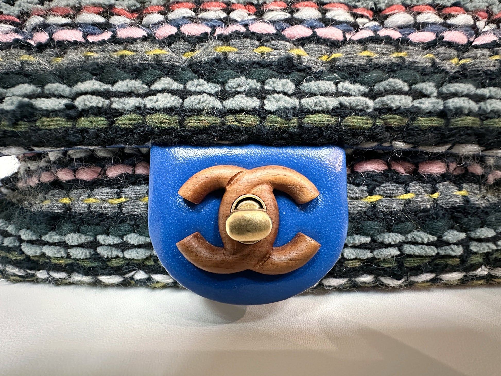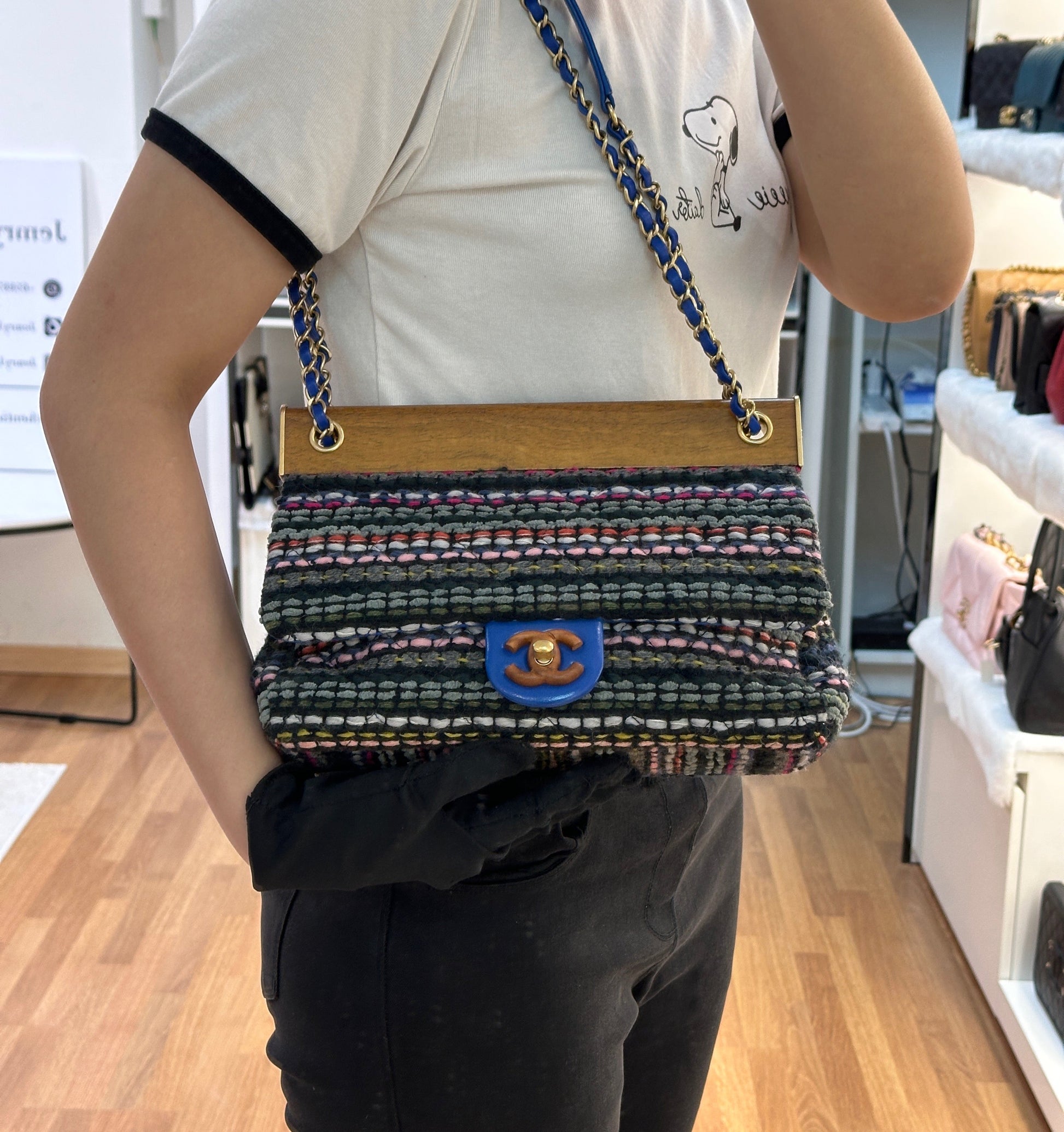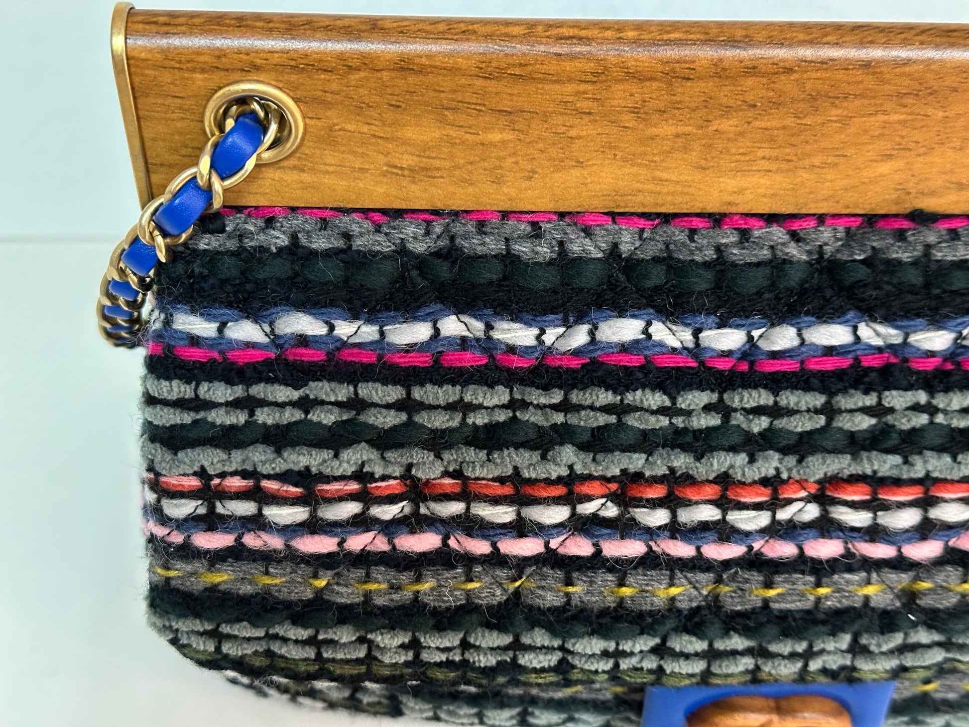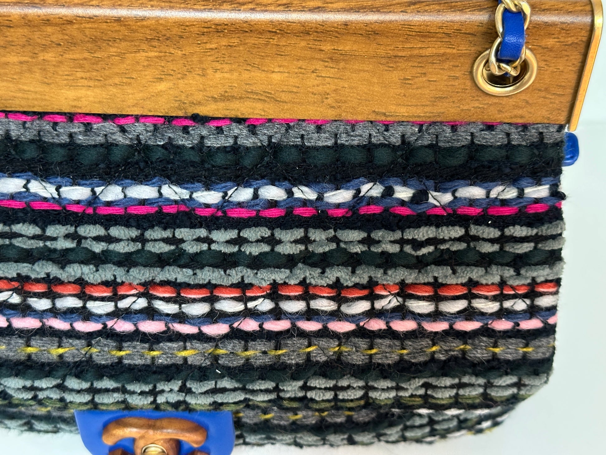 CHANEL Classic Flap Frame Knock on the Wood Tweed Shoulder Bag 2018 holo 2666