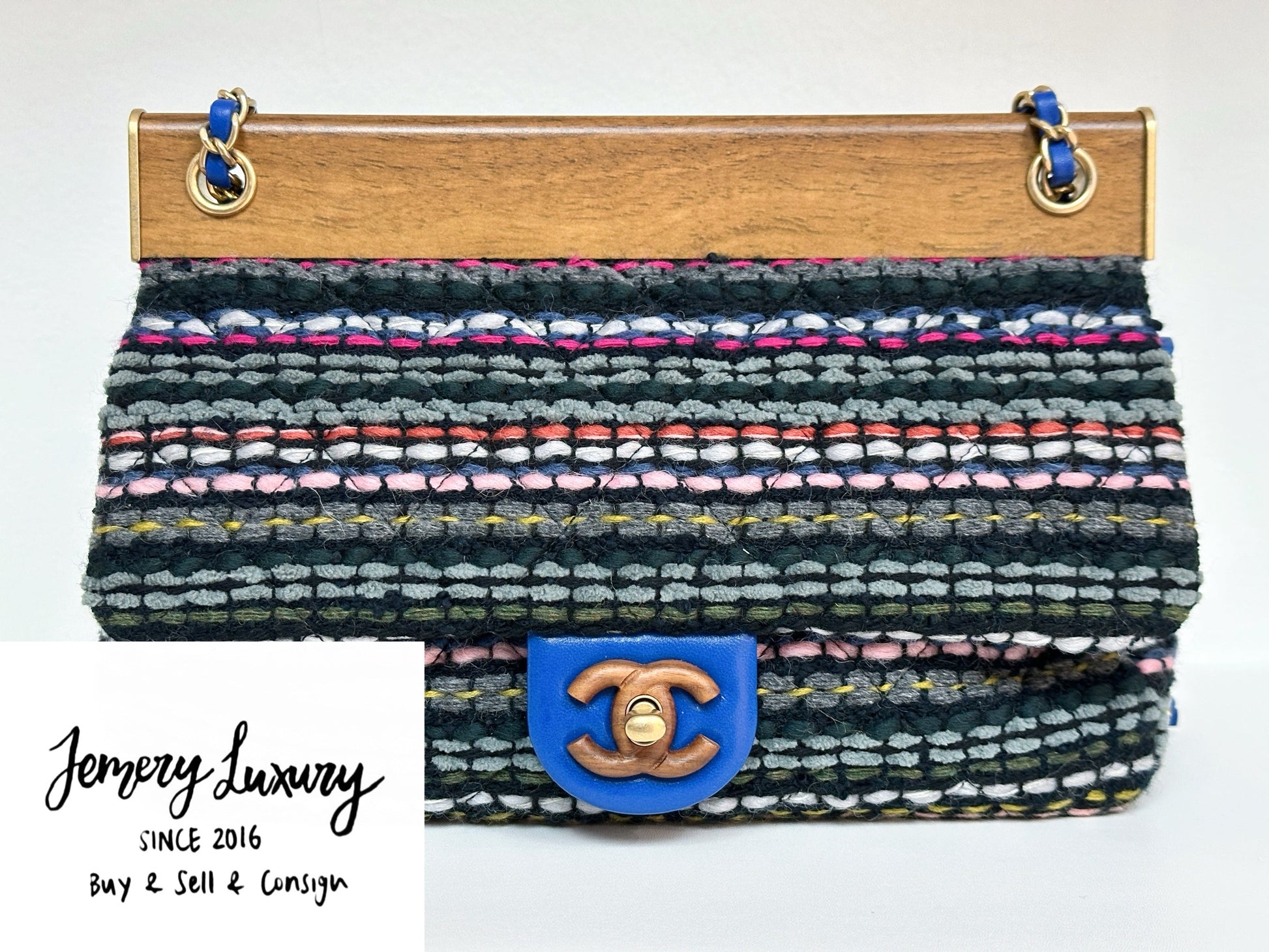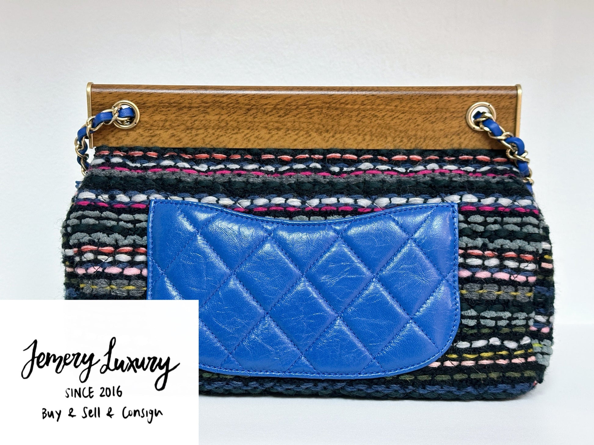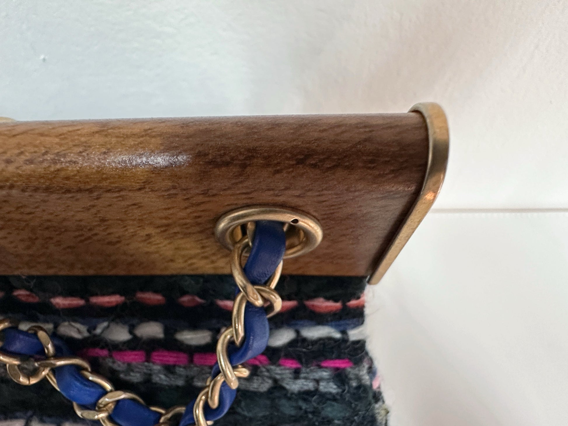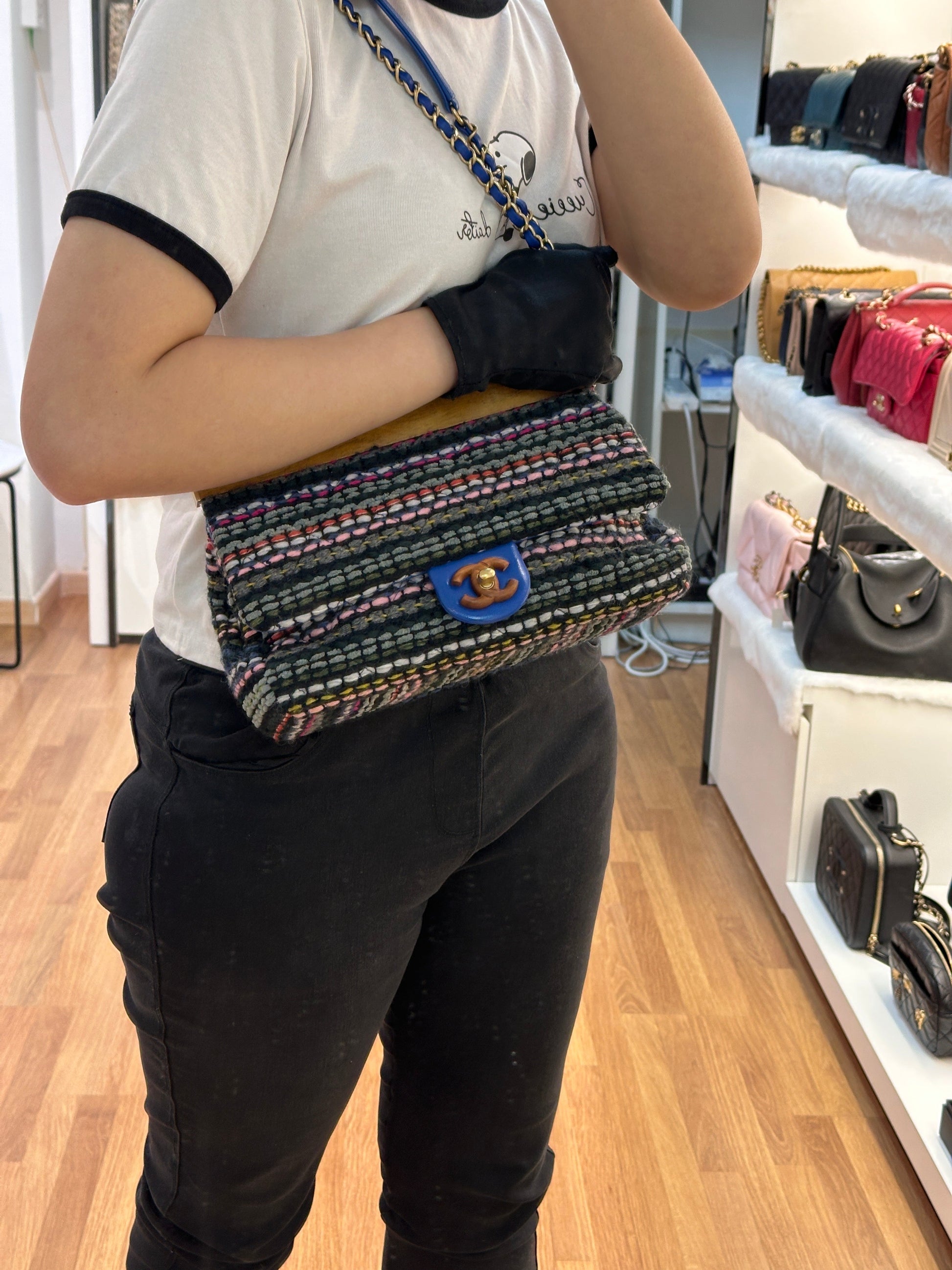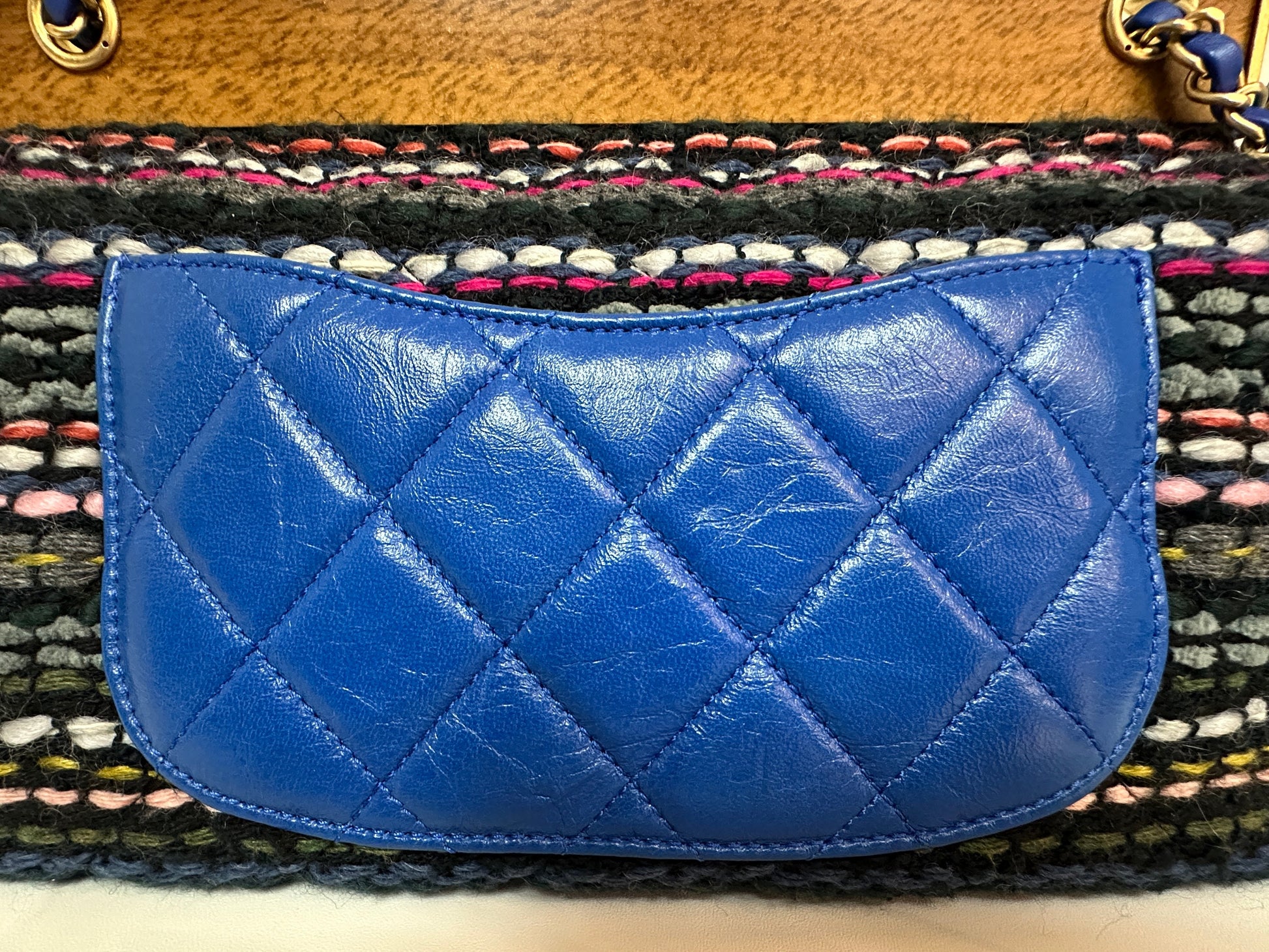 CHANEL Classic Flap Frame Knock on the Wood Tweed Shoulder Bag 2018 holo 2666