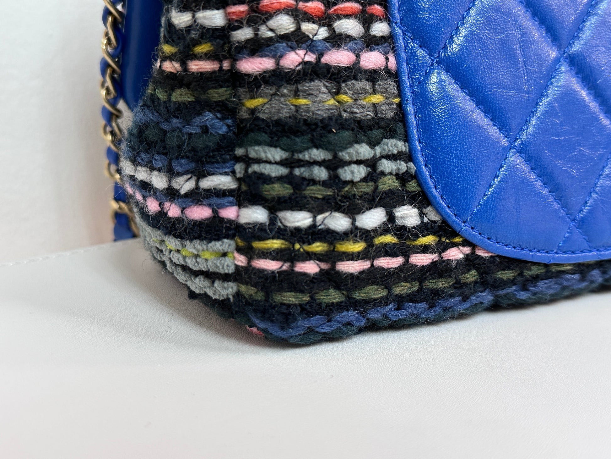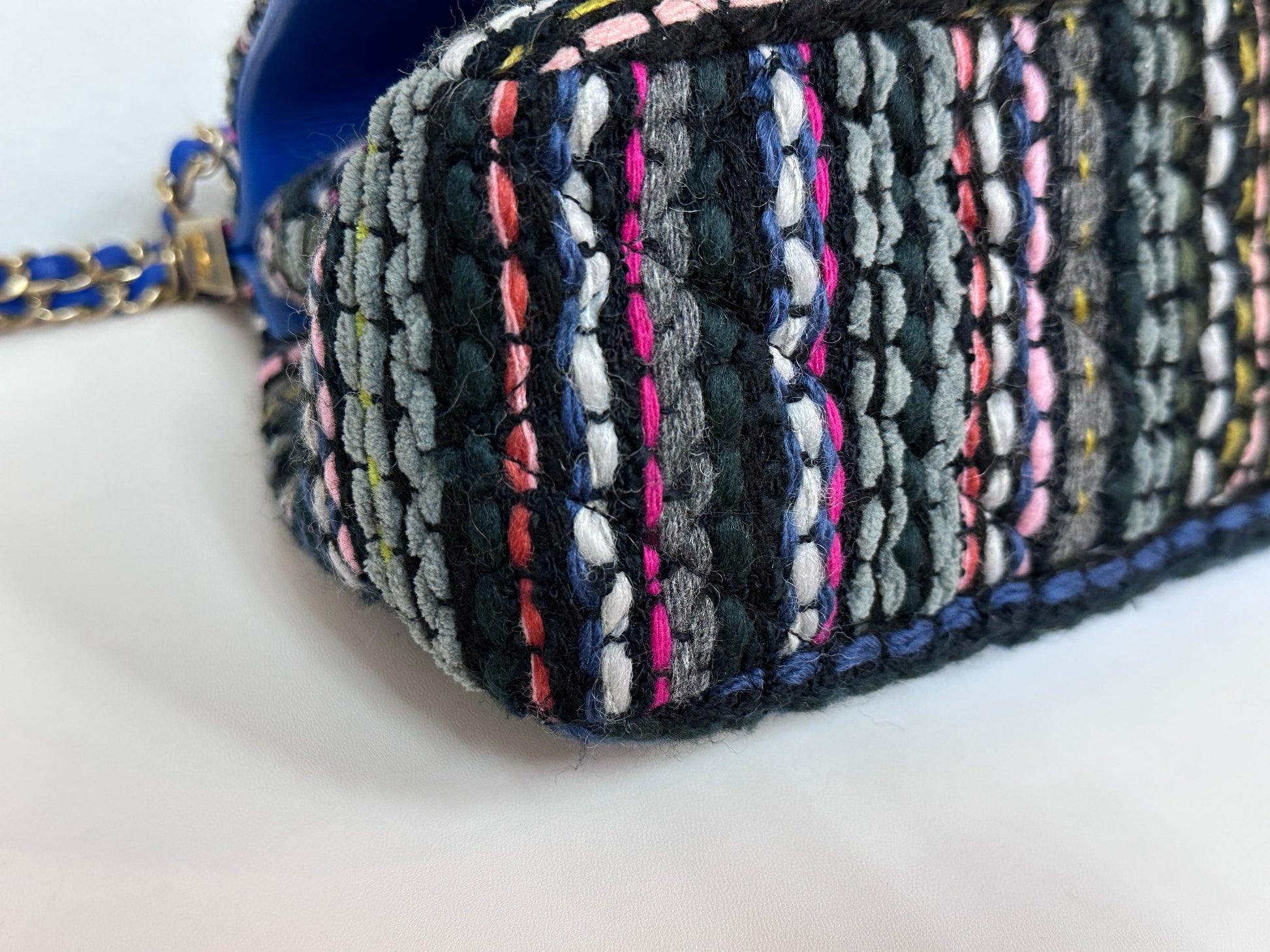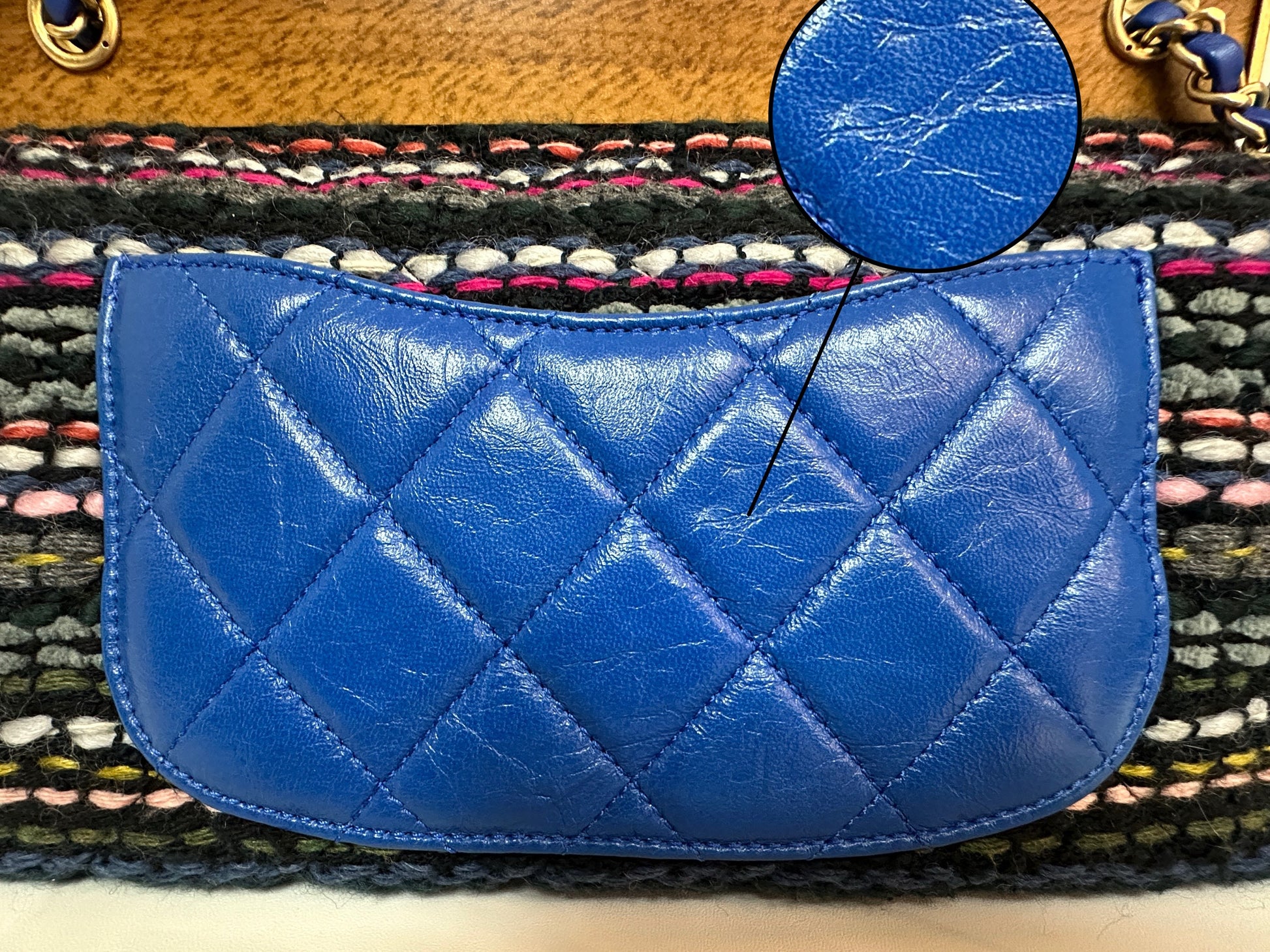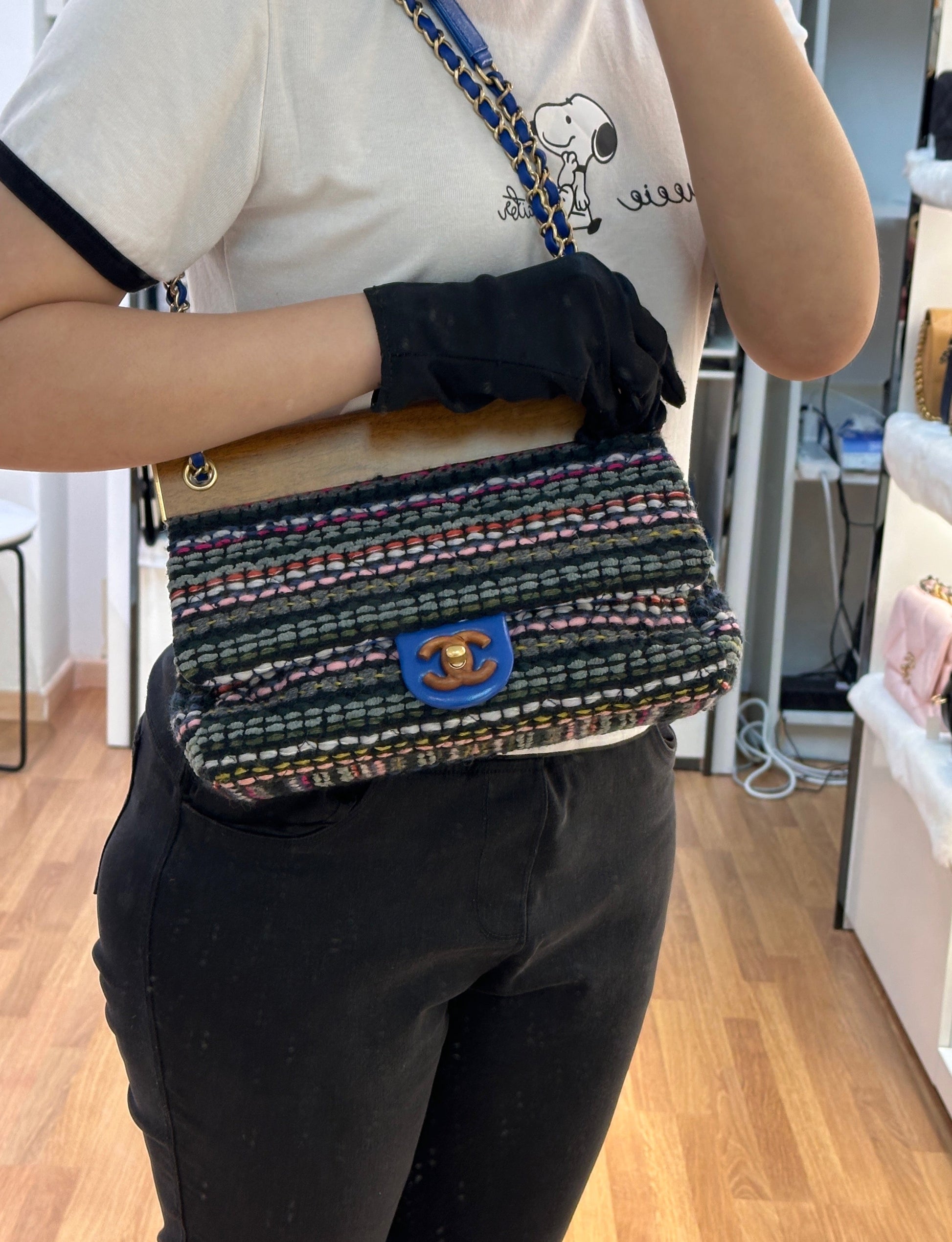 CHANEL Classic Flap Frame Knock on the Wood Tweed Shoulder Bag 2018 holo 2666