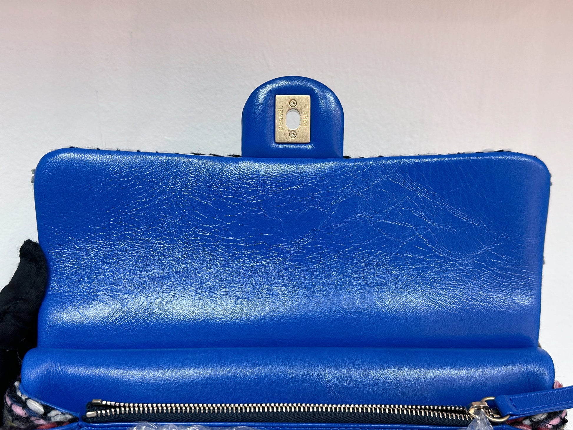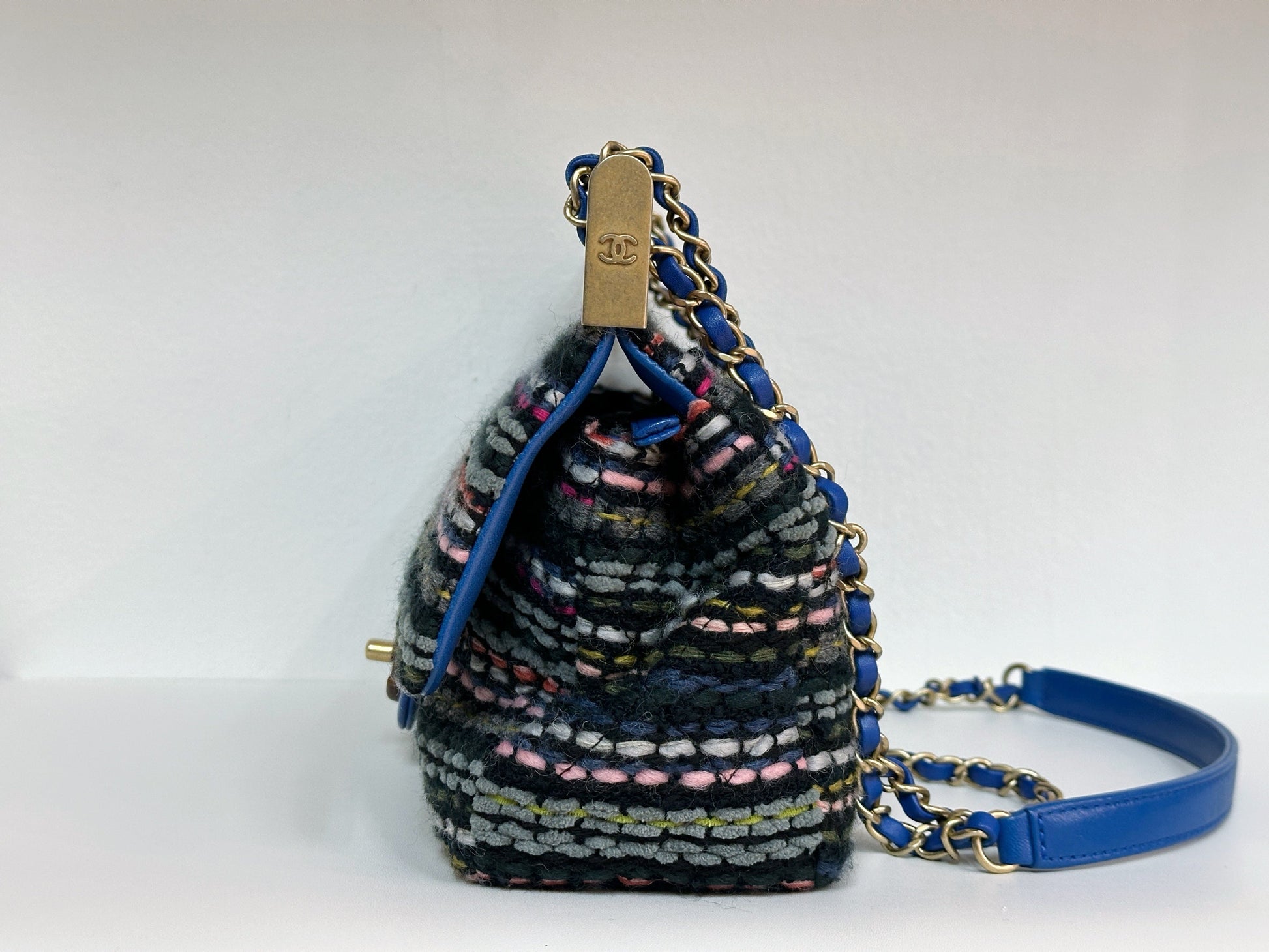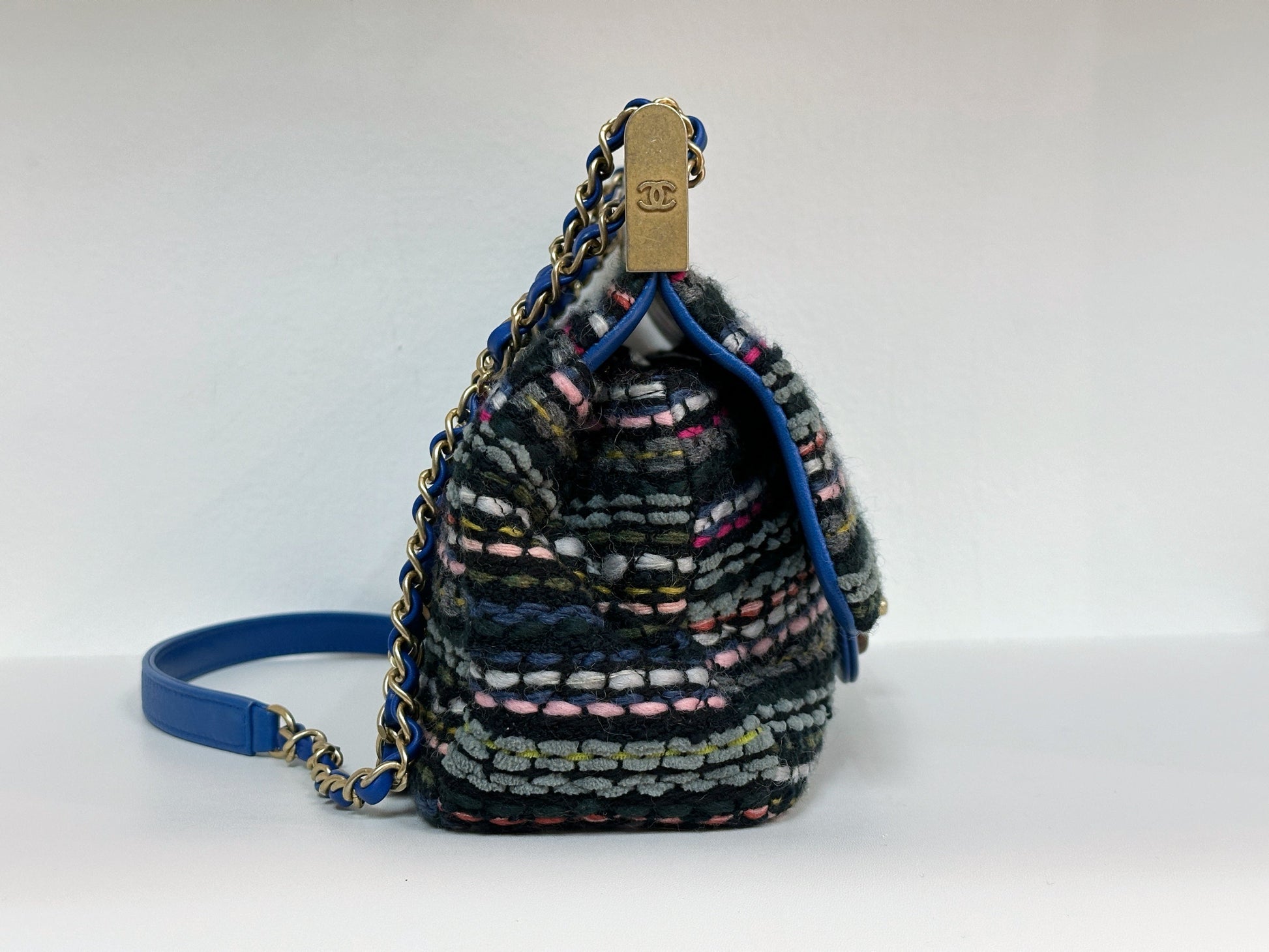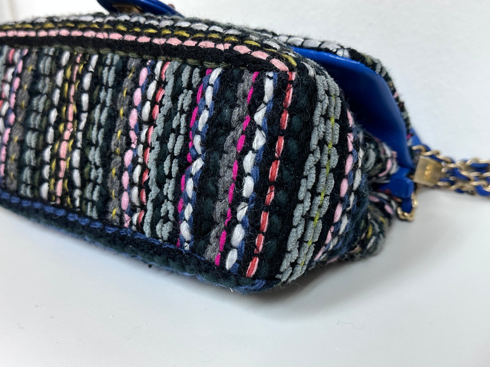CHANEL Classic Flap Frame Knock on the Wood Tweed Shoulder Bag 2018 holo 2666