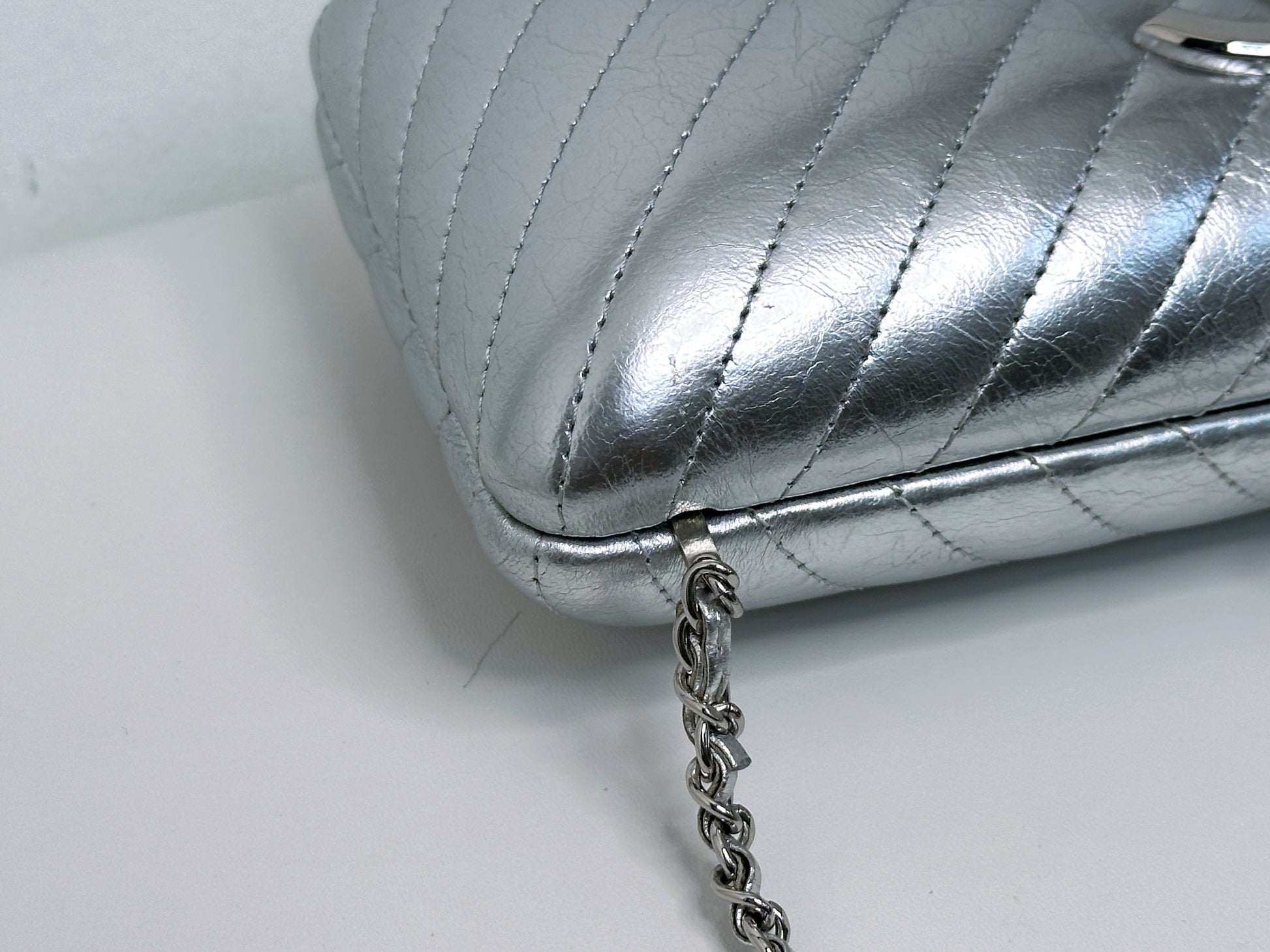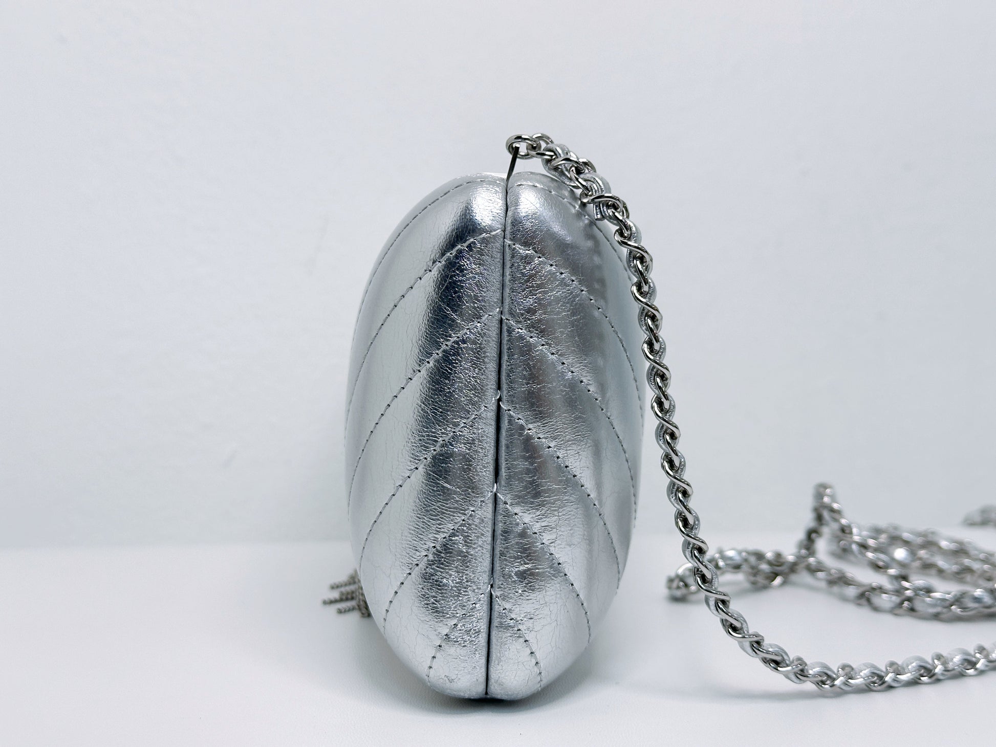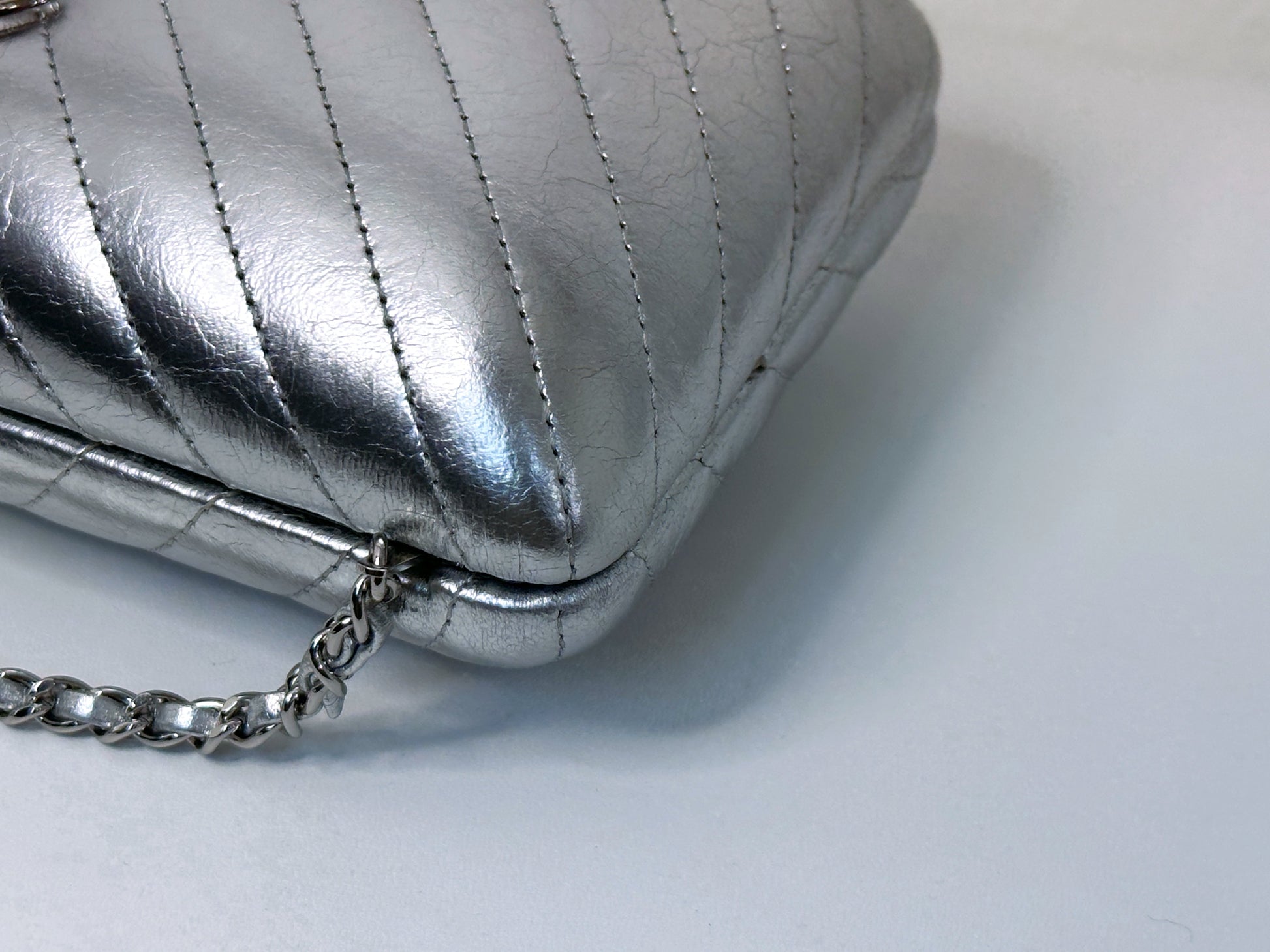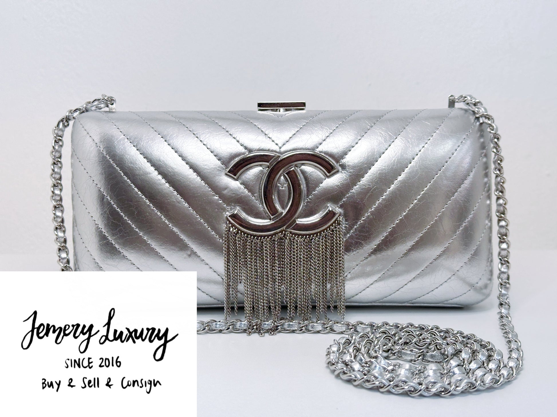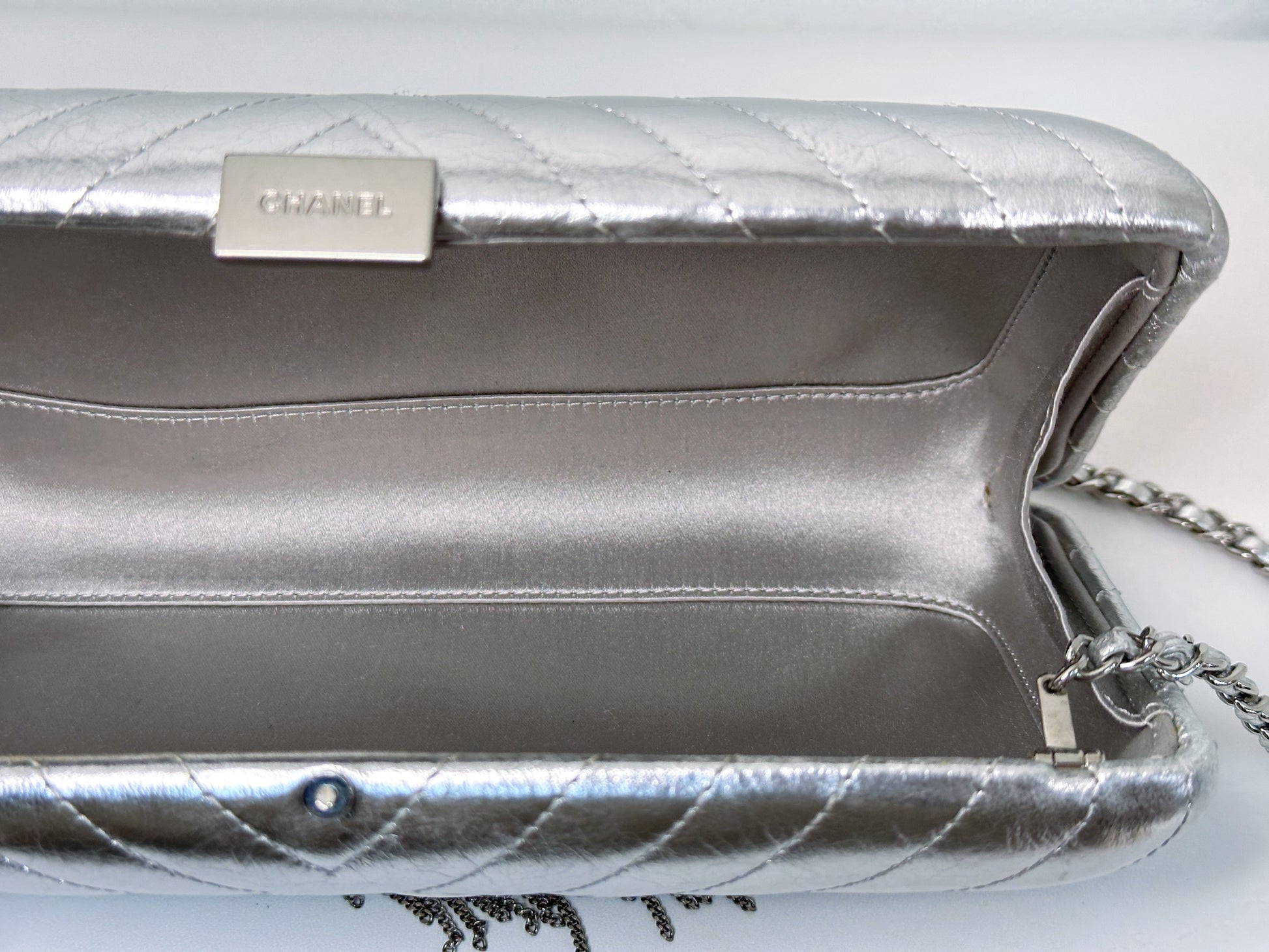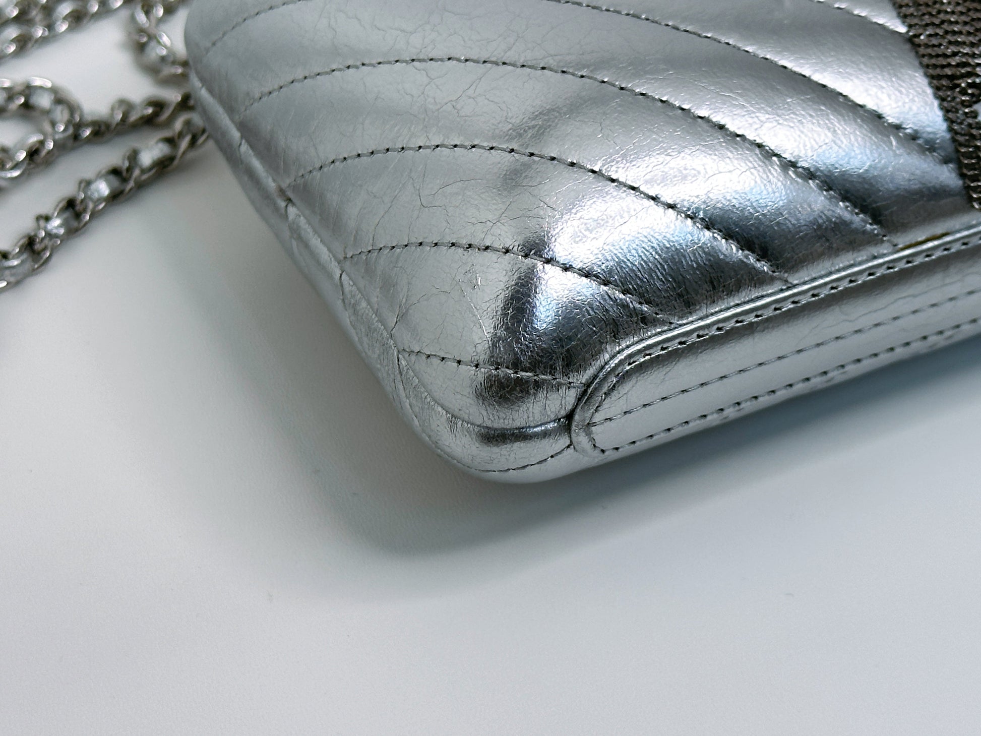 Chanel Silver Chain Fringe Leather Clutch Bag Silvery 2572 holo