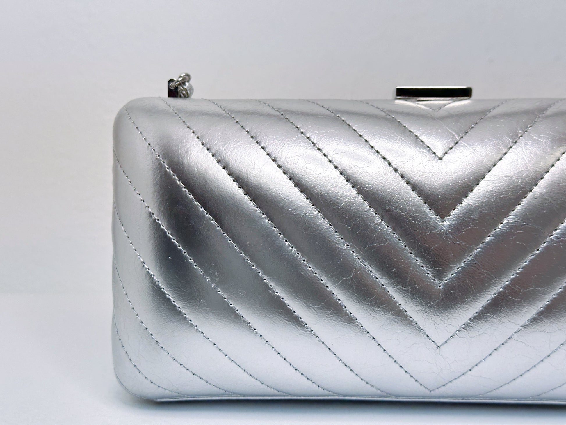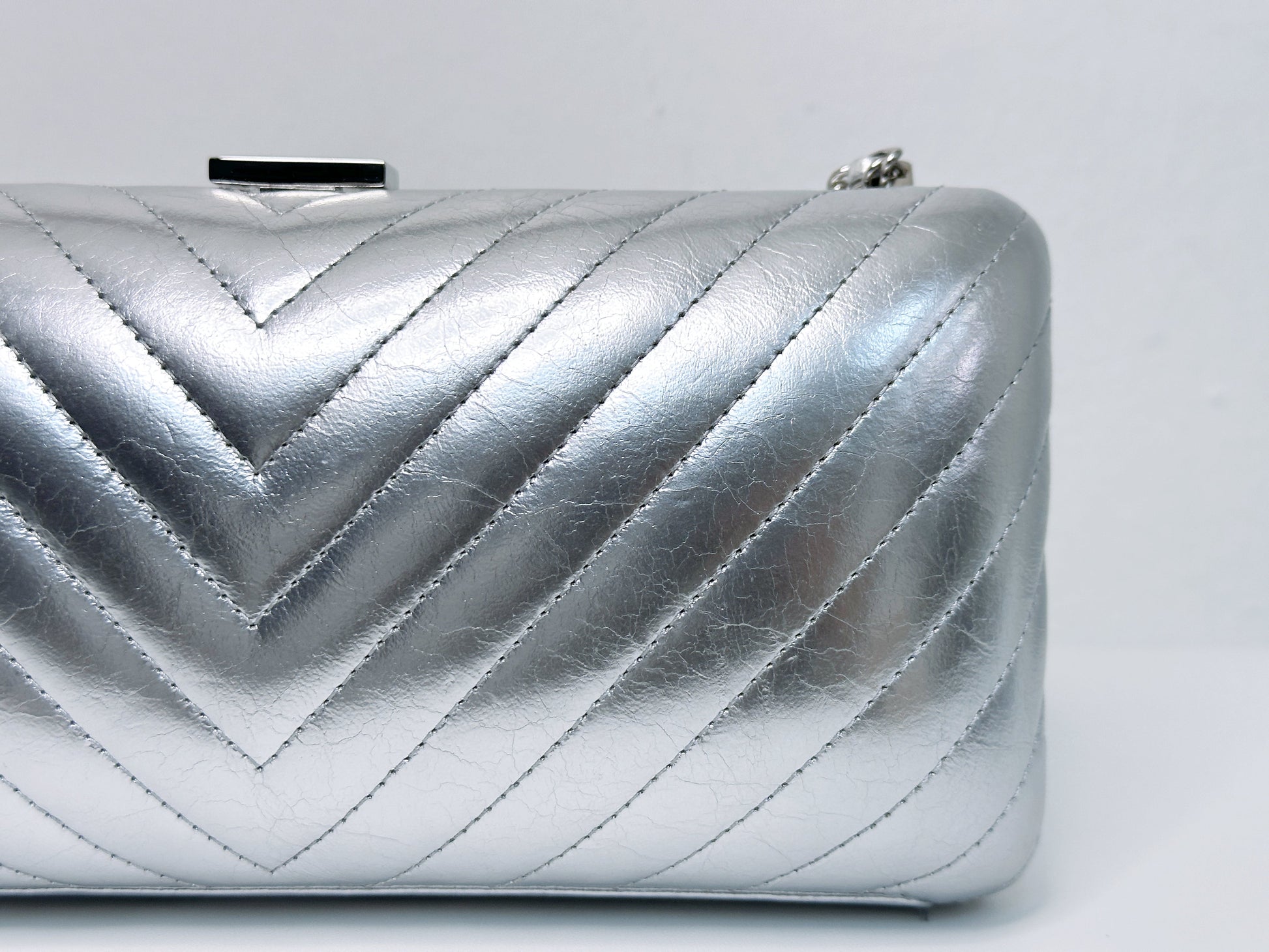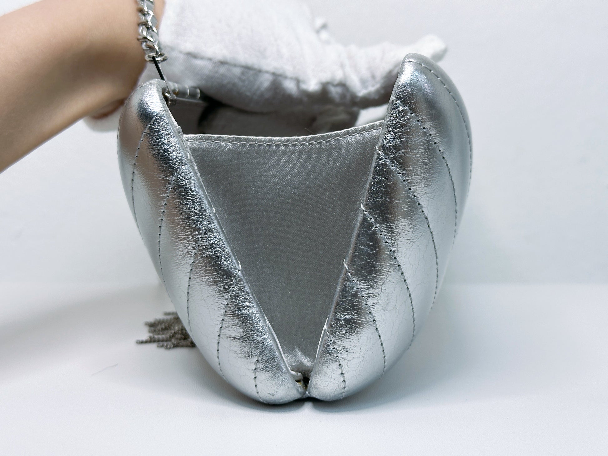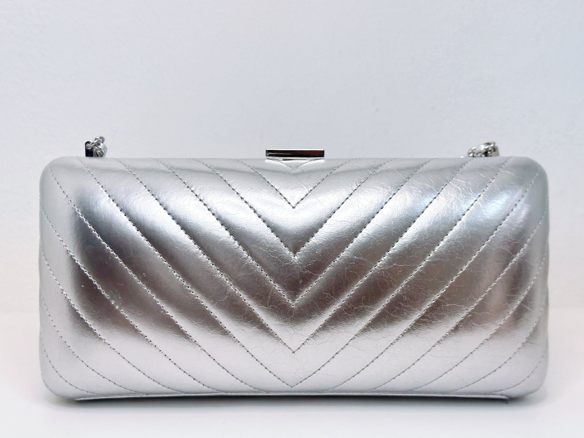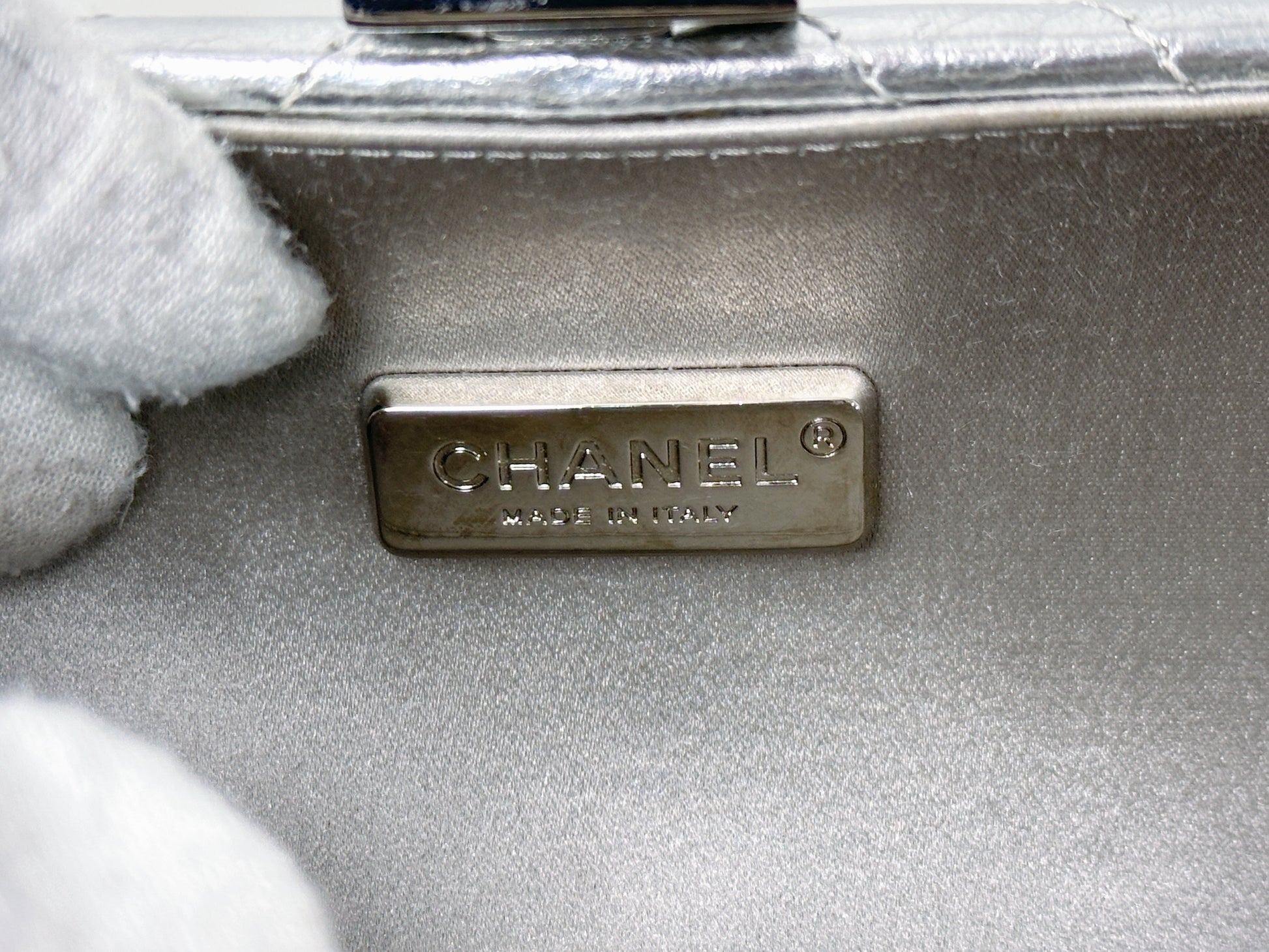 Chanel Silver Chain Fringe Leather Clutch Bag Silvery 2572 holo