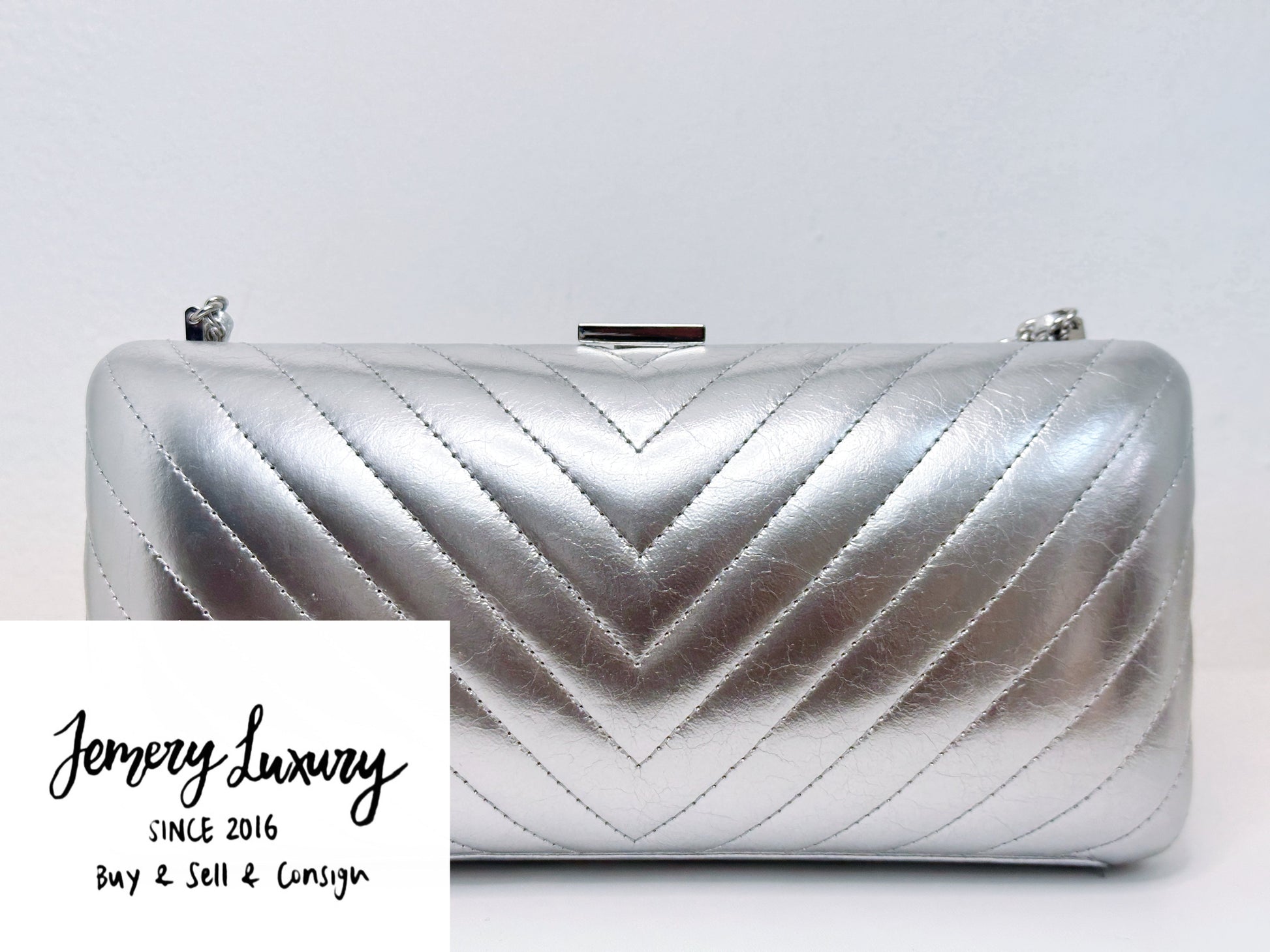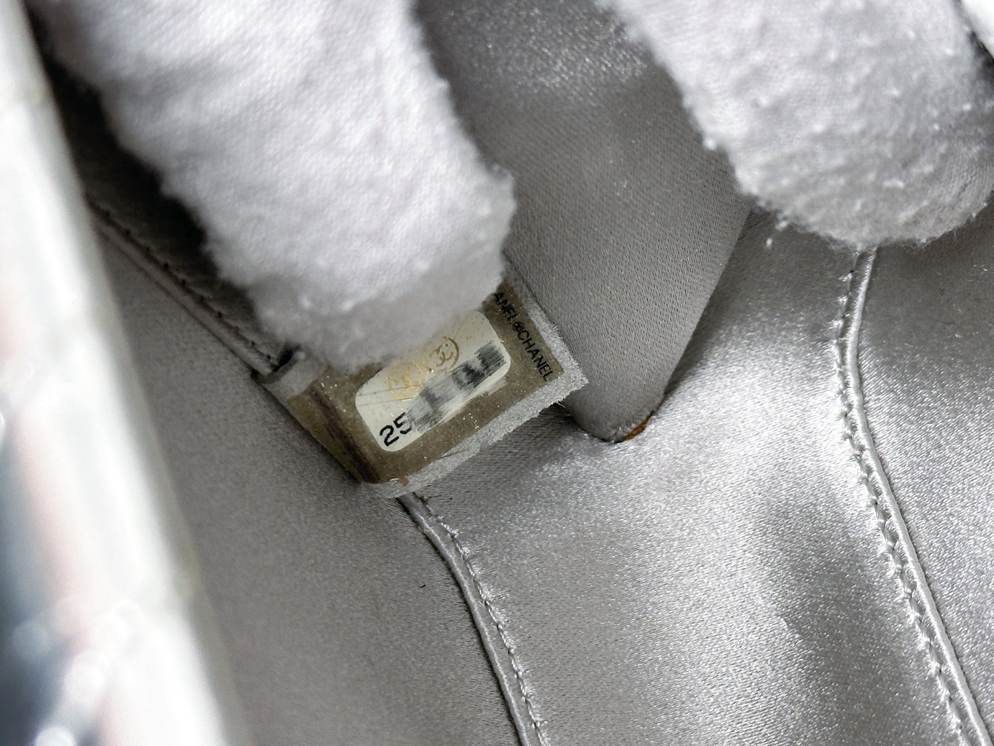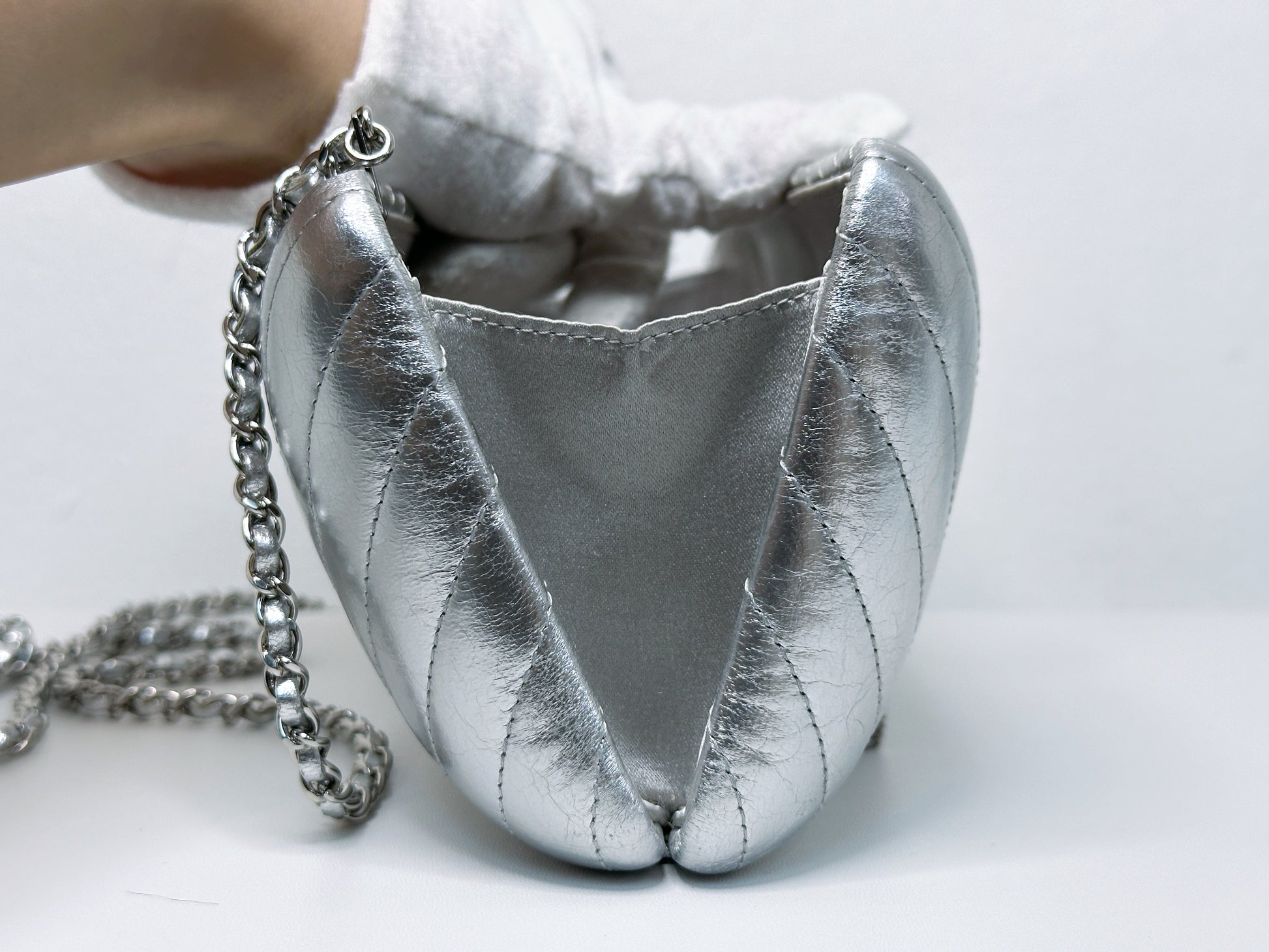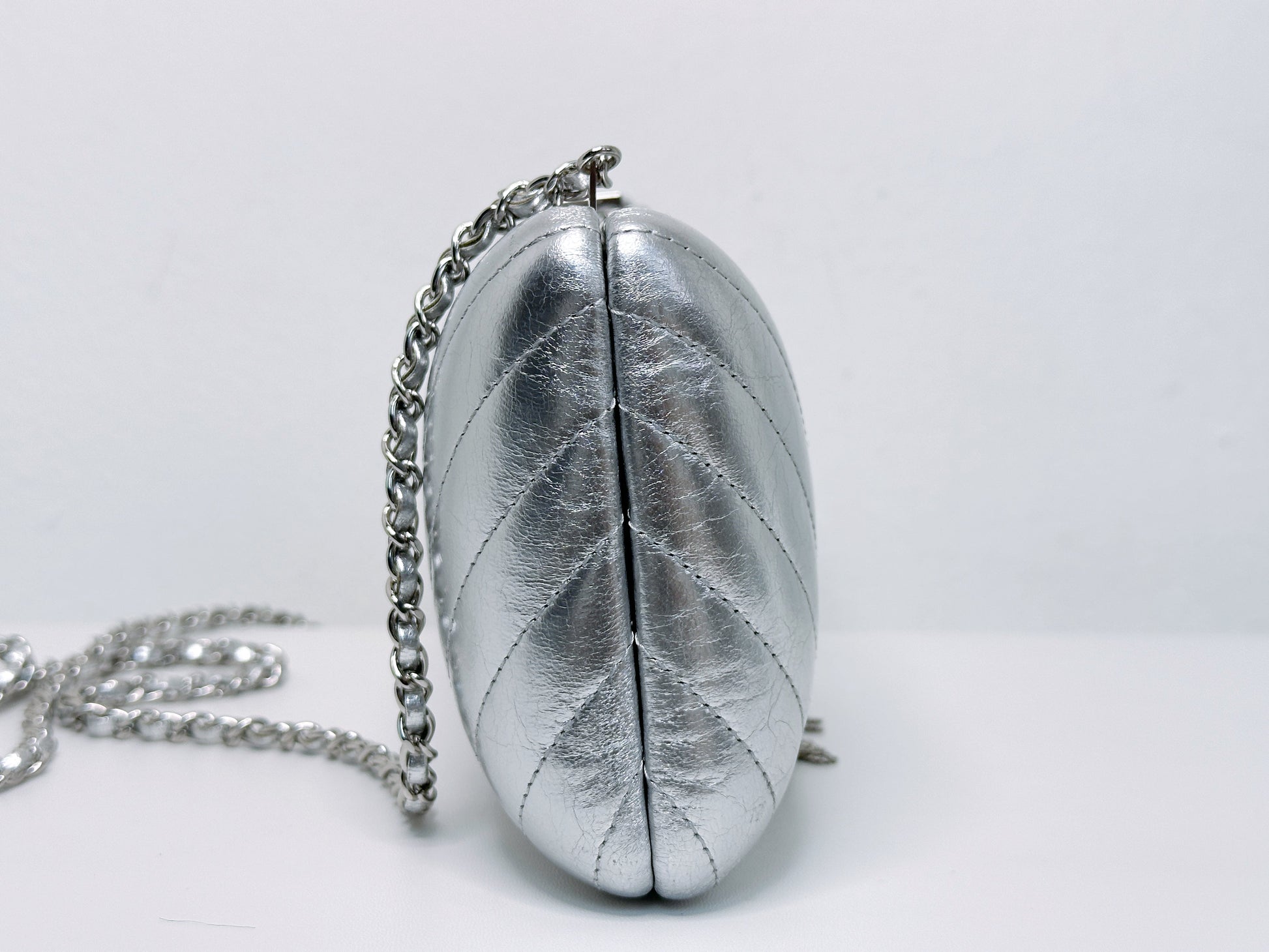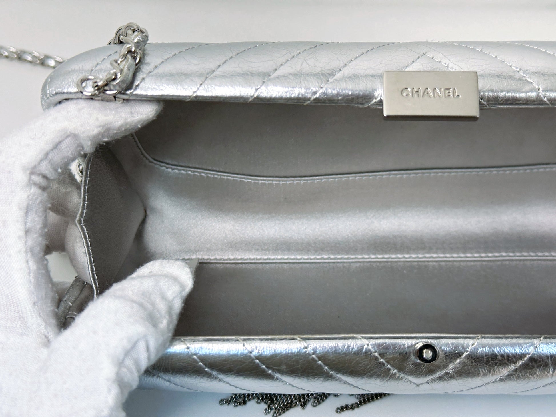 Chanel Silver Chain Fringe Leather Clutch Bag Silvery 2572 holo