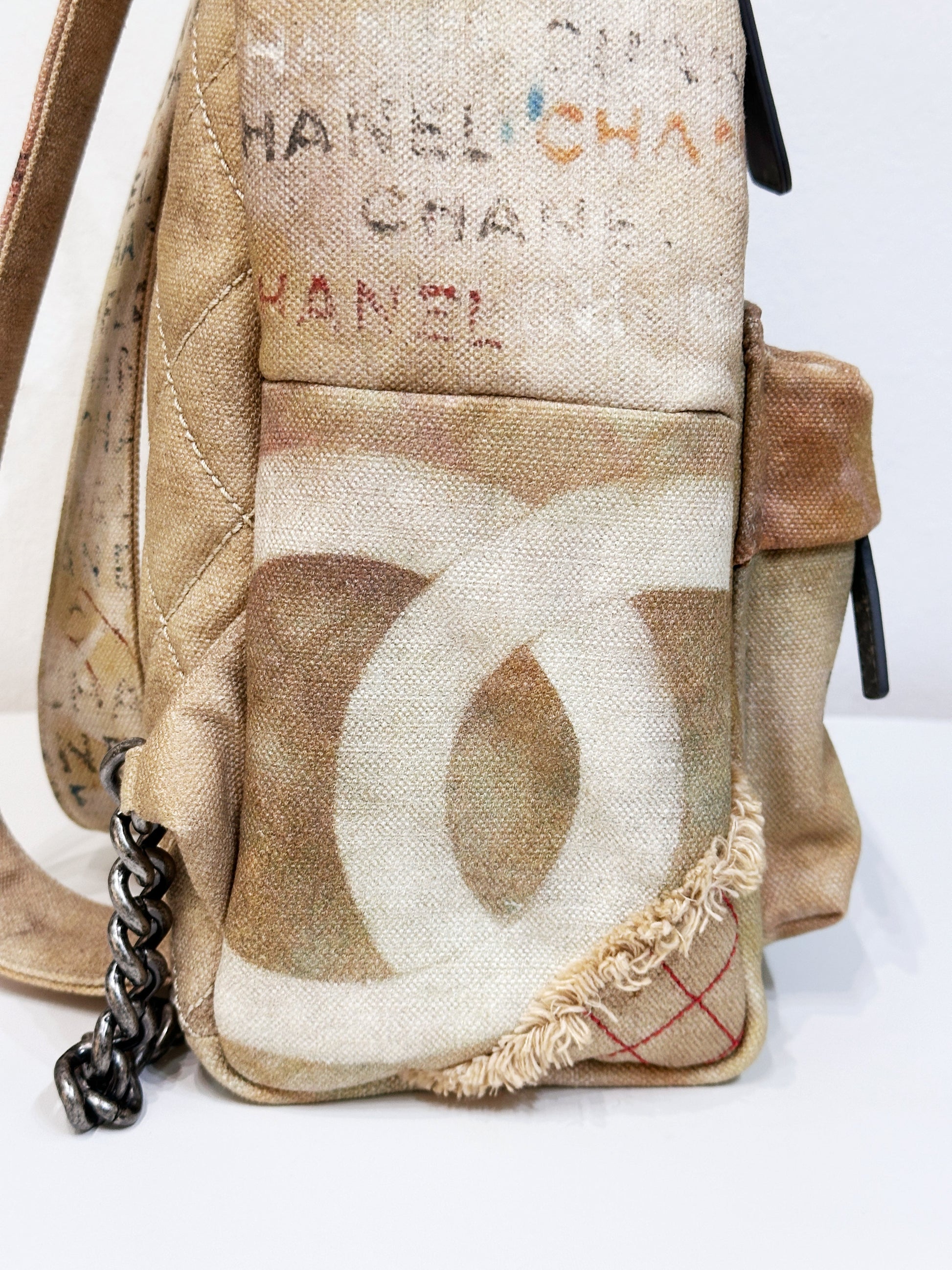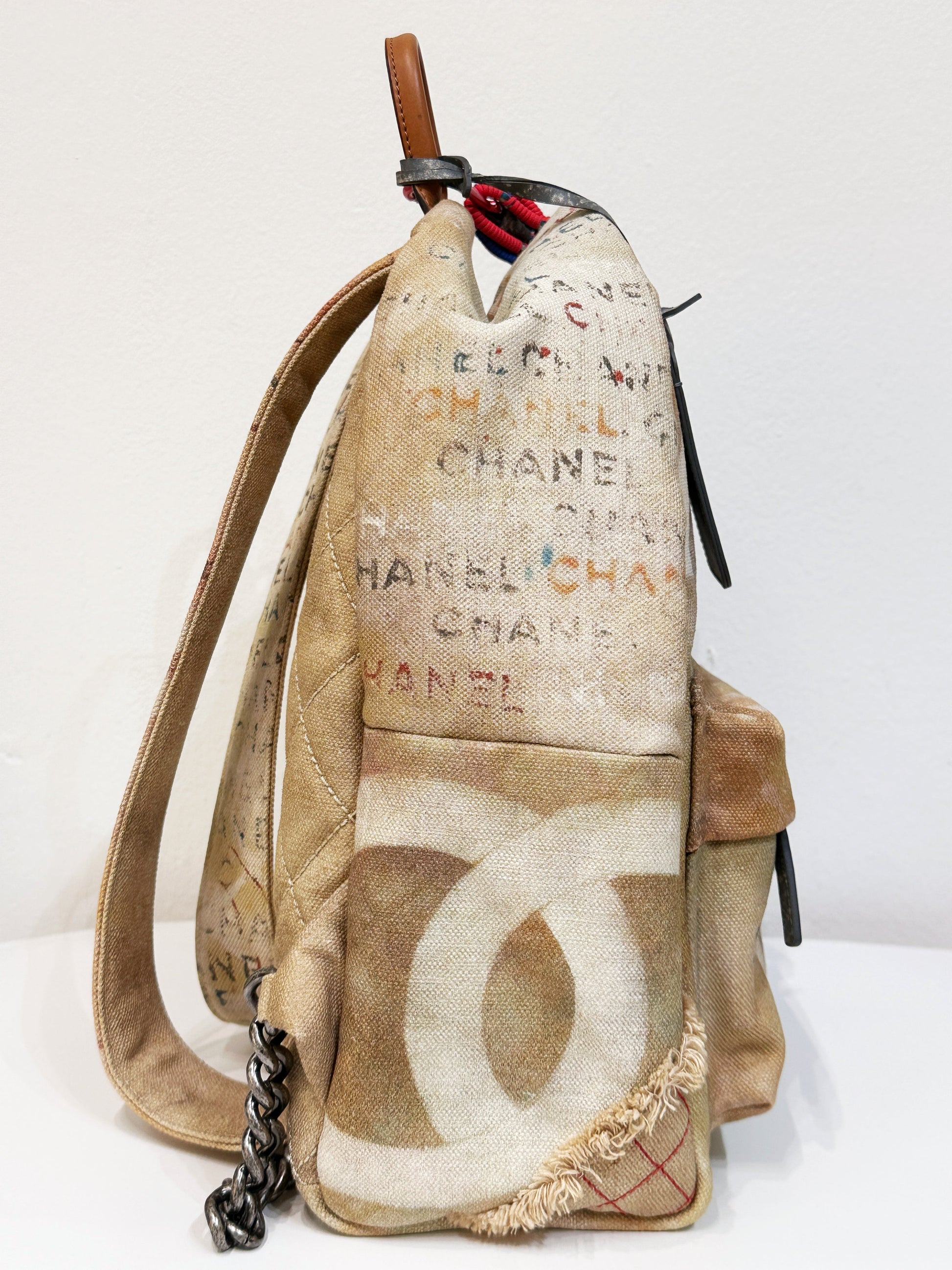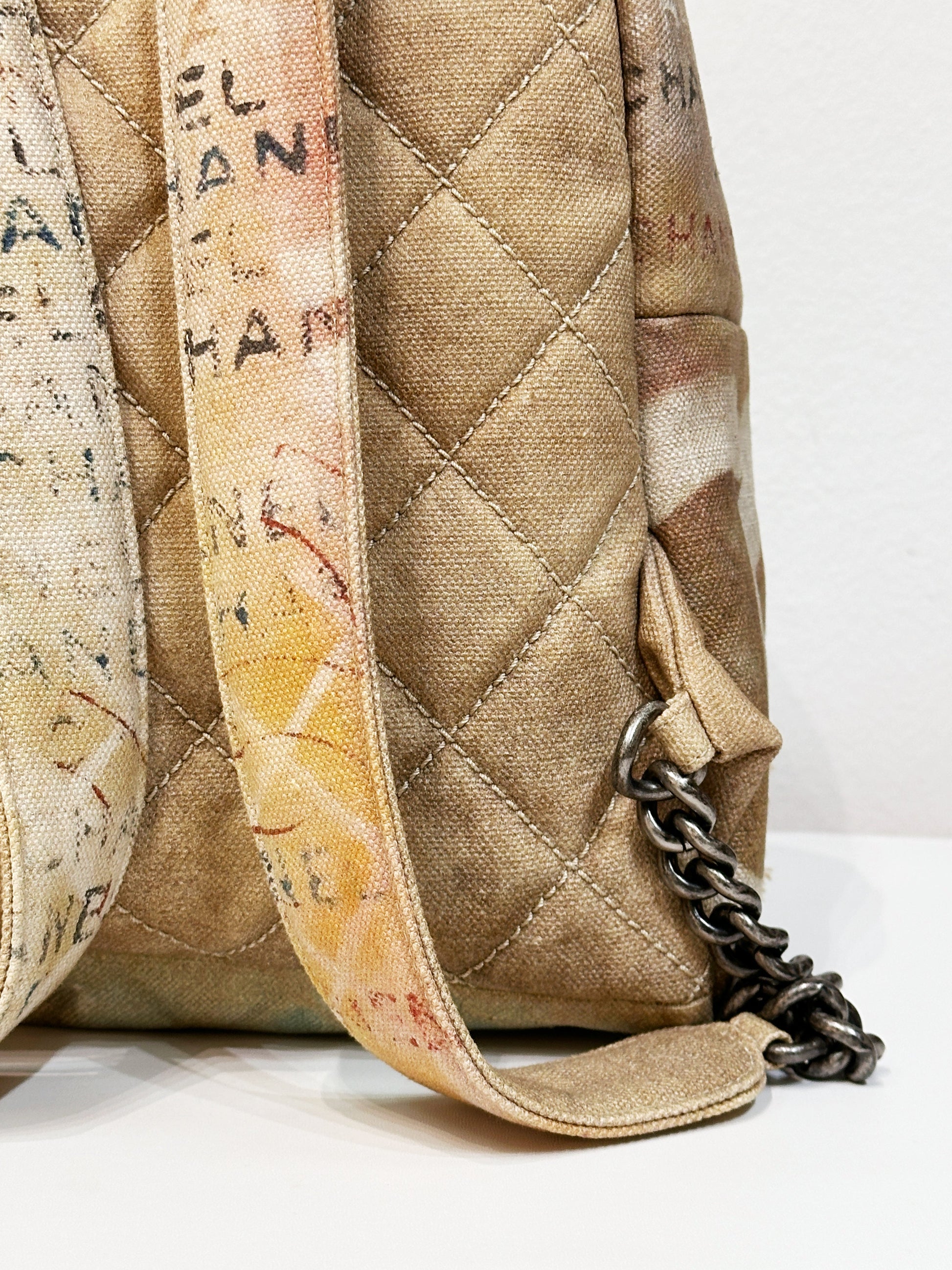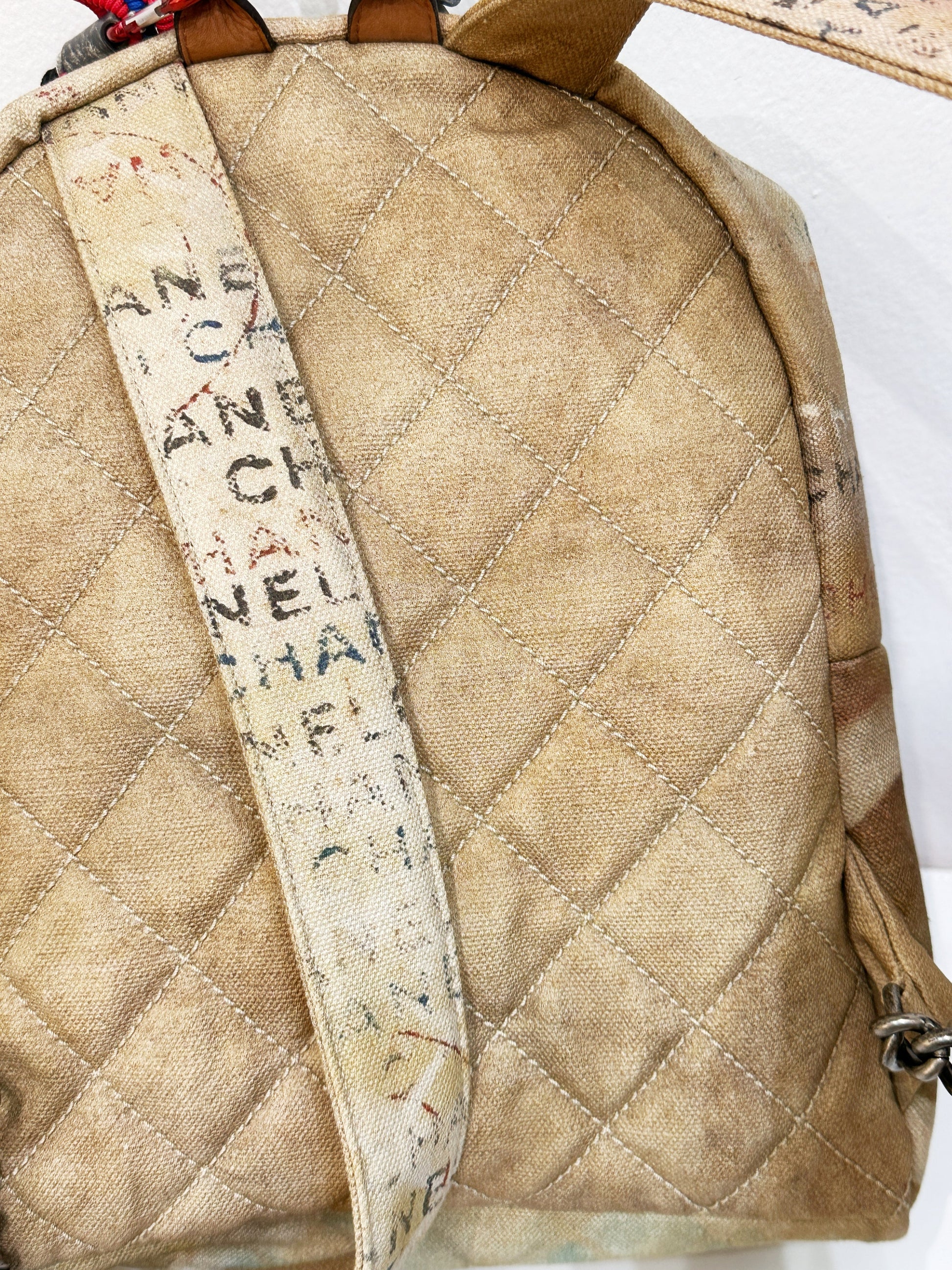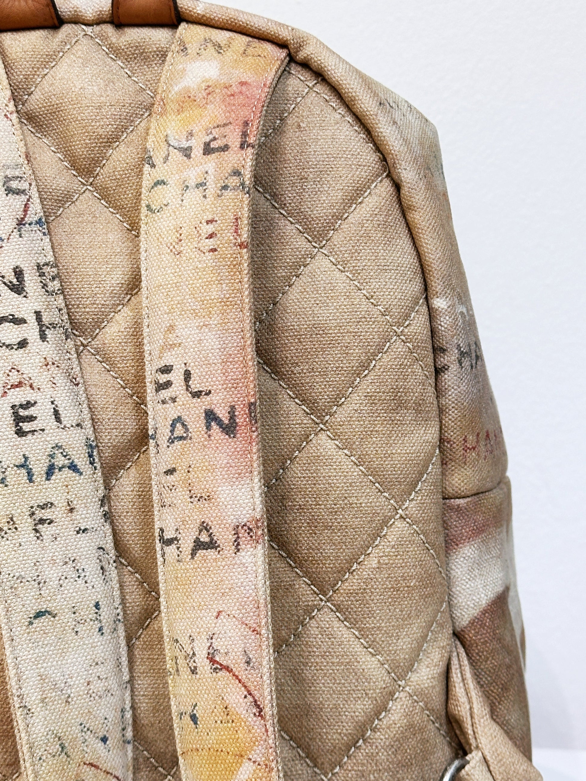 Chanel Graffiti Printed Canvas Medium Backpack Beige 1958 holo card