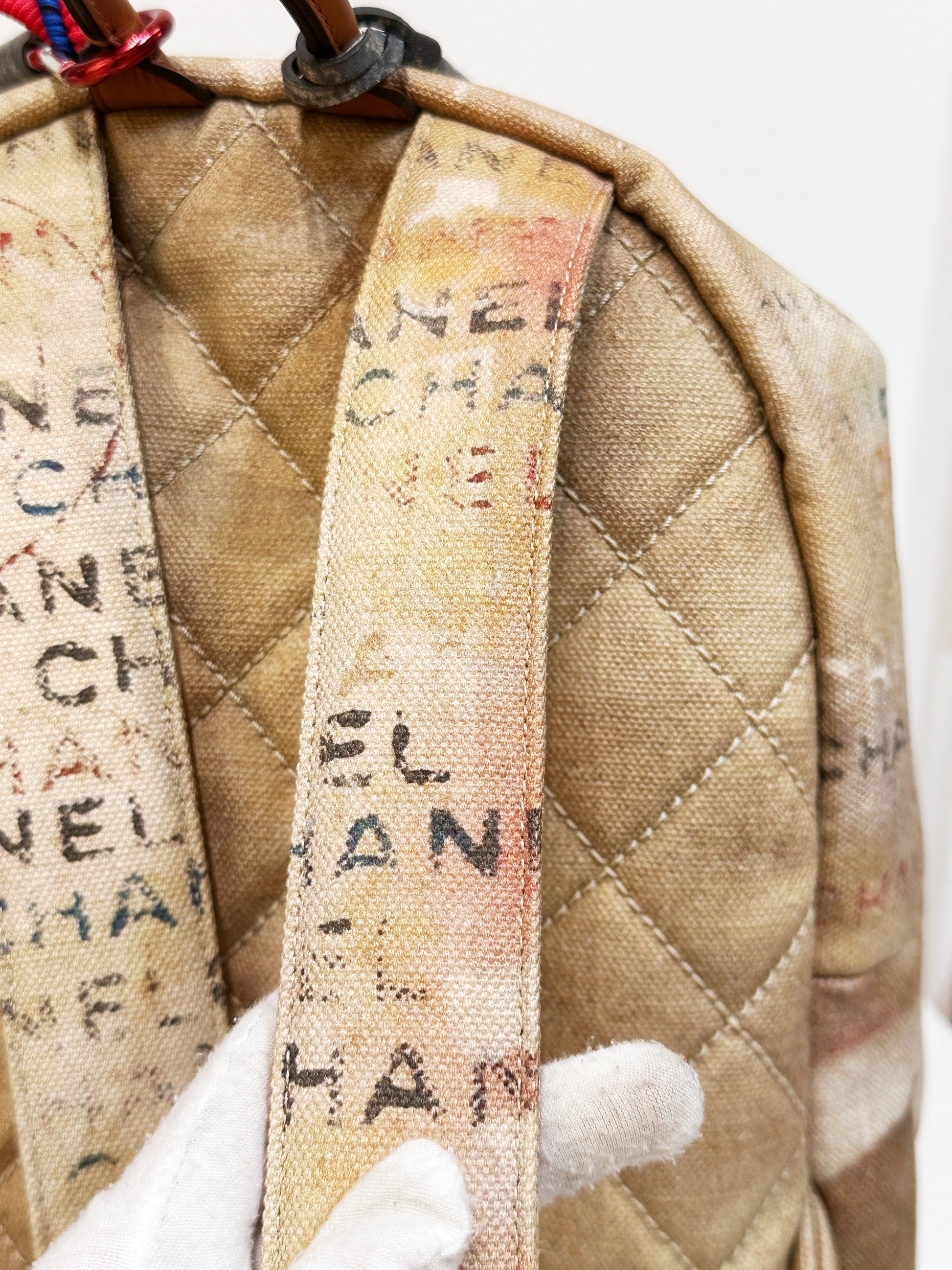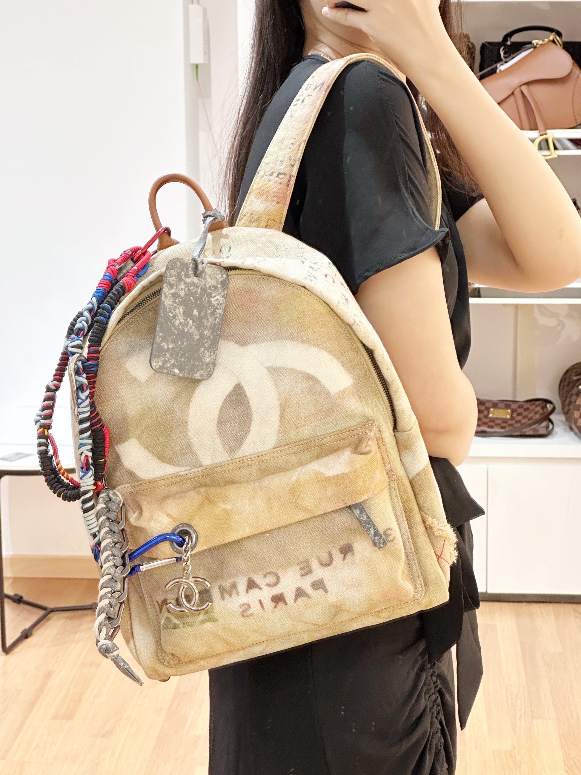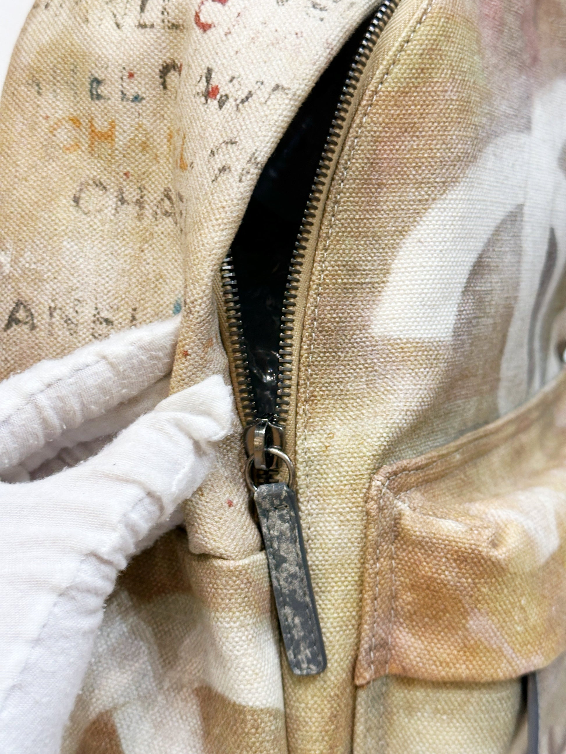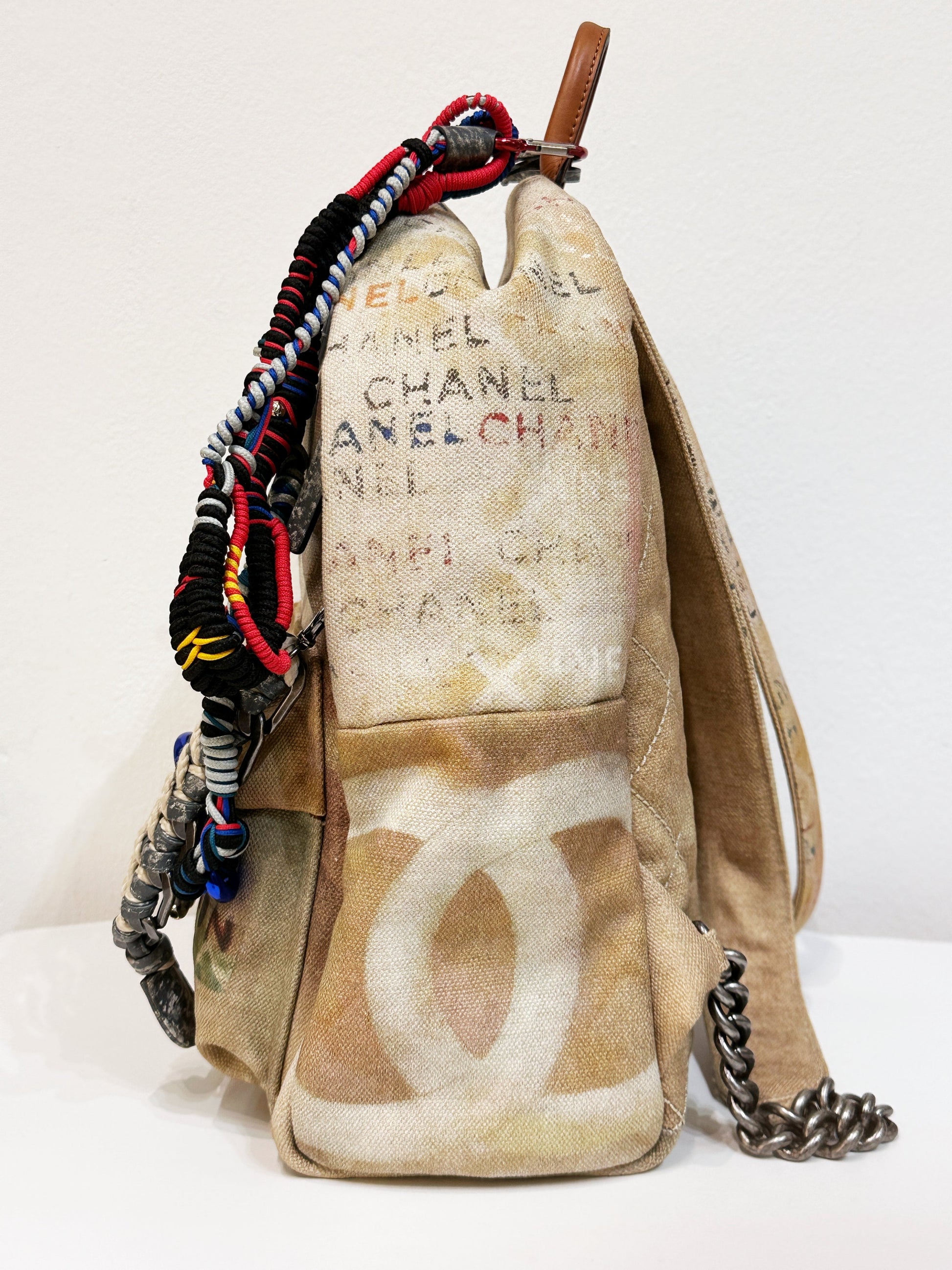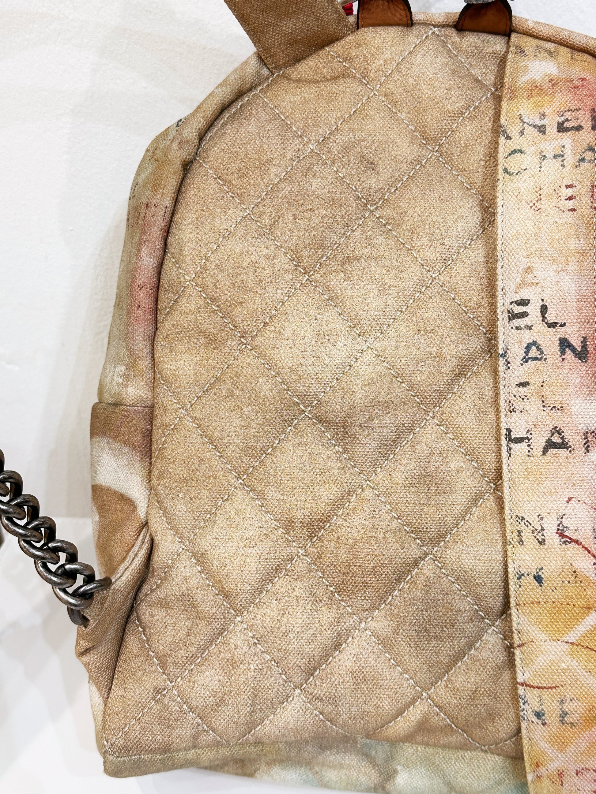 Chanel Graffiti Printed Canvas Medium Backpack Beige 1958 holo card