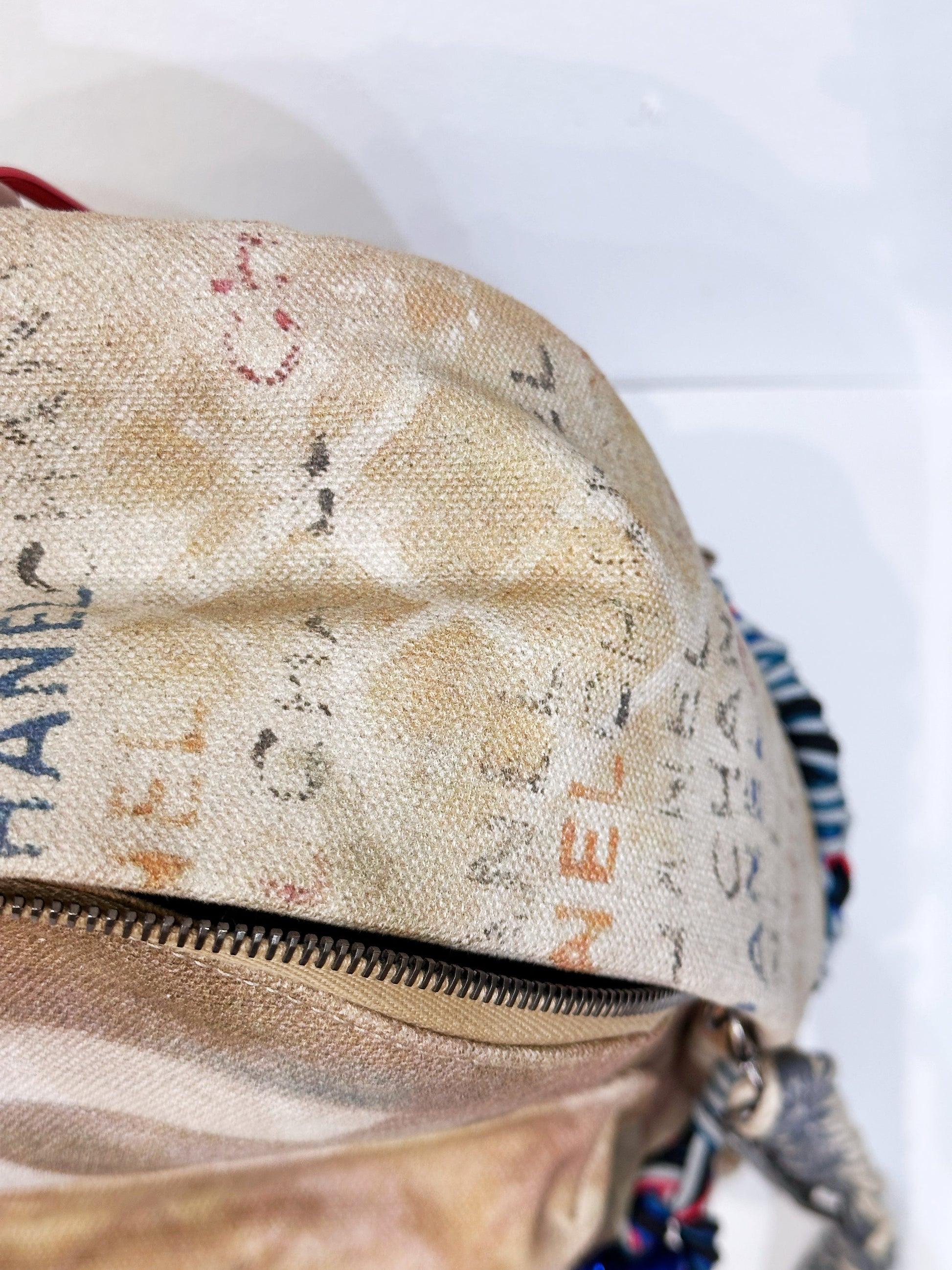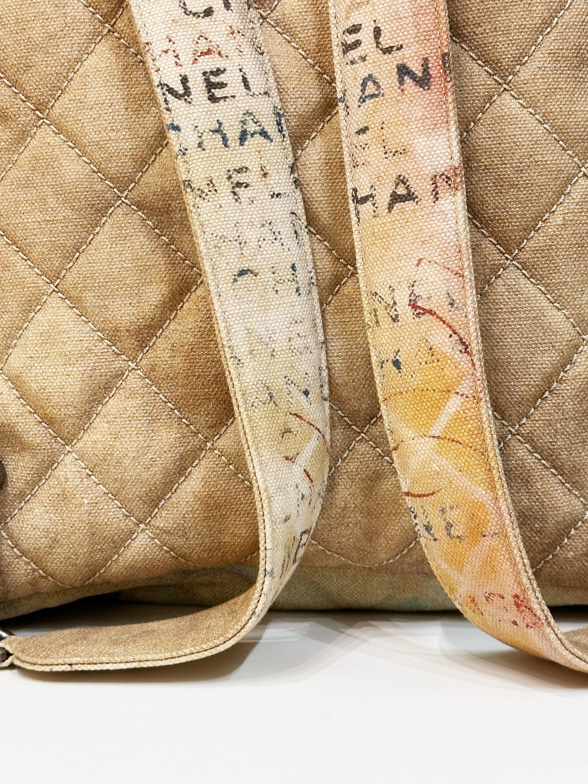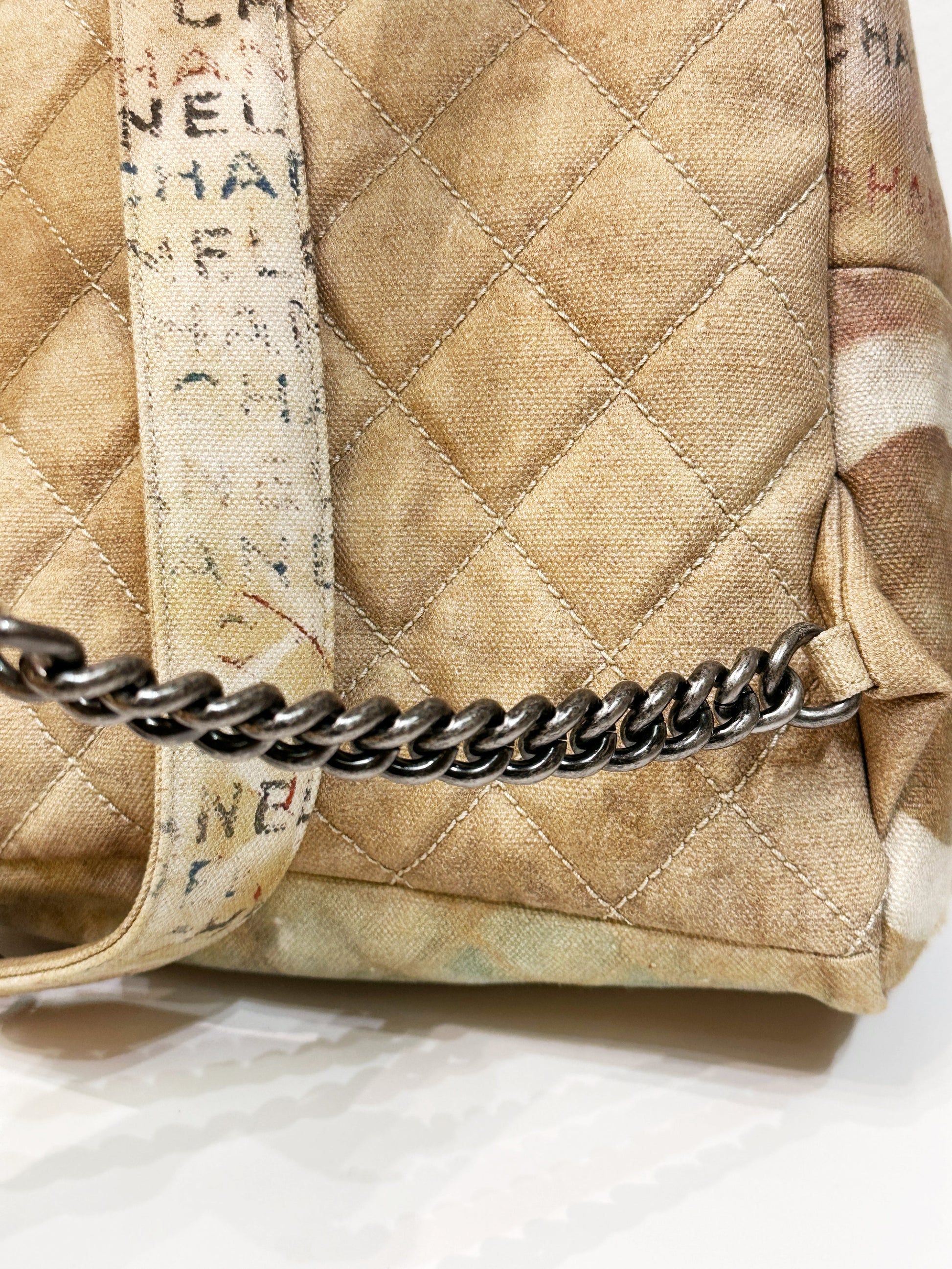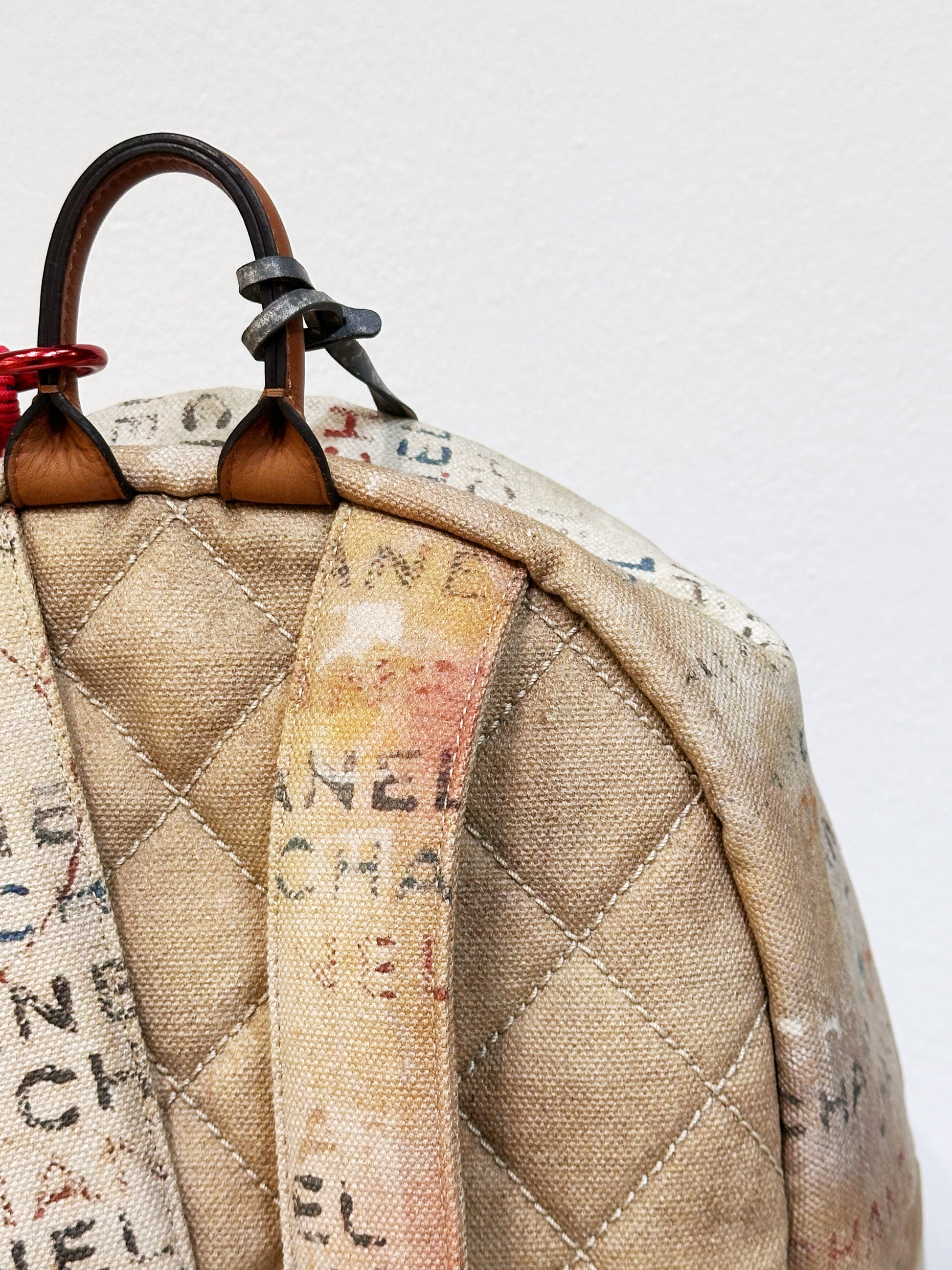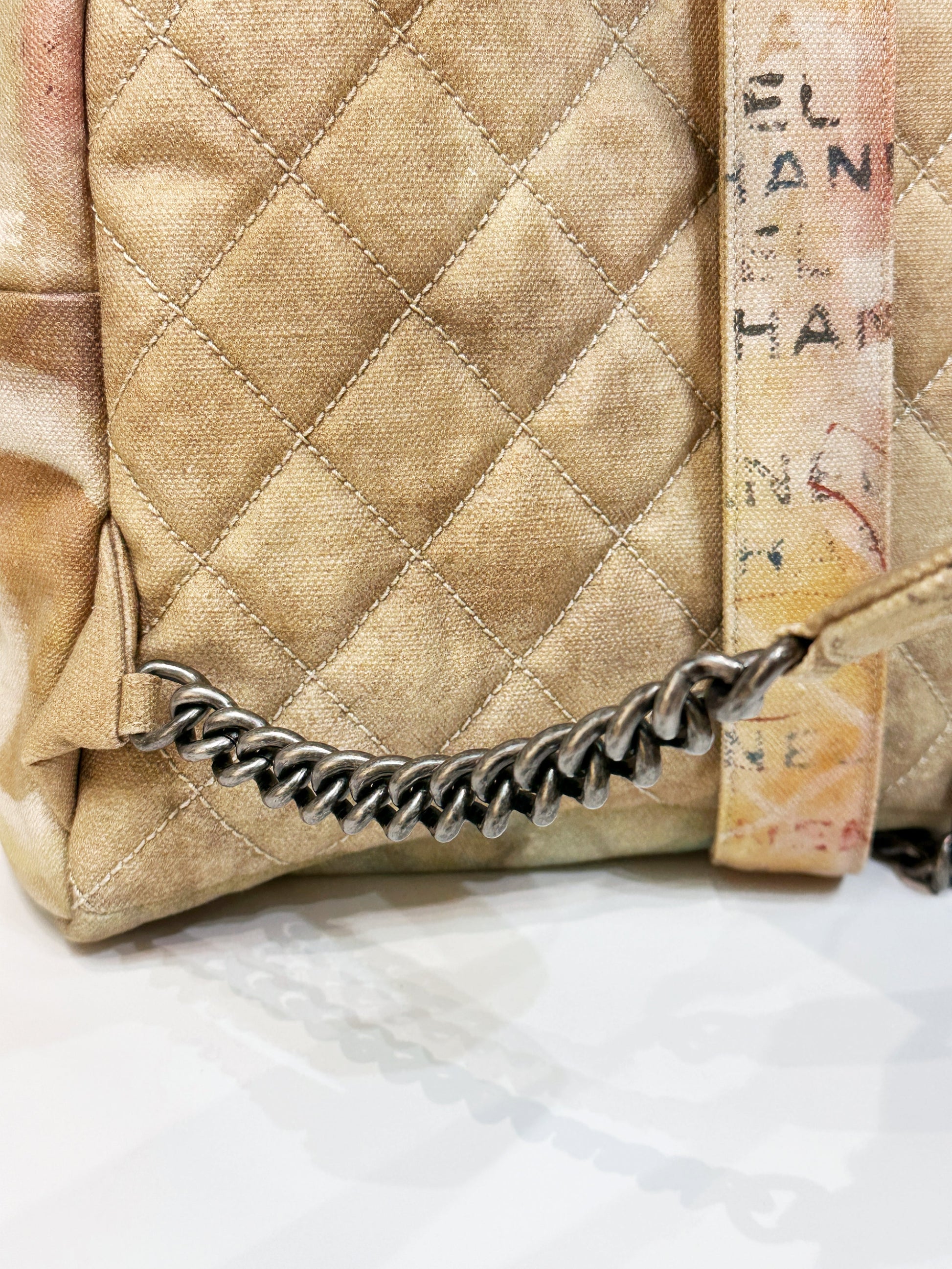 Chanel Graffiti Printed Canvas Medium Backpack Beige 1958 holo card