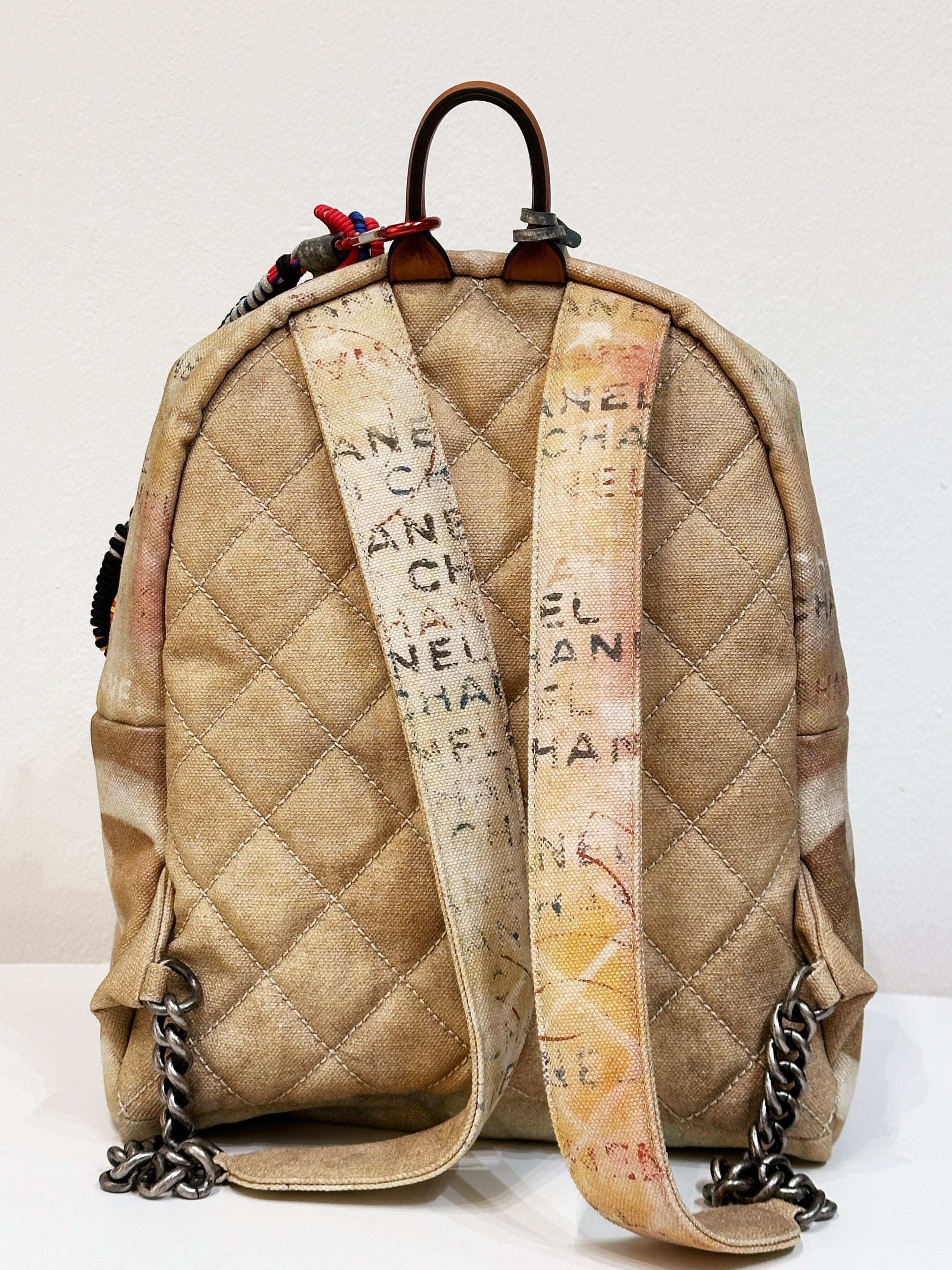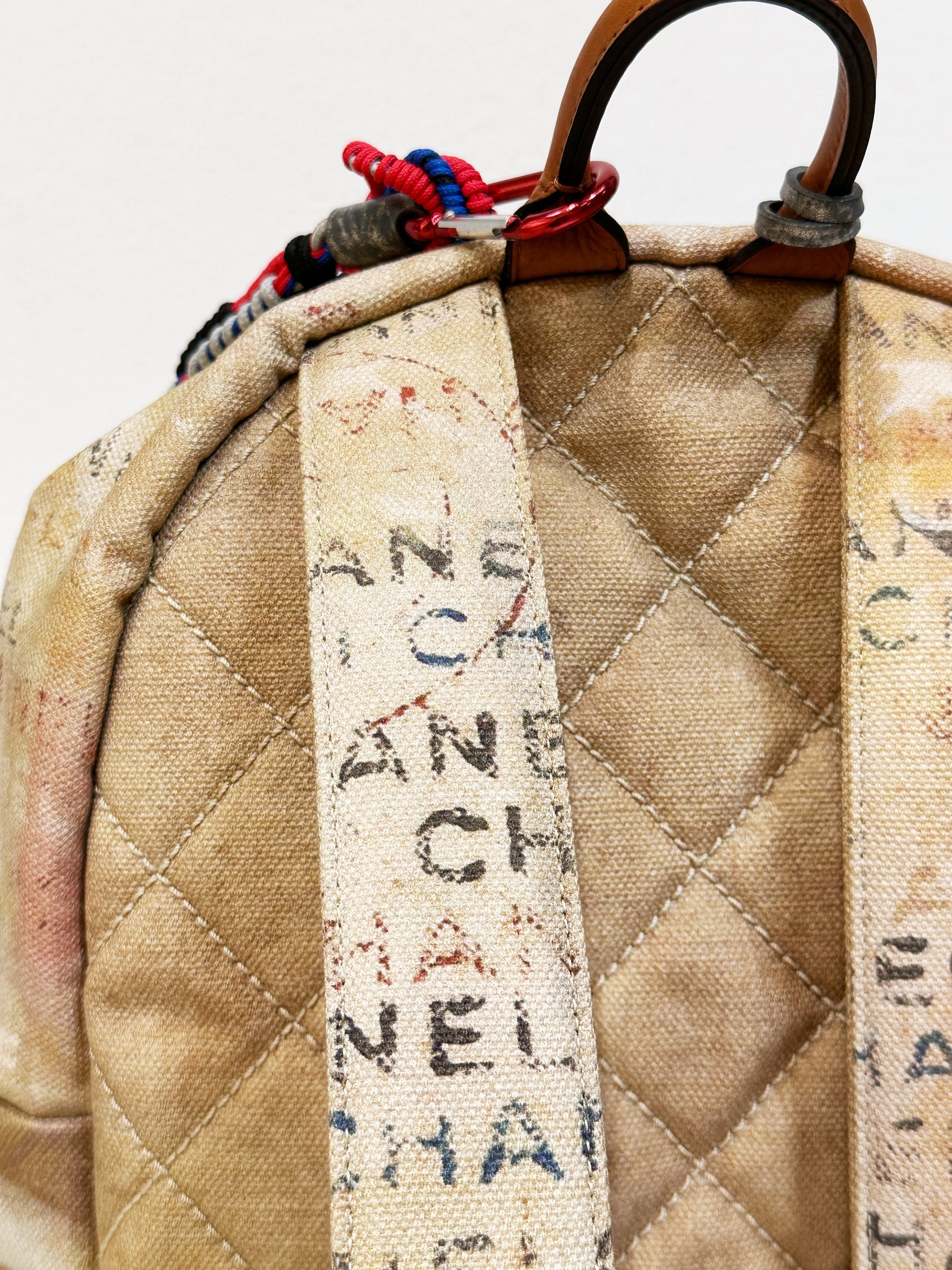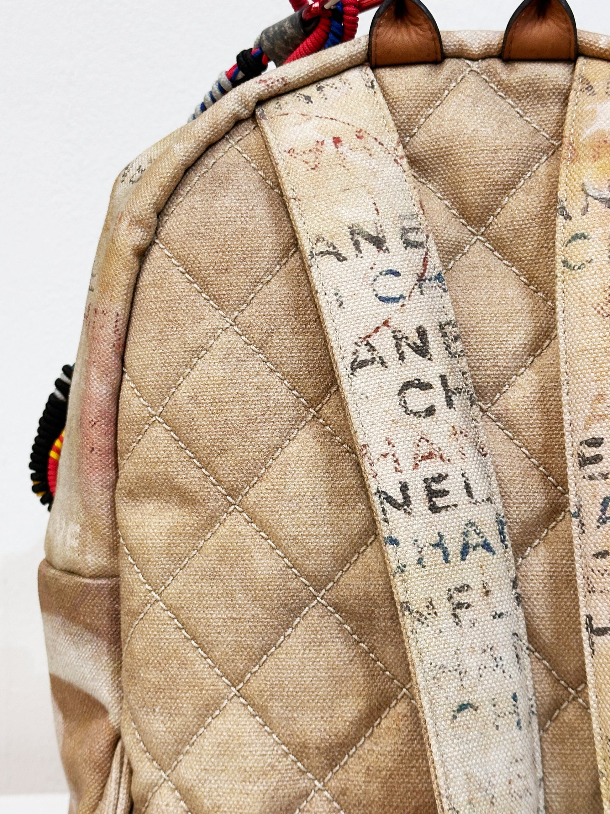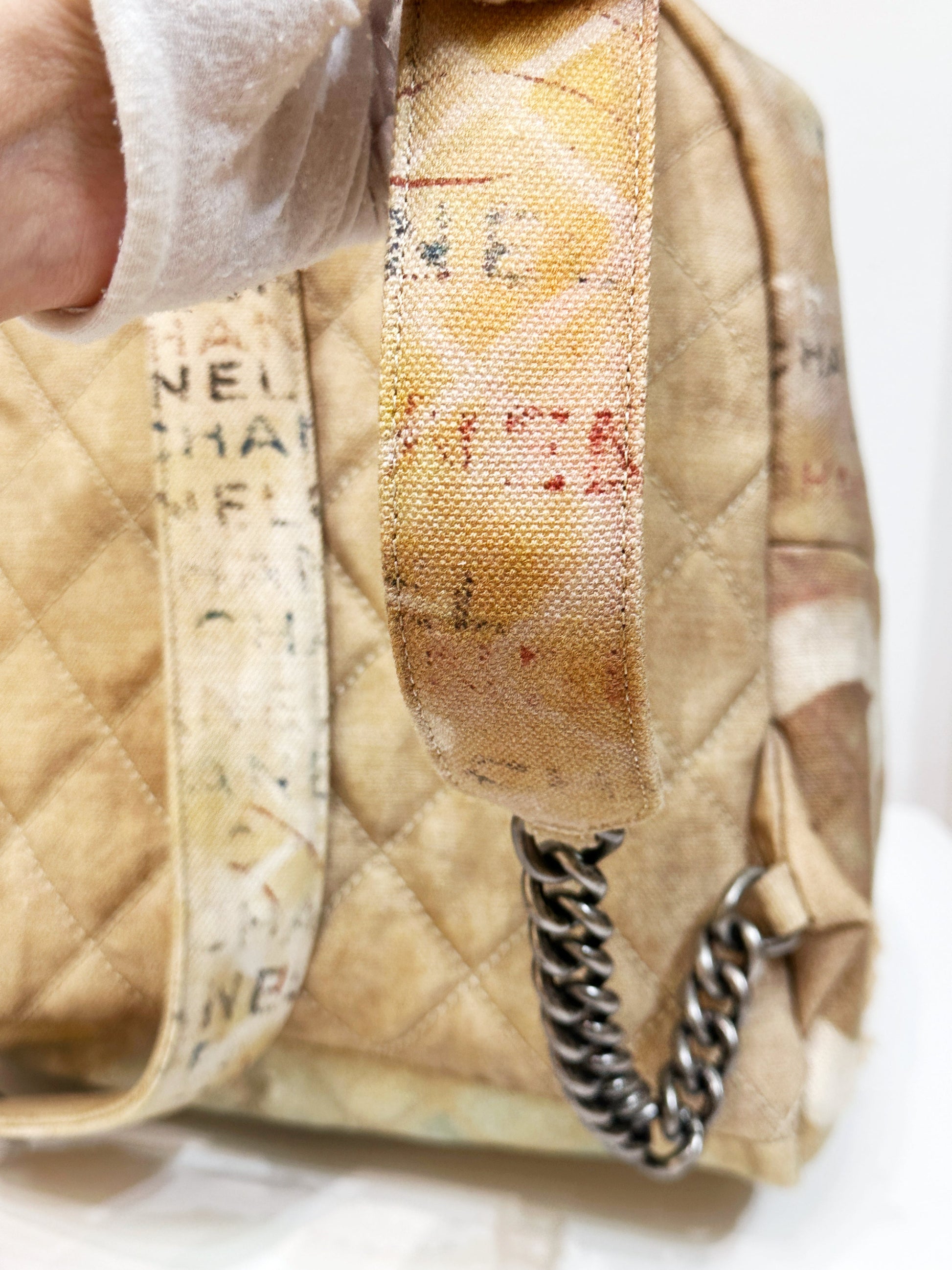 Chanel Graffiti Printed Canvas Medium Backpack Beige 1958 holo card