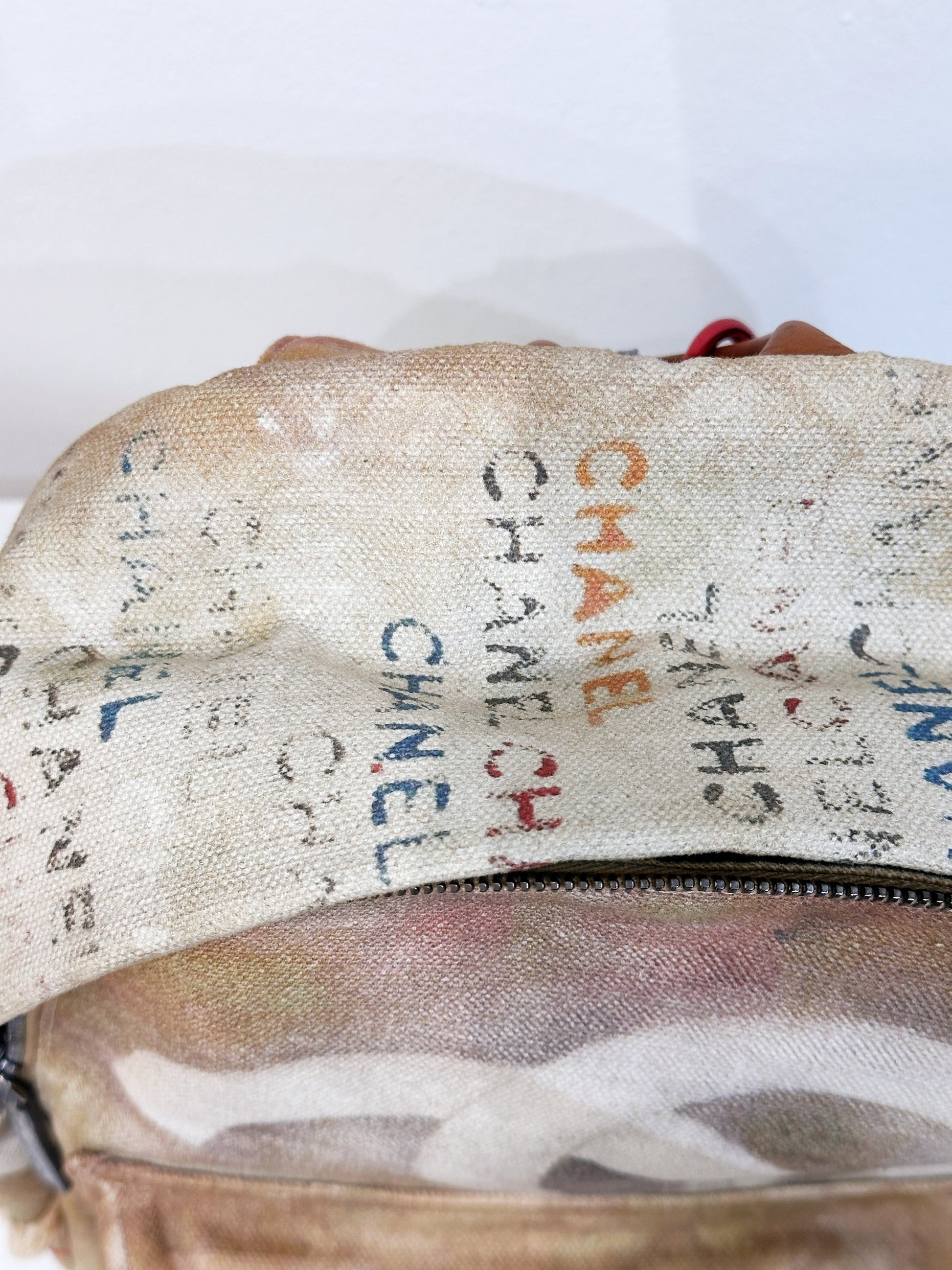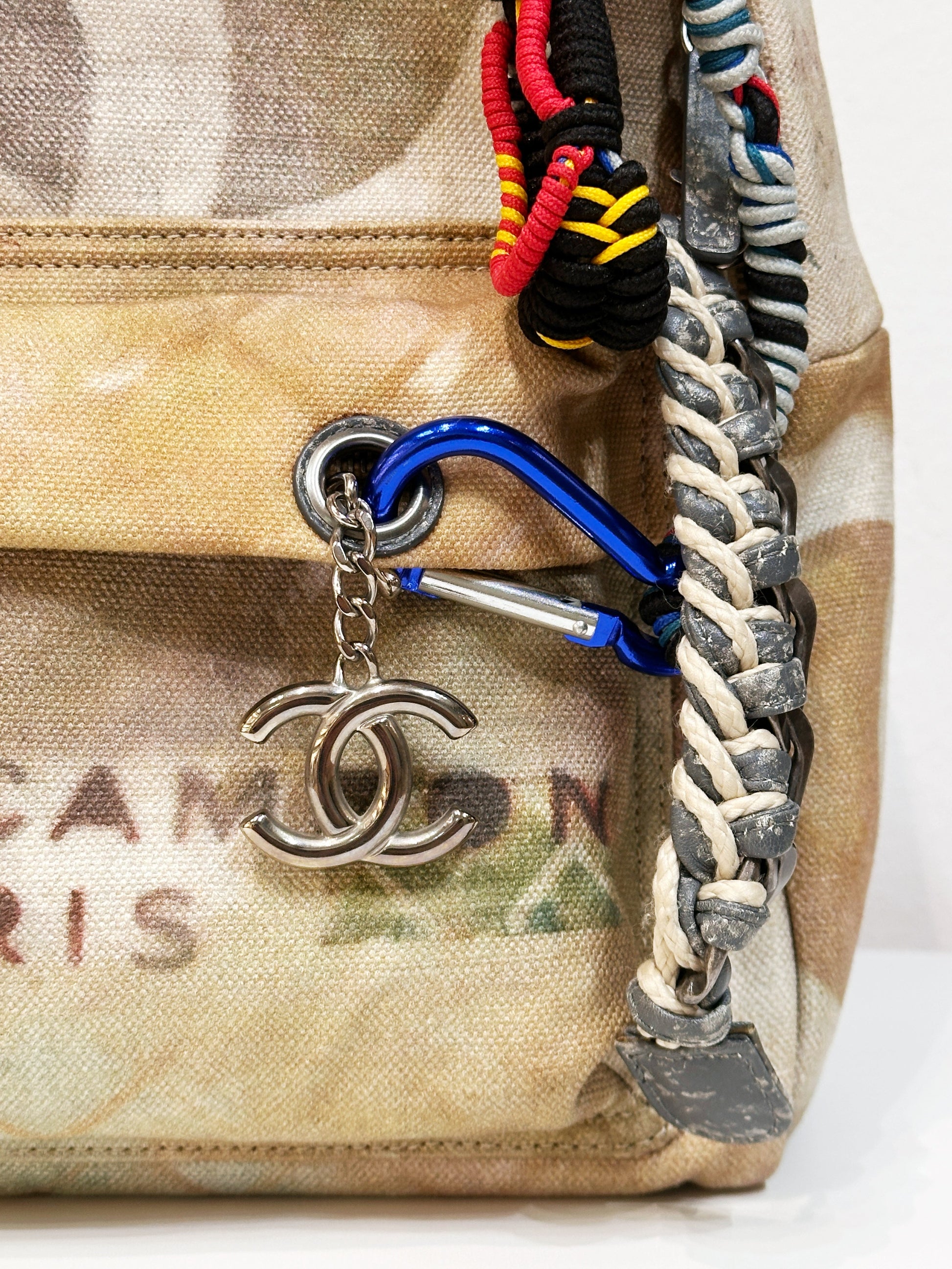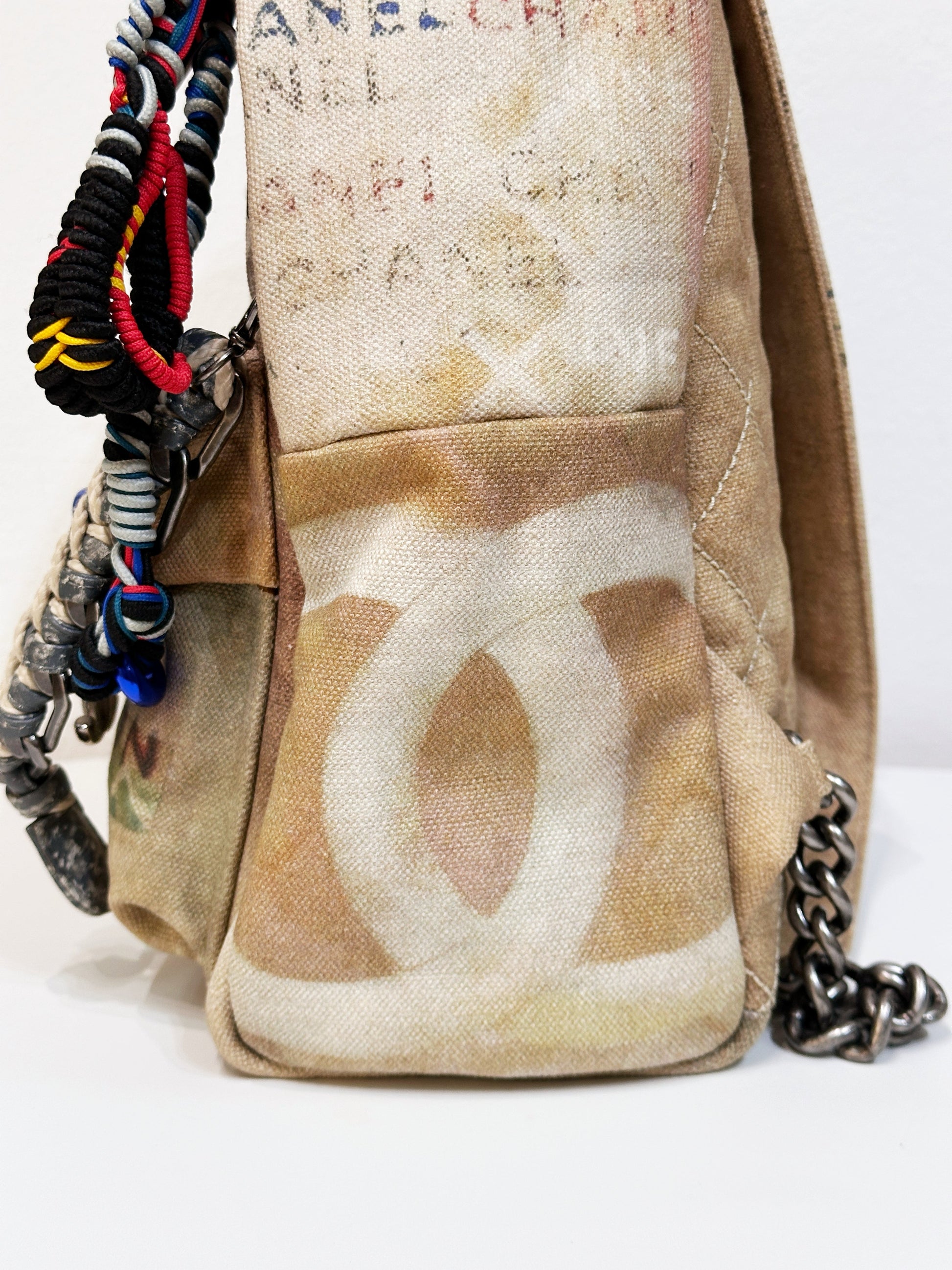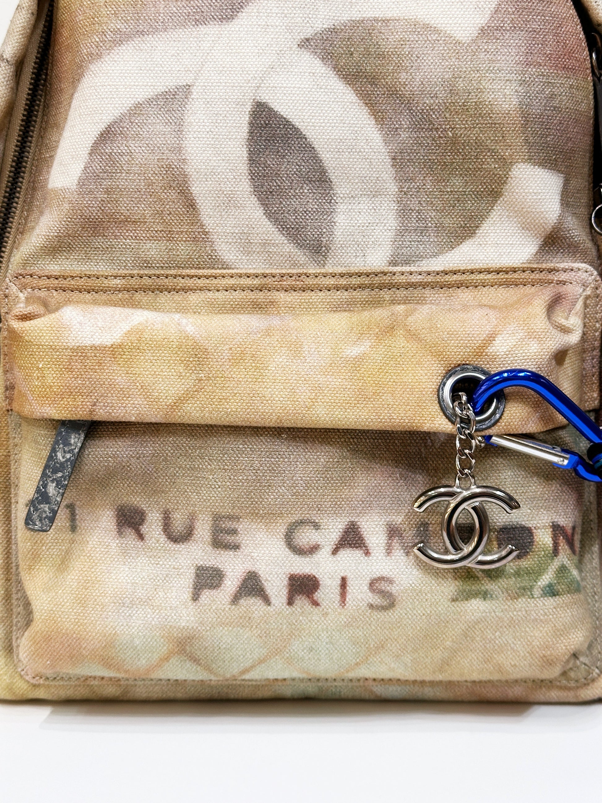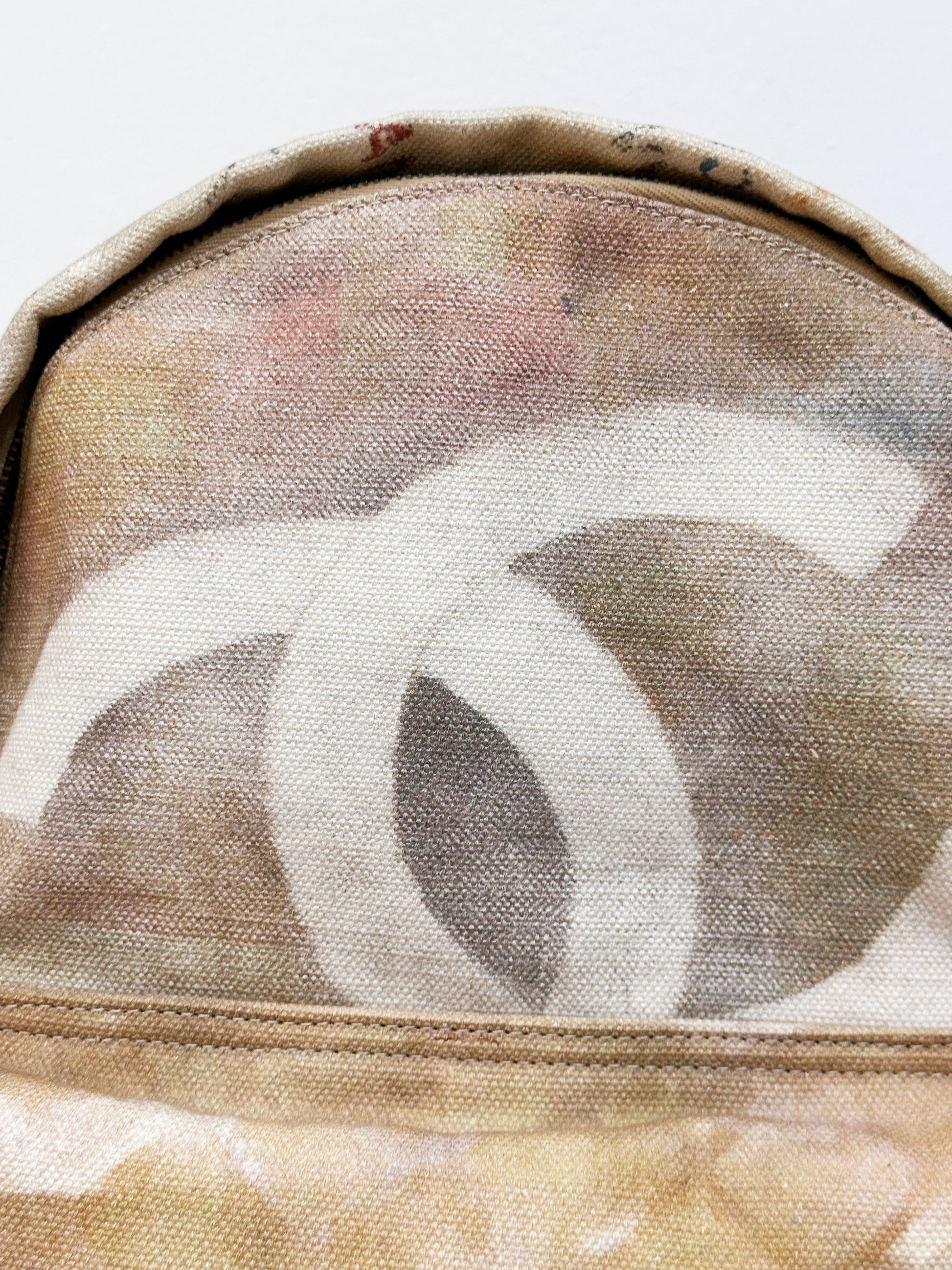 Chanel Graffiti Printed Canvas Medium Backpack Beige 1958 holo card