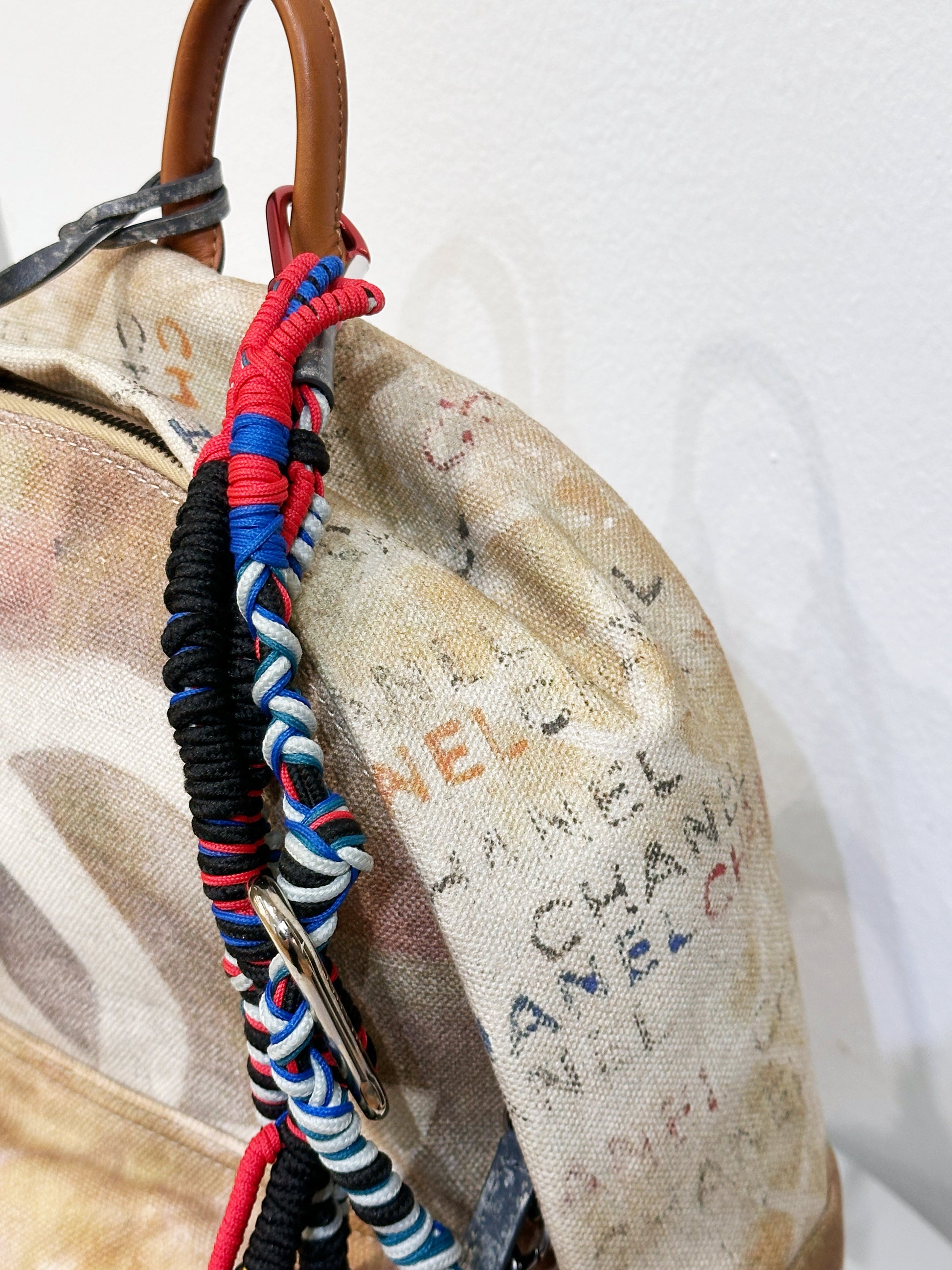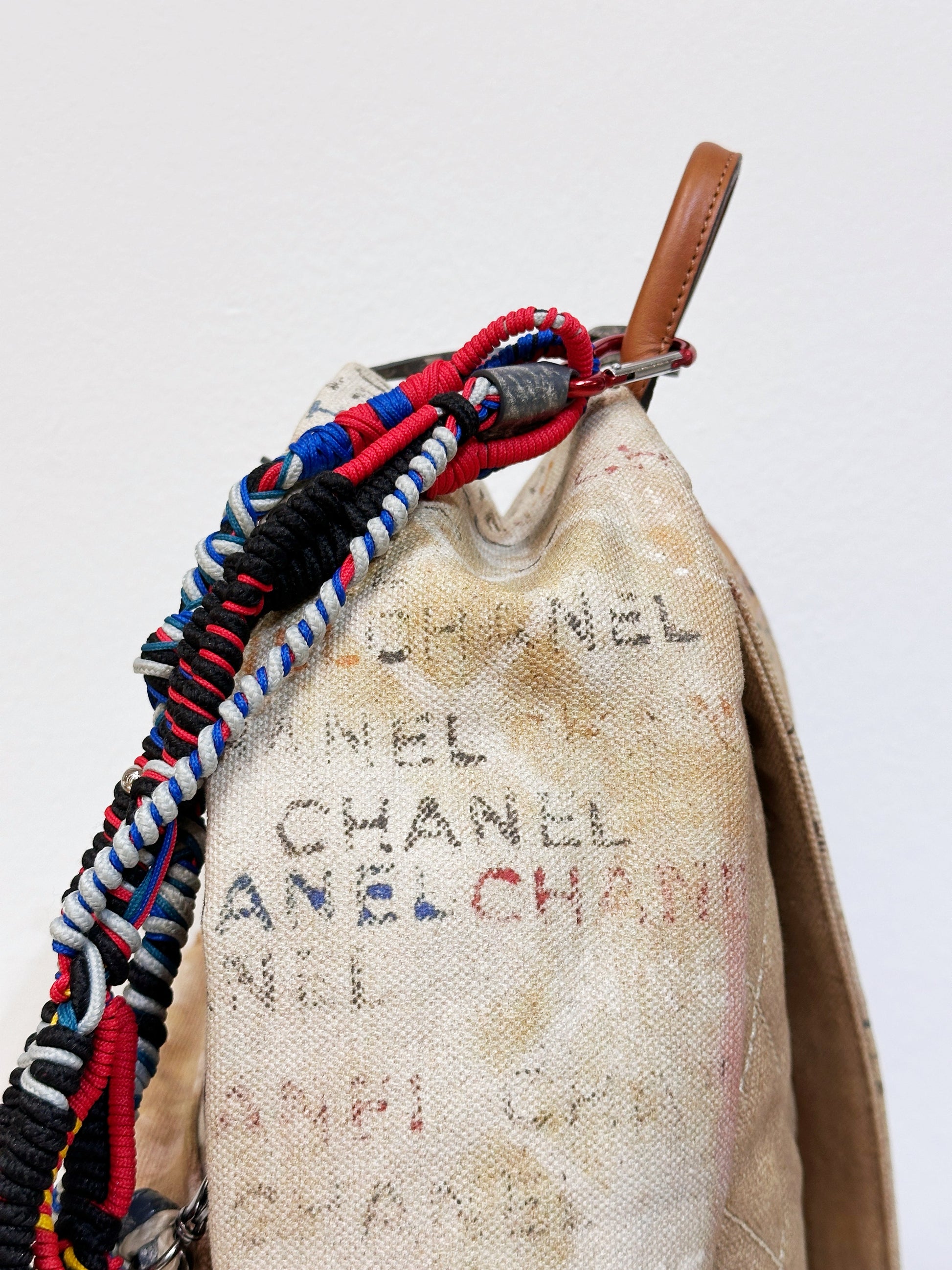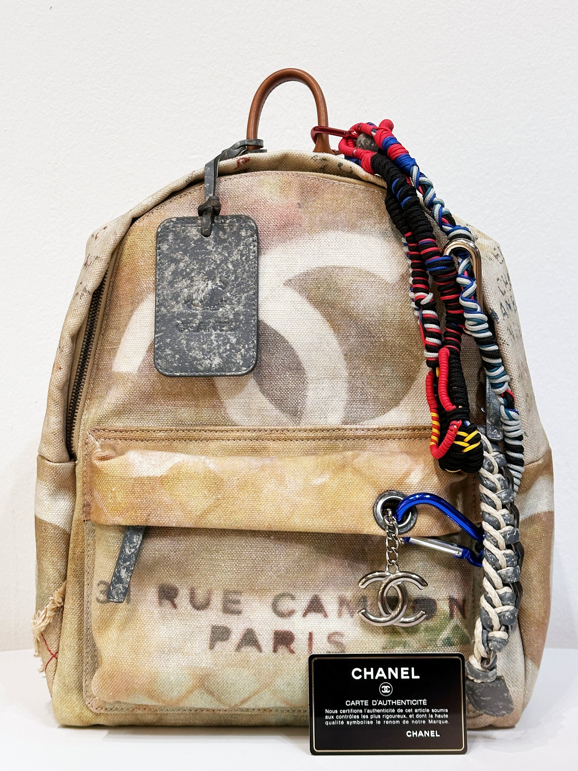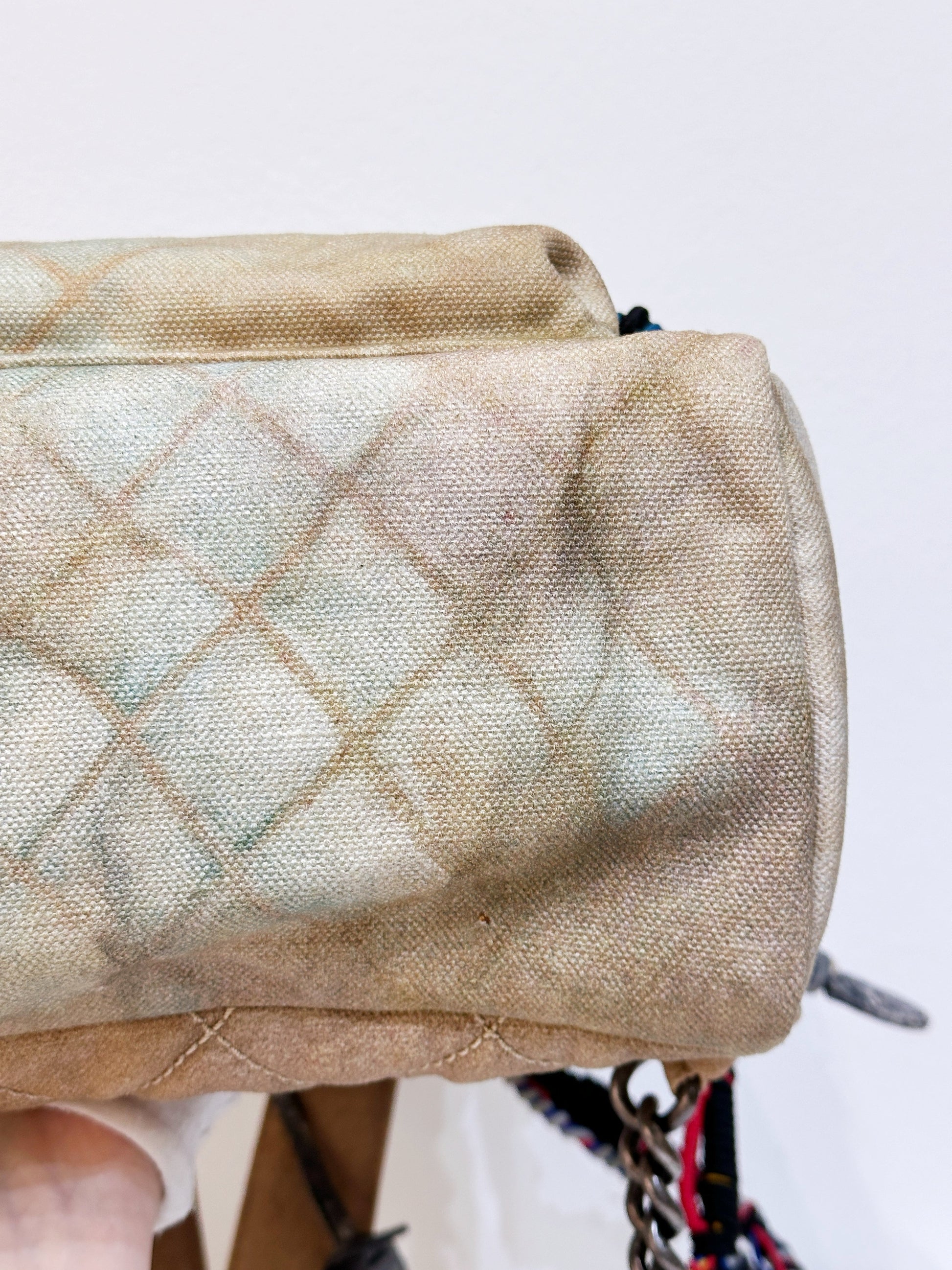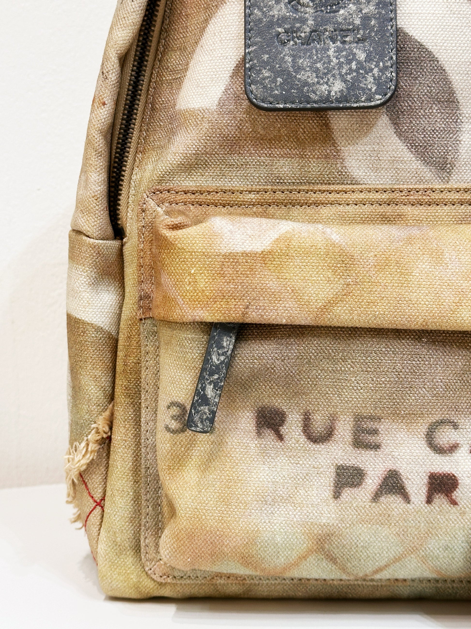 Chanel Graffiti Printed Canvas Medium Backpack Beige 1958 holo card