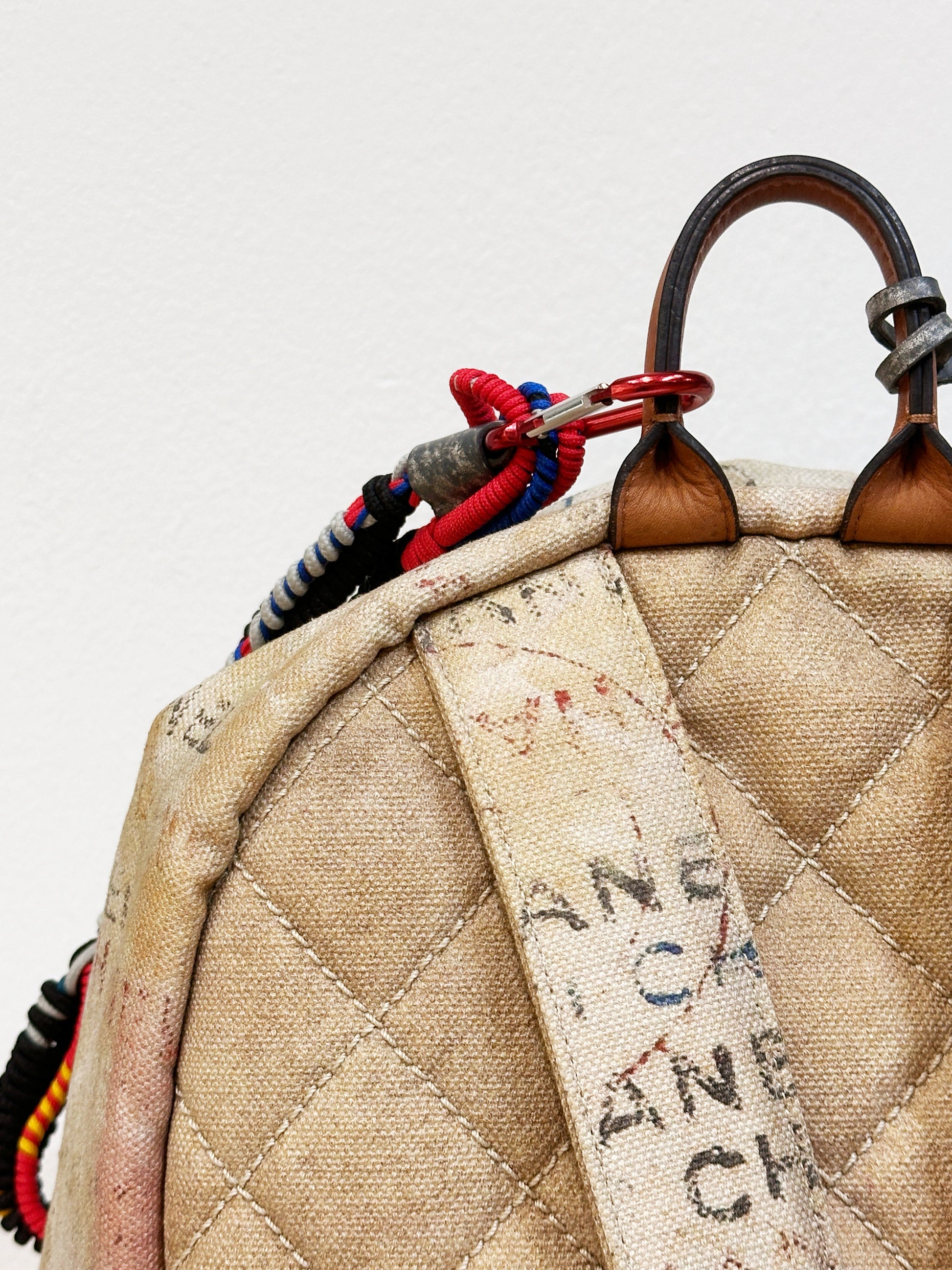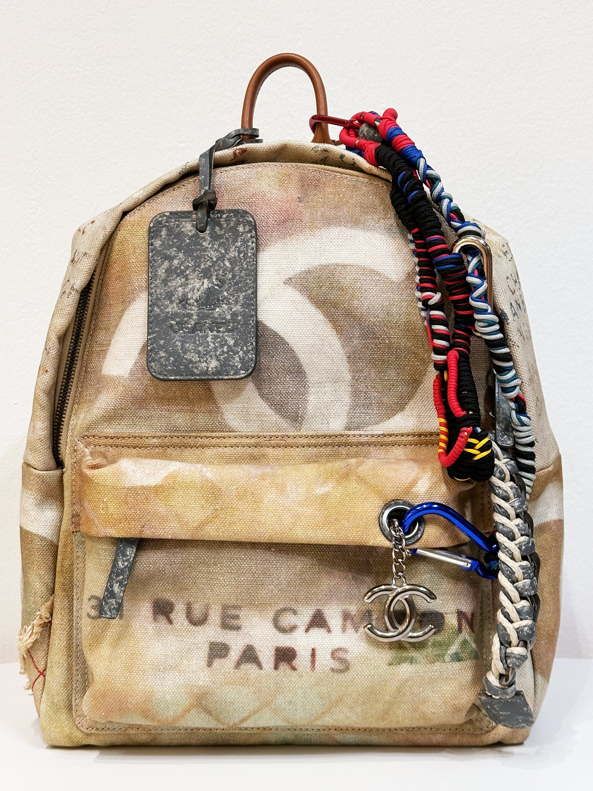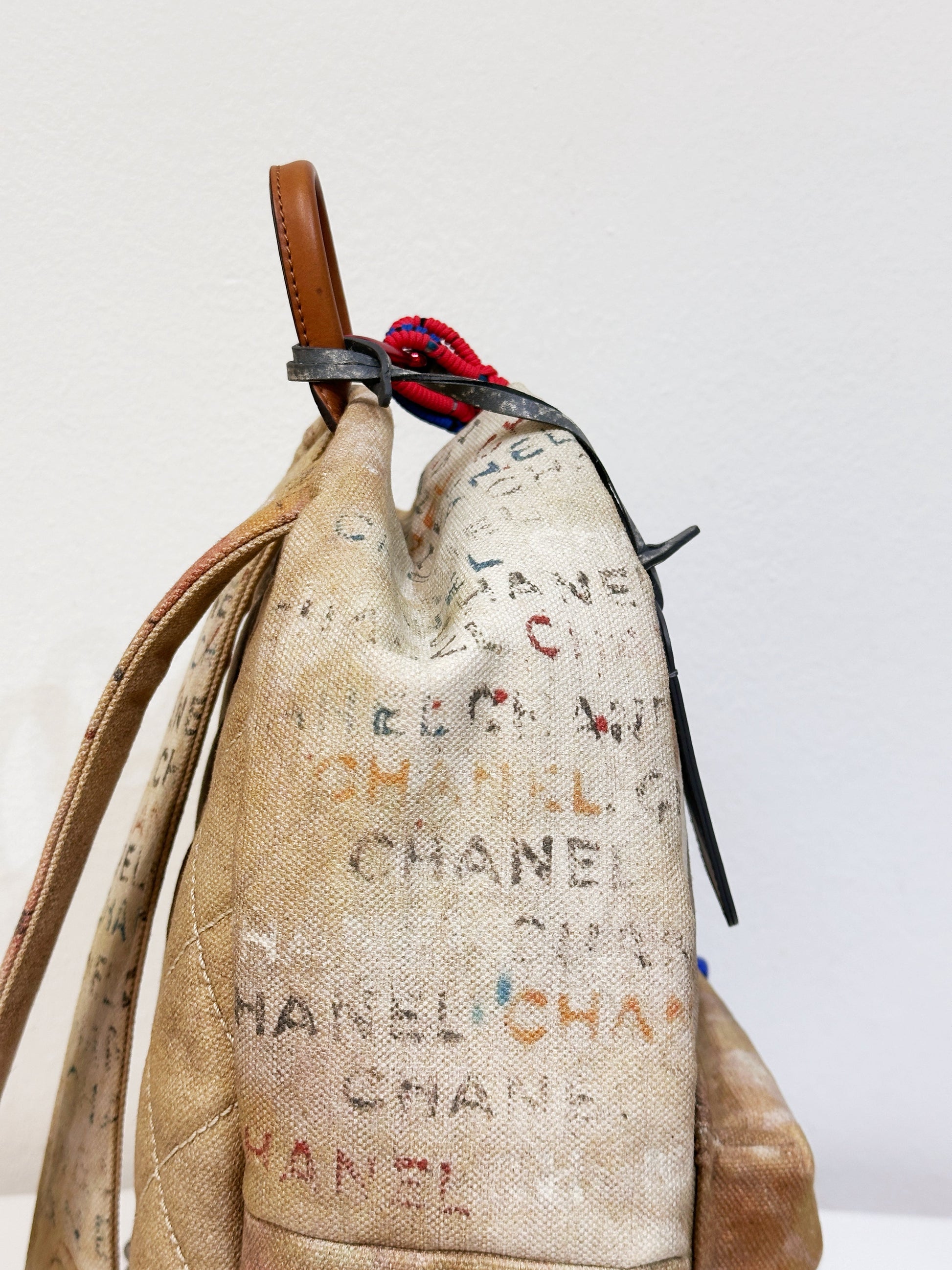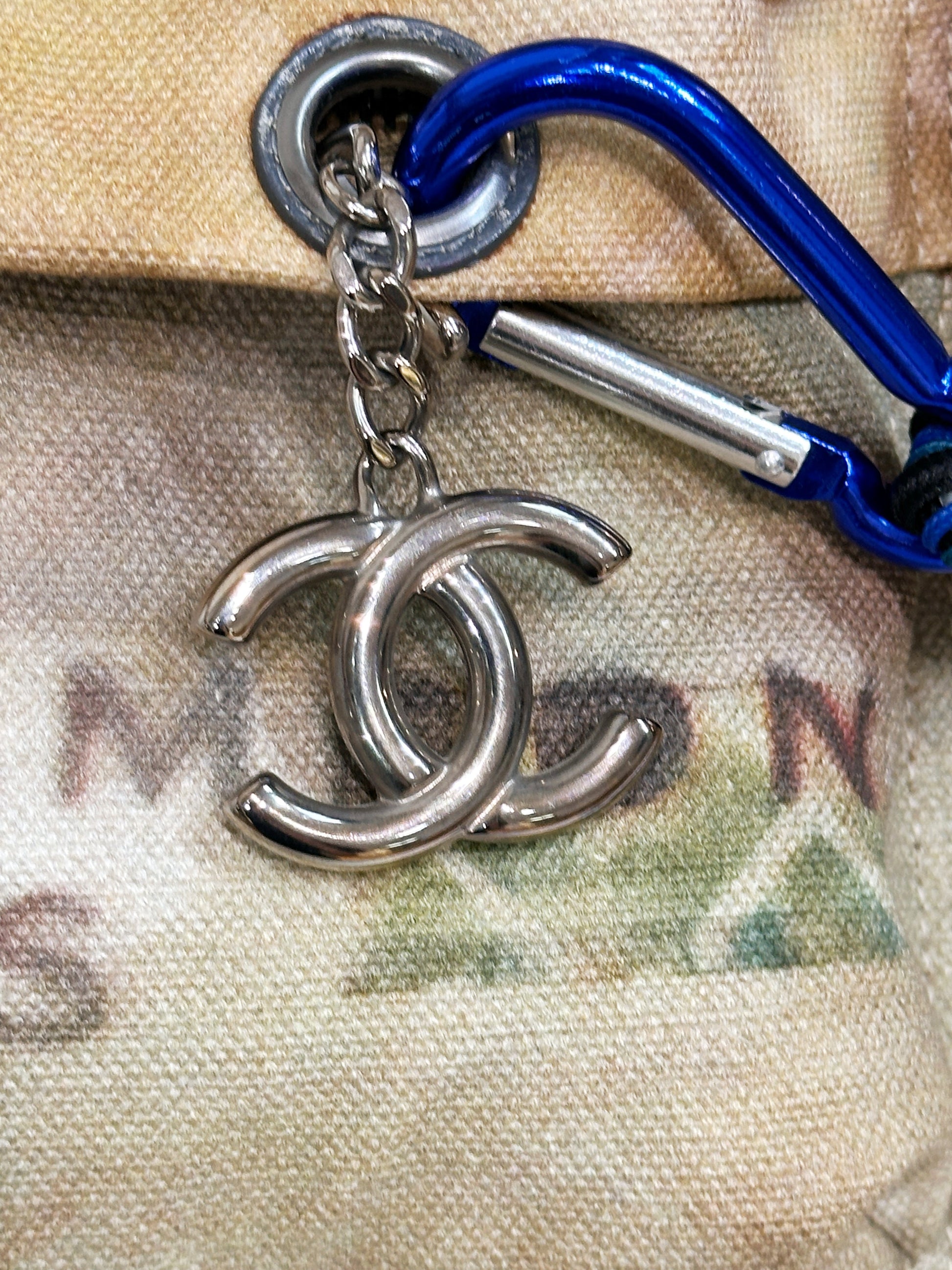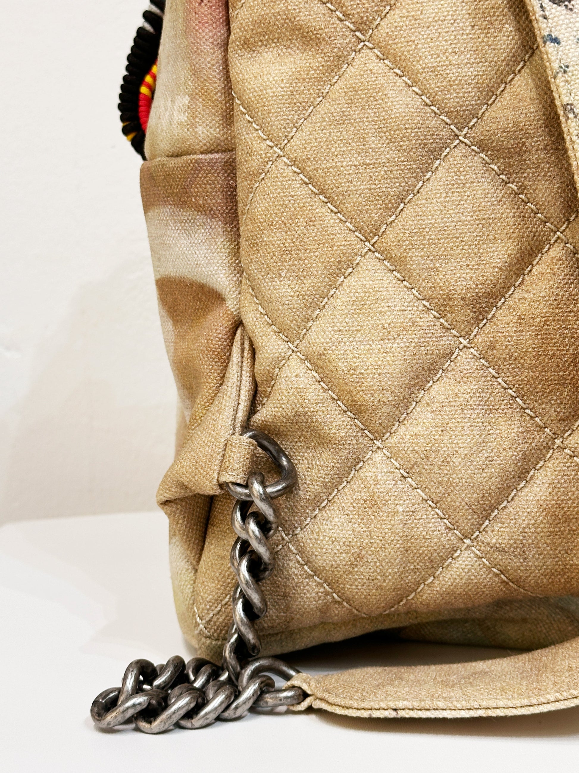 Chanel Graffiti Printed Canvas Medium Backpack Beige 1958 holo card
