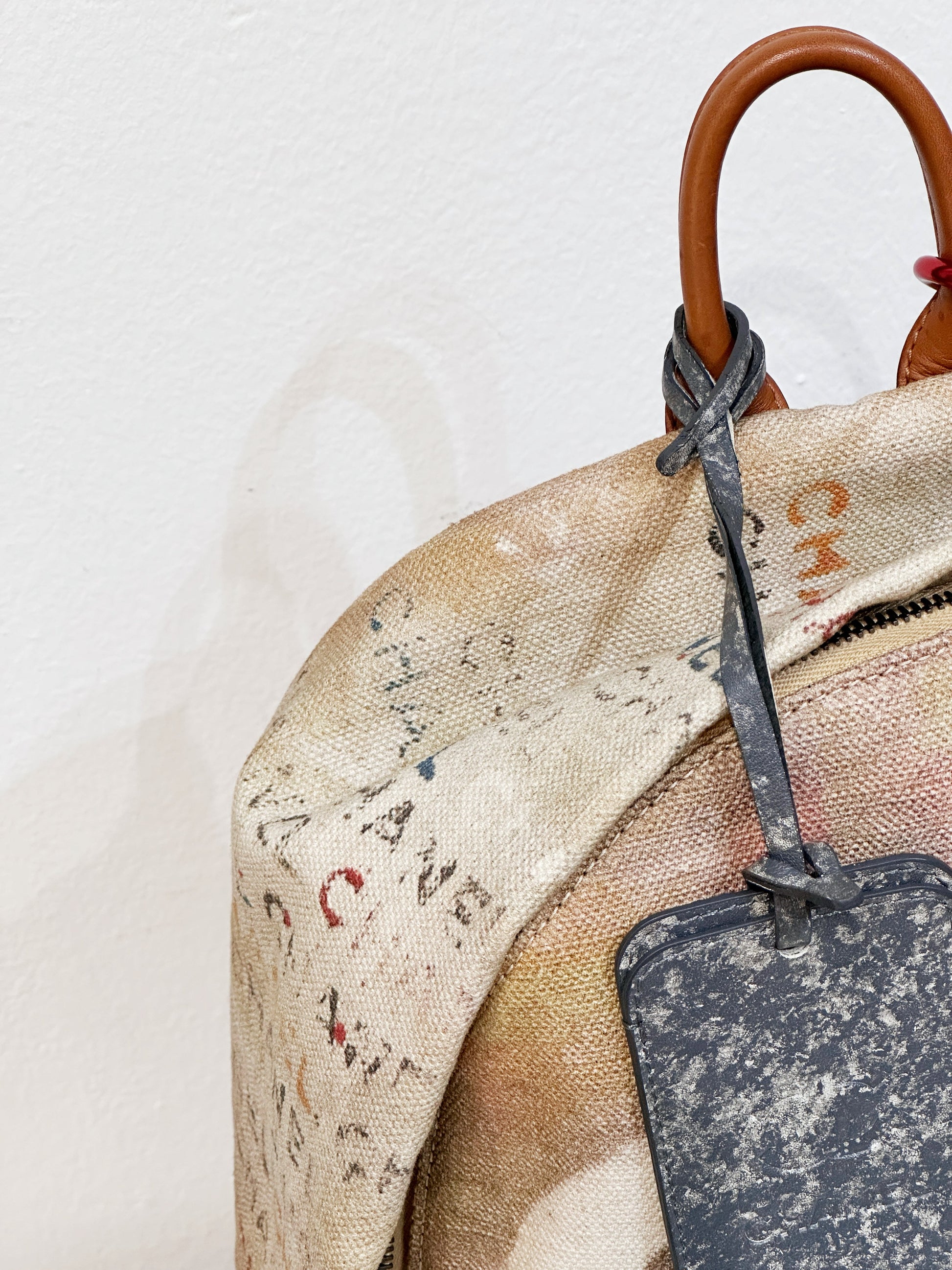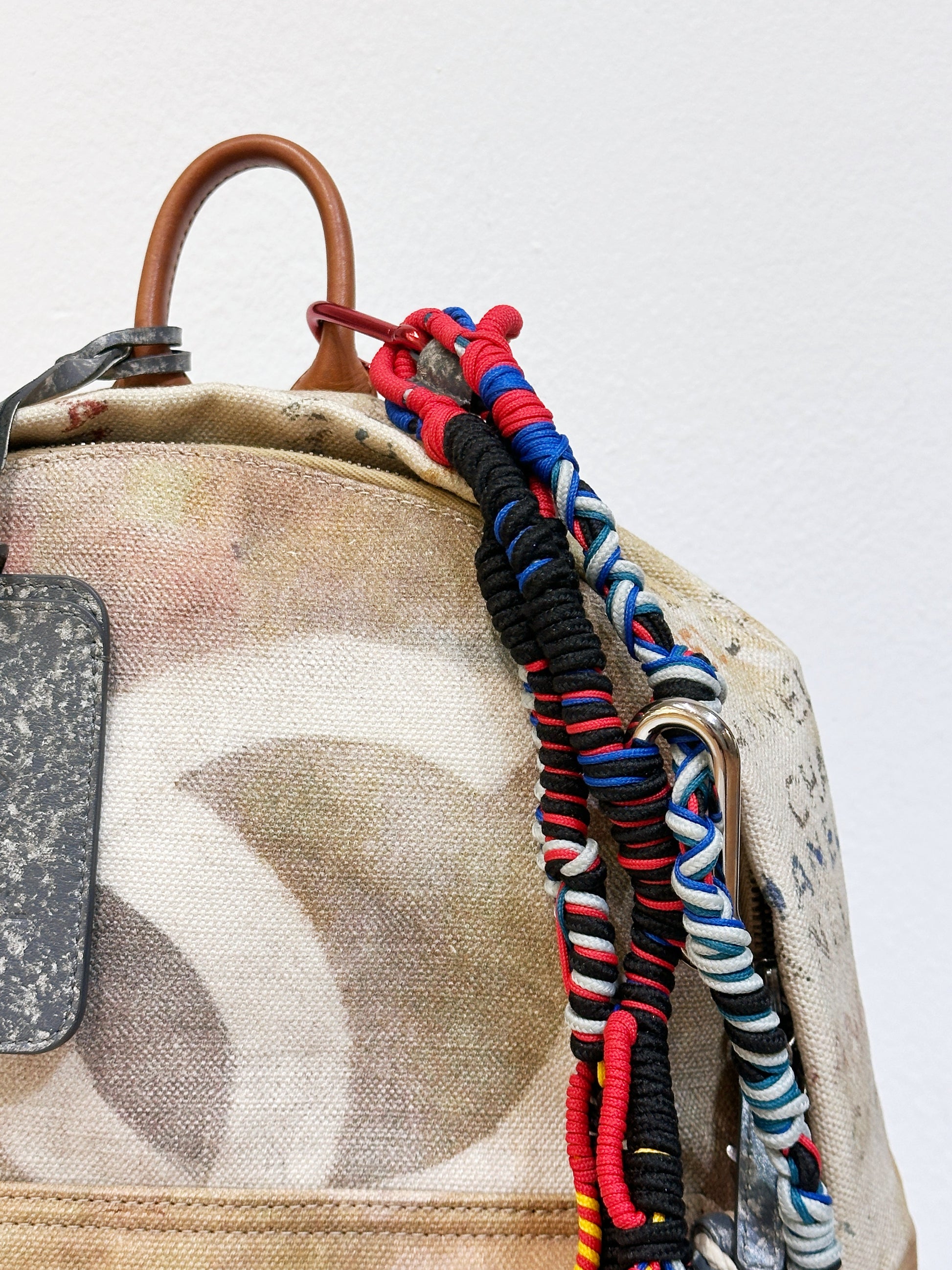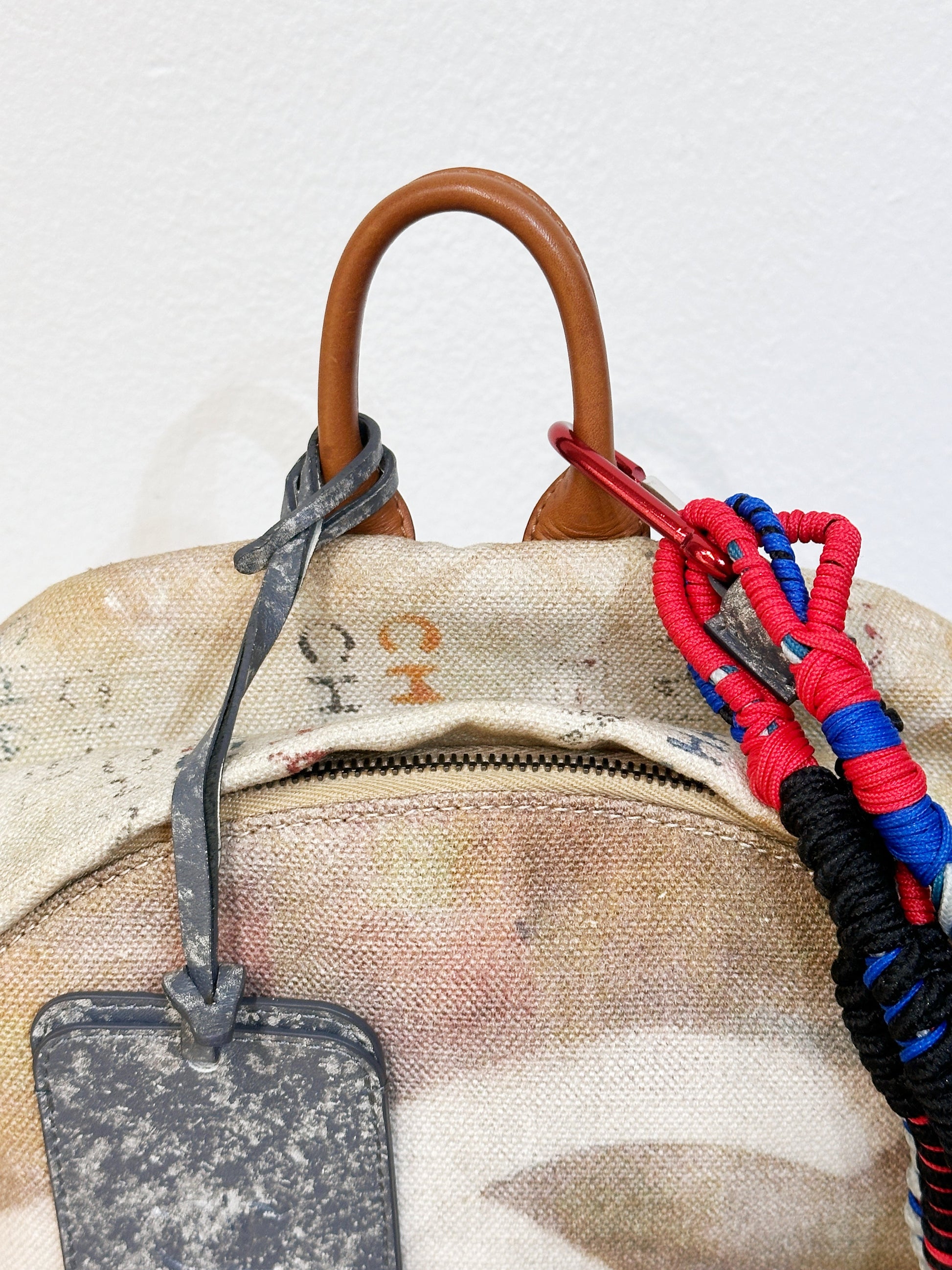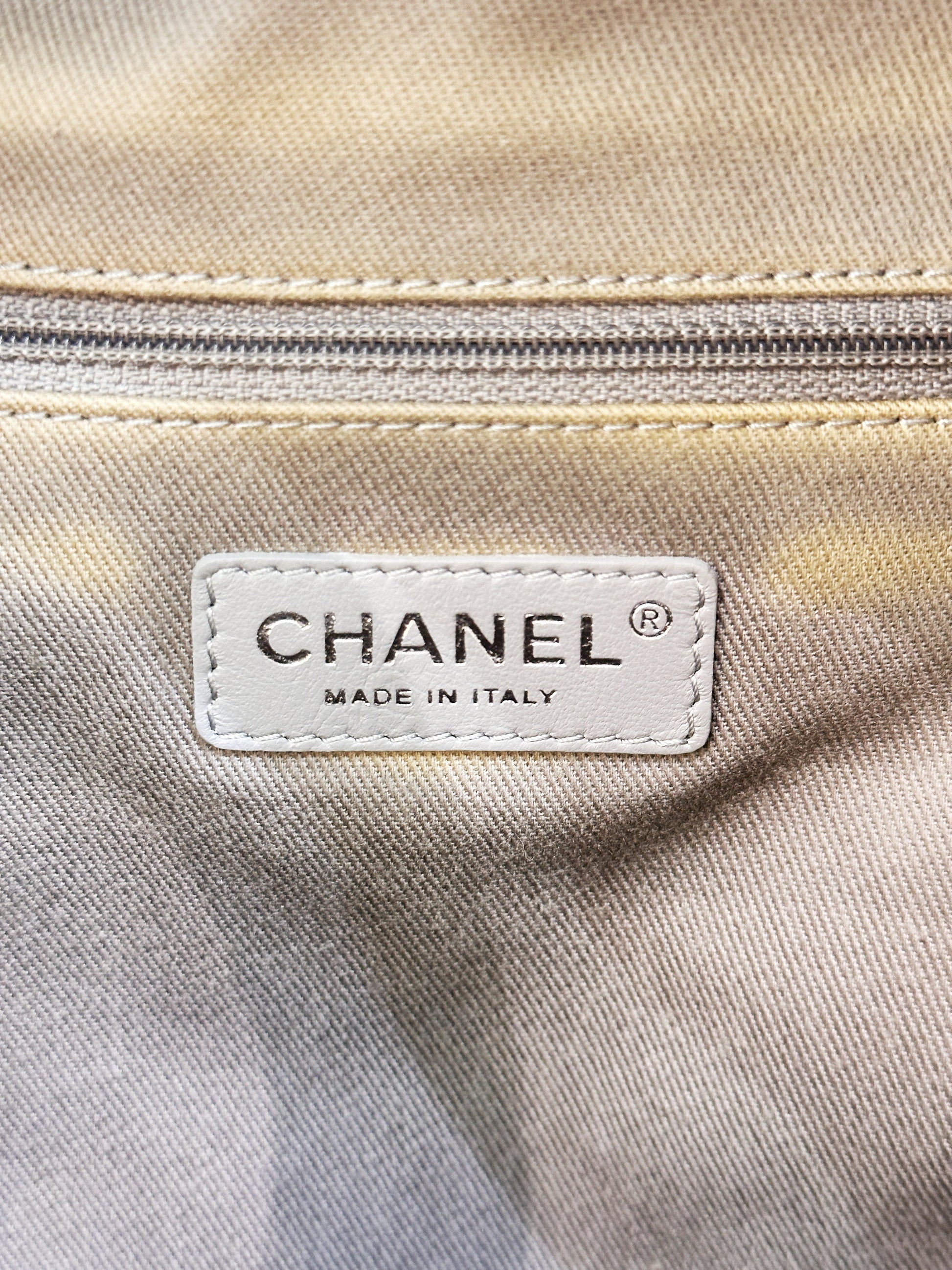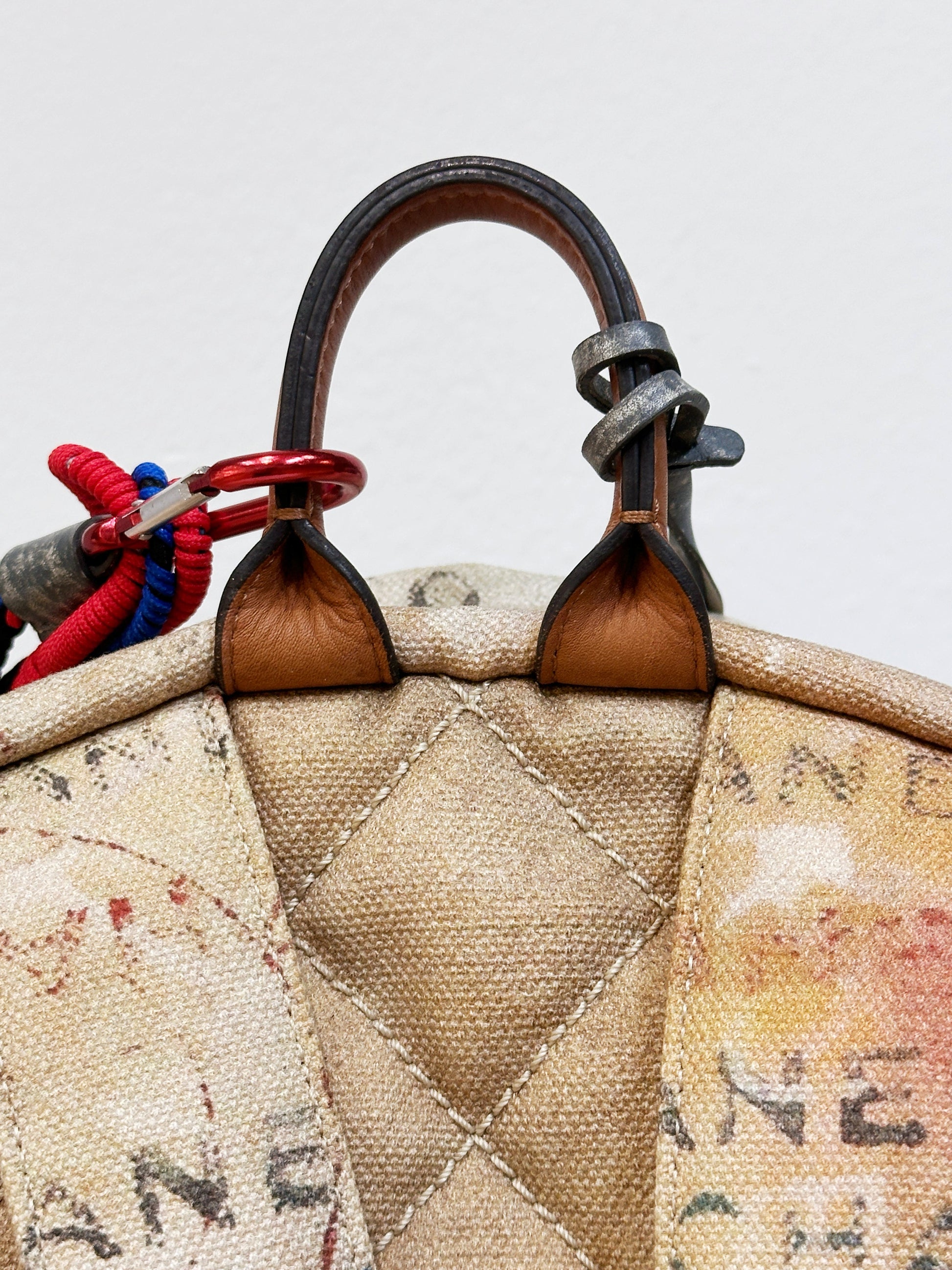 Chanel Graffiti Printed Canvas Medium Backpack Beige 1958 holo card
