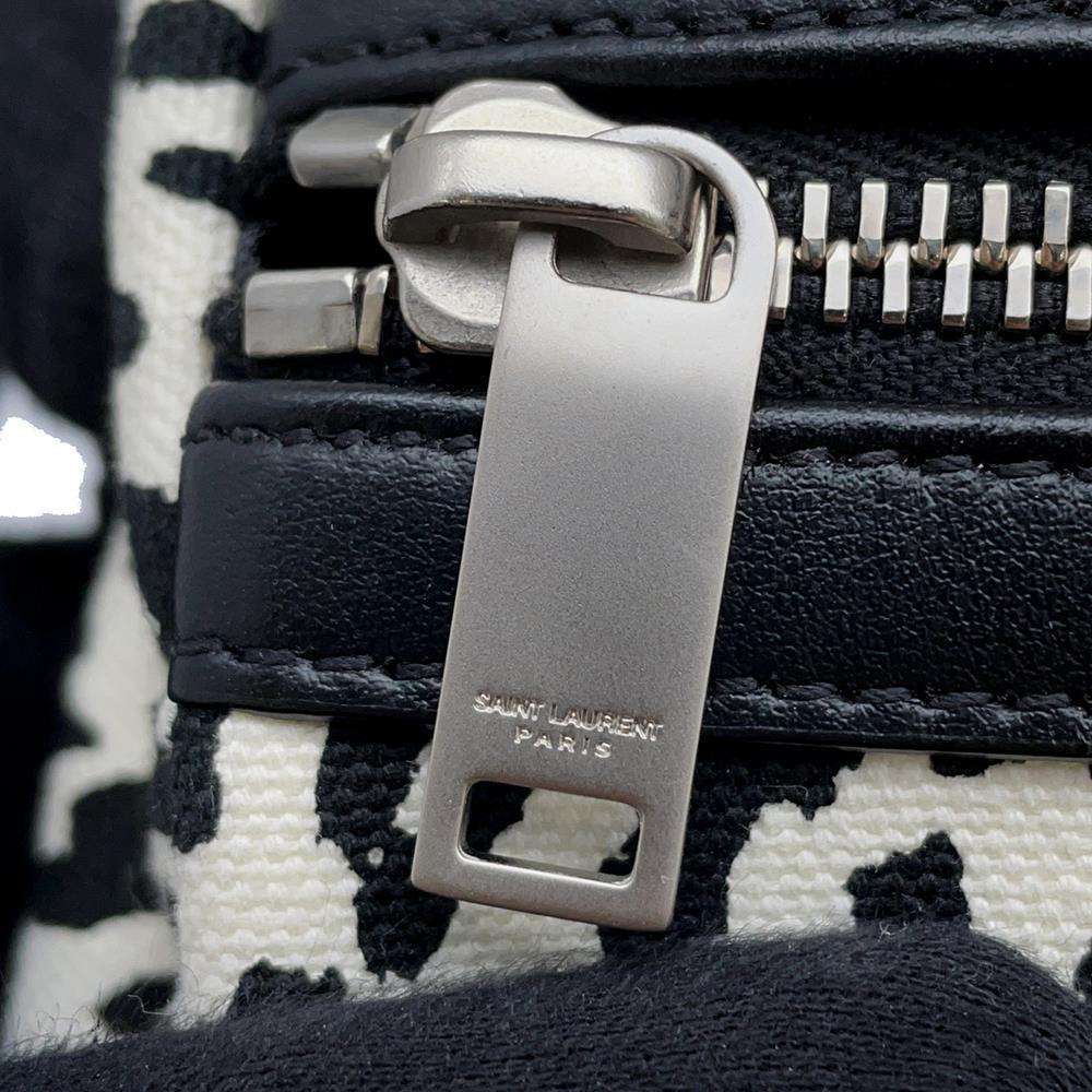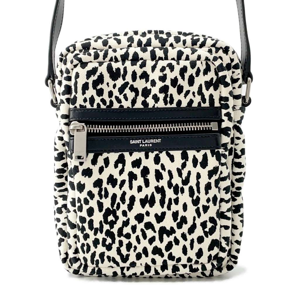 SAINT LAURENT PARIS Baby Cat Shoulder Bag White/Black581700 Canvas Leather