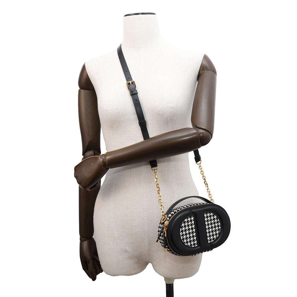 Dior Oval Camera Bag Houndstooth Black/WhiteS2201UZMF M911 Leather Cotton