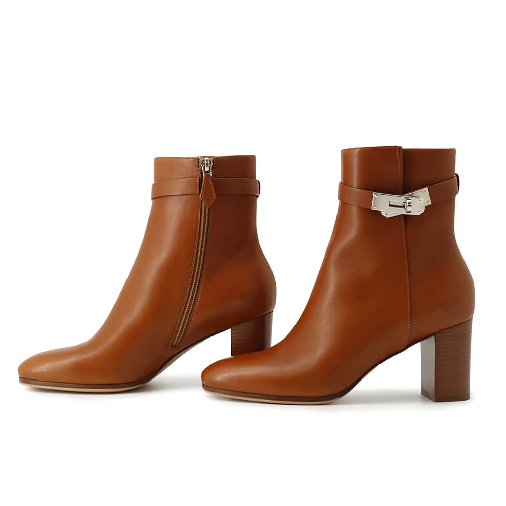 HERMES Saint Germain Boots Brown Calf Leather Size 39 1/2