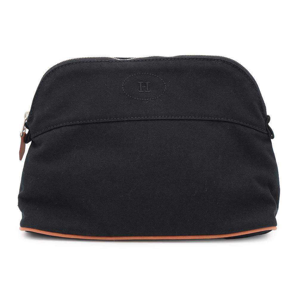 HERMES BolidePouch Black Cotton Silver Hardware Size MM