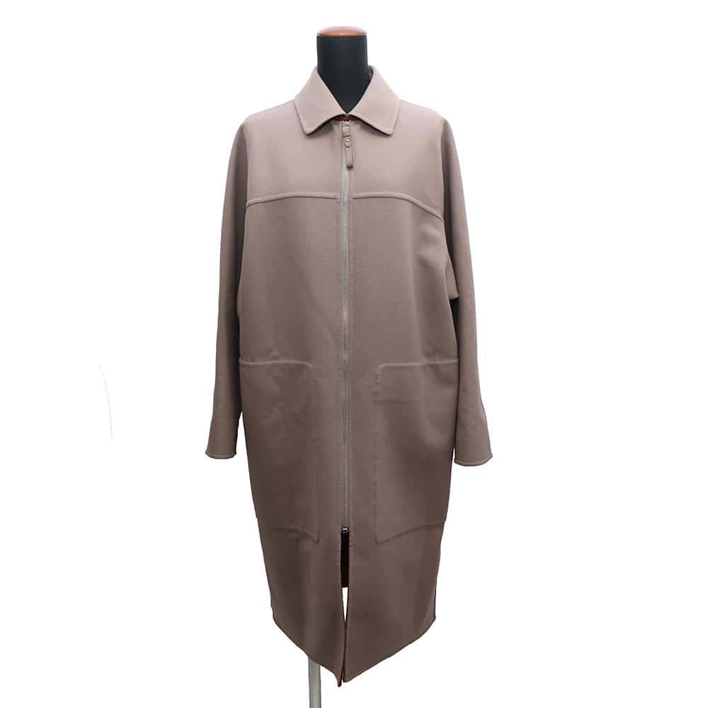 HERMES Zip-up Coat Size 38 Etoupe Wool 100%