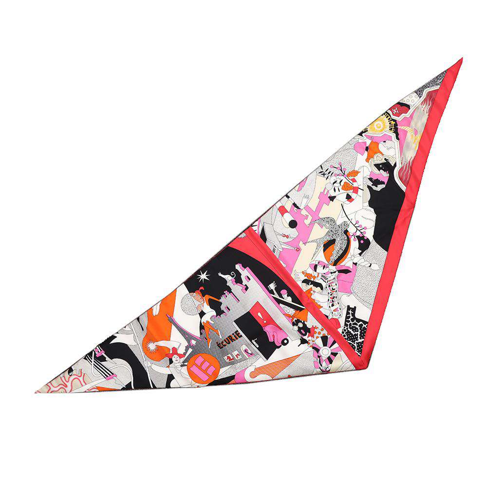 HERMES Triangle Scarf CA DECOIFFE Rose/Noir/Blanc Silk100%