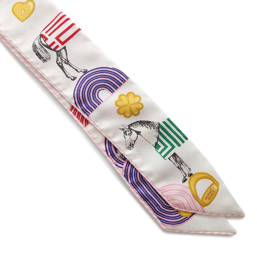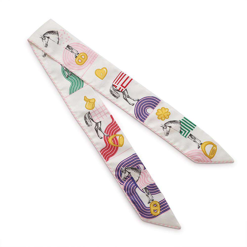 HERMES Twilly Garde Robe Pop Garde Robe Pop Blanc/Multicolor Silk100%