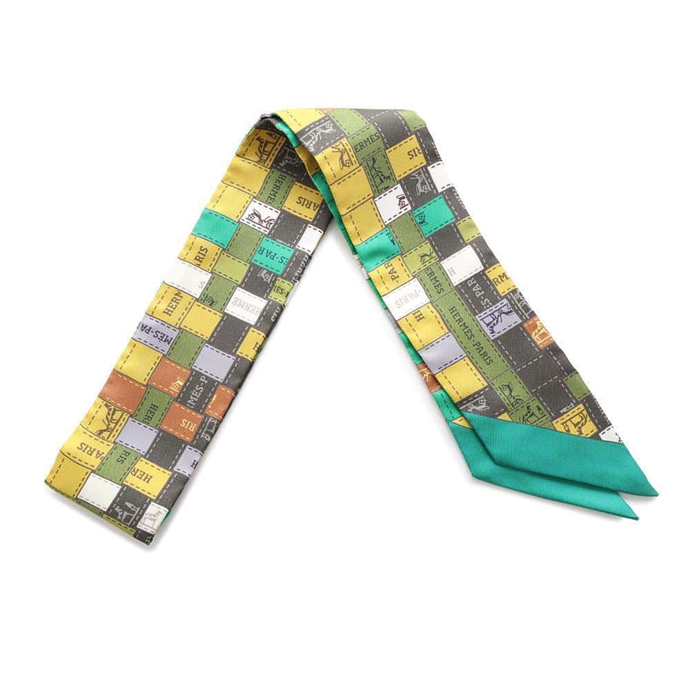 HERMES Twilly Bolduc Check Green/Yellow/Multicolor Silk100%