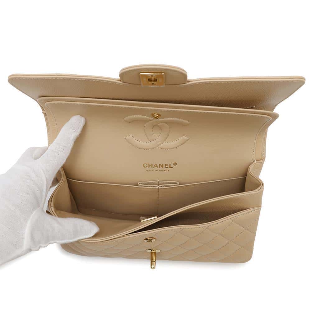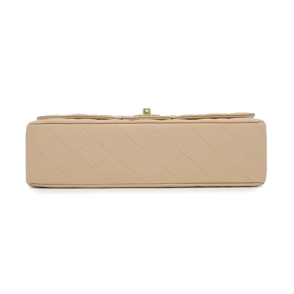 CHANEL Matelasse Double Flap Chain Shoulder Bag BeigeA01112 Caviar Leather Size 25