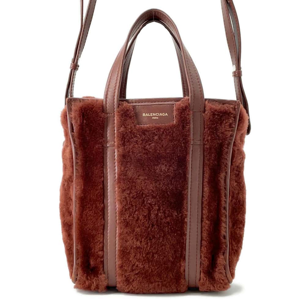 BALENCIAGA Bazar shopper Brown452458 Fur Leather