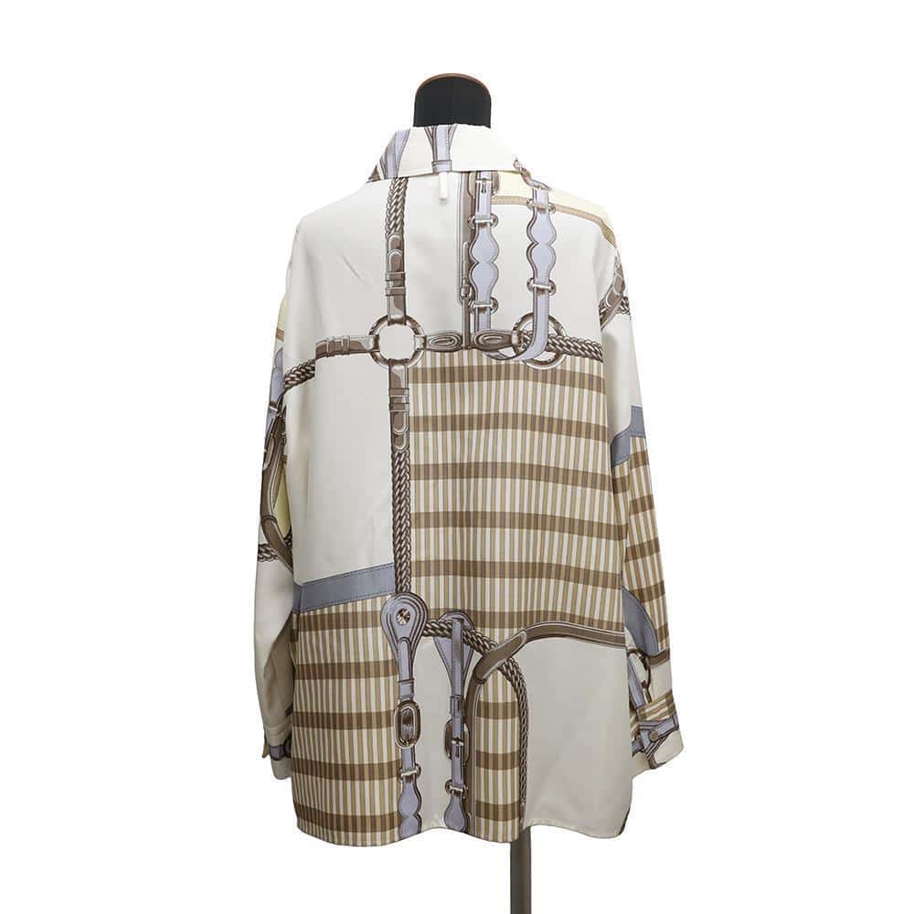 HERMES Wide shirt "Coaching Remix" Size 40 Multicolor Silk100%
