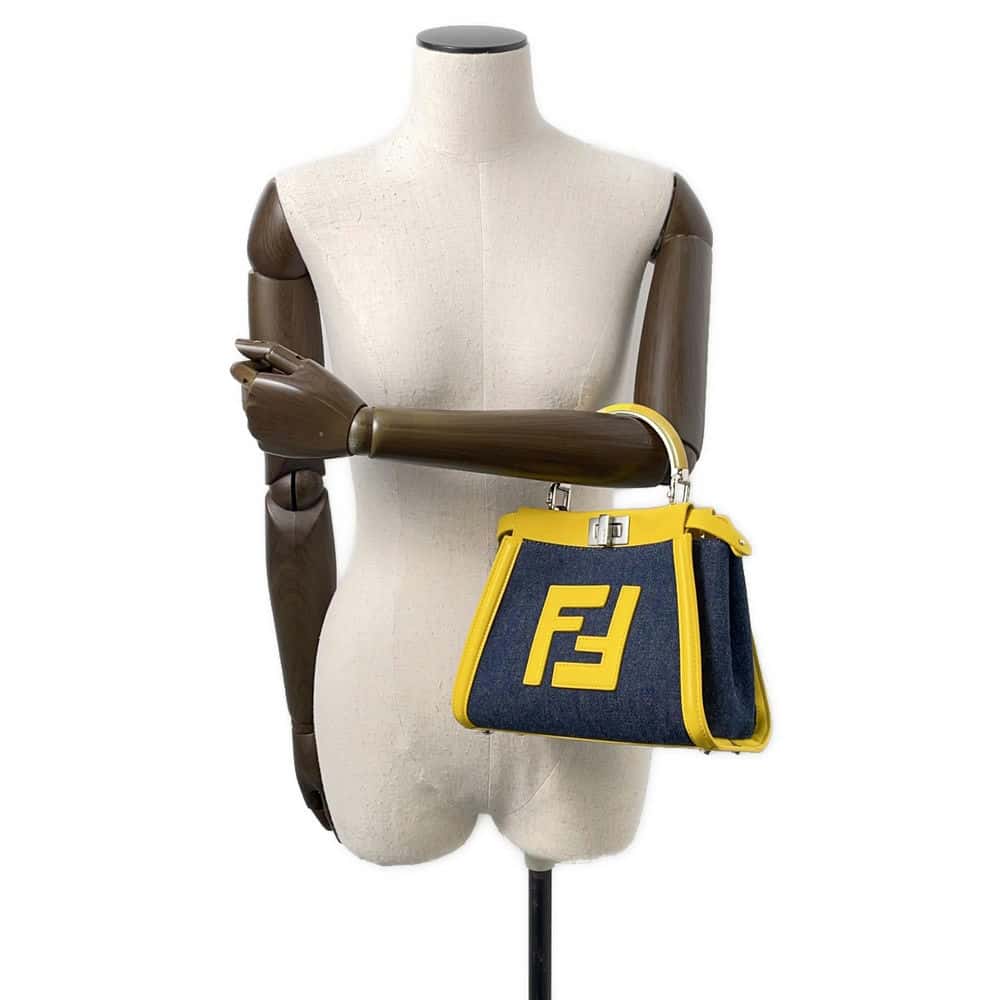 FENDI Peekaboo Iconic Yellow8BN316 Leather Denim Size Mini
