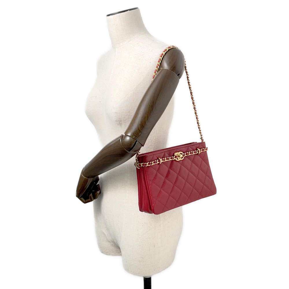 CHANEL Matelasse Shopping Bag Chain one belt RedAS4437 Caviar Leather Size Small