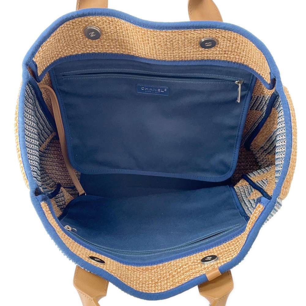 CHANEL Large shopping bag Beige/NavyA57161 Straw Leather