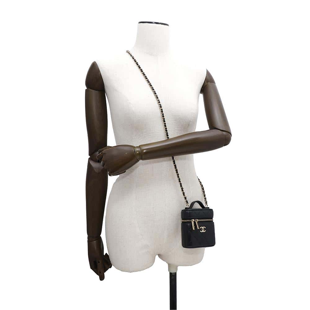 CHANEL Matelasse 2WAY Chain Vanity Case BlackAP2503 Caviar Leather Size Small