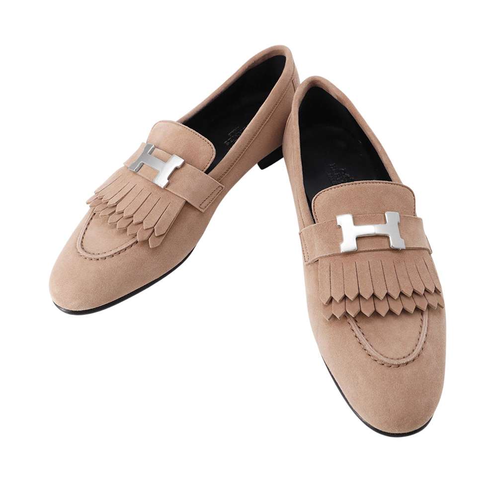 HERMES Mocassins Royale Jasmin Flower suede Size 38