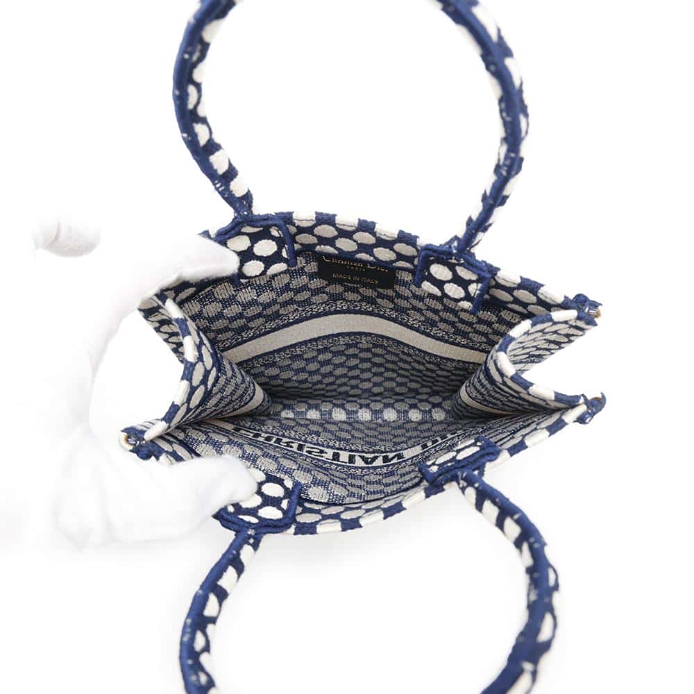 Dior Vertical Book Tote Dot White/Navy Canvas