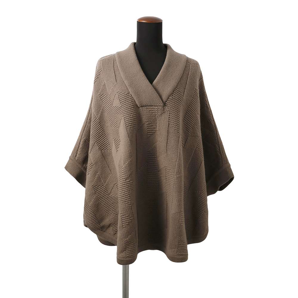 HERMES H logo poncho Size 34 Brown Wool 100%