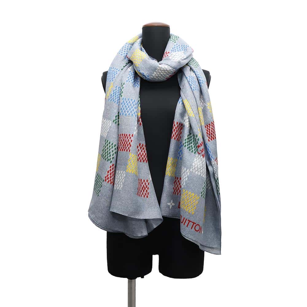 LOUIS VUITTON Stole・LV Birds Damier Denim Denim BlueM96285 Cotton70% Silk30%