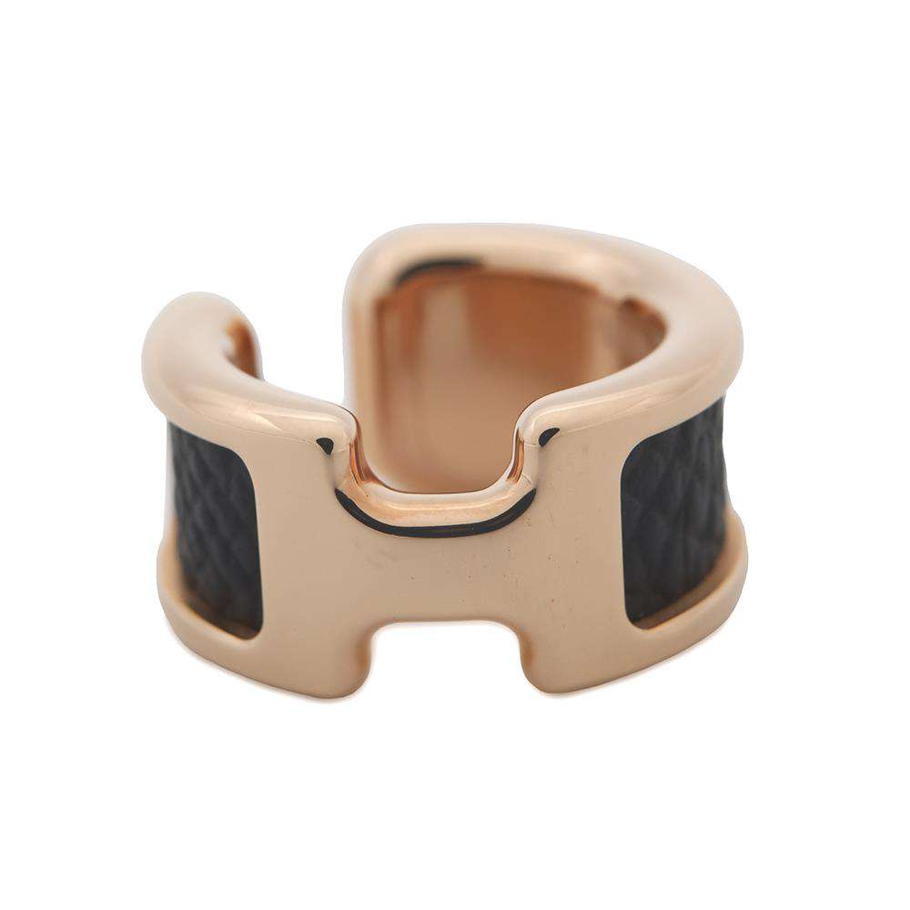 HERMES Olympe ear cuff Size PM Black Metal Epsom