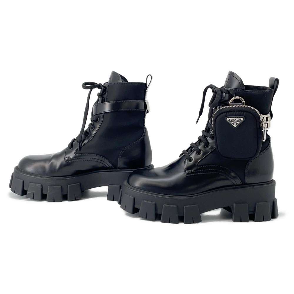 PRADA PRADA Monolith Pouch Leather x Re-Nylon Combat Boots Black1T255M Leather Nylon Size 37 2/1
