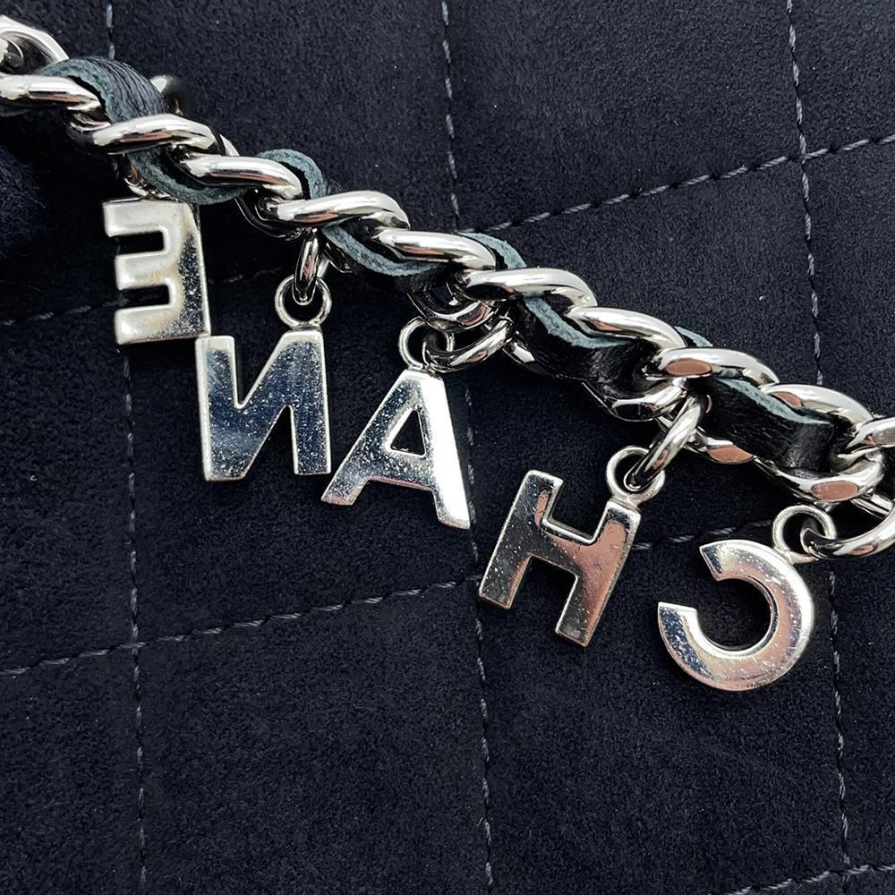 CHANEL Matelasse Star Motif Round ChainShoulder Black suede