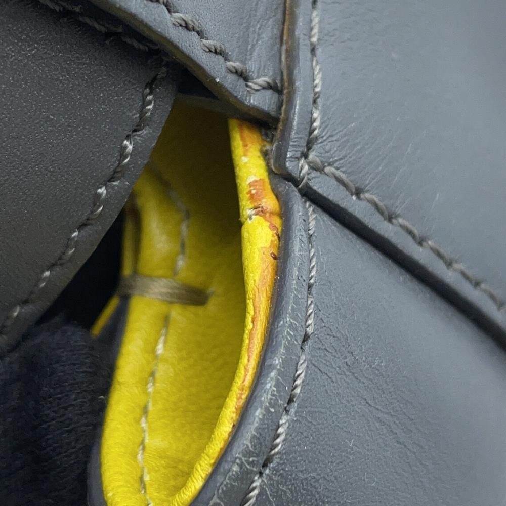 Condition Details | Surface/Shape-destroying, Scuffs, Bond Smudges Interior/Scuffs, Pressed marks, Bond Smudges Handle & Shoulder / Scuffs, Creases Metal/Scuffs, Smudges, Deterioration, Verdigris, Peelings |