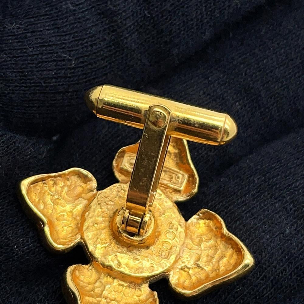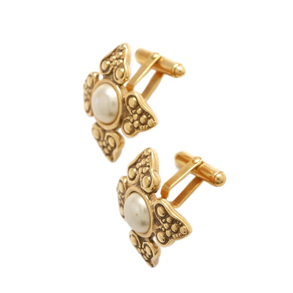 CHANEL Faux Pearl Cufflinks Gold Metal