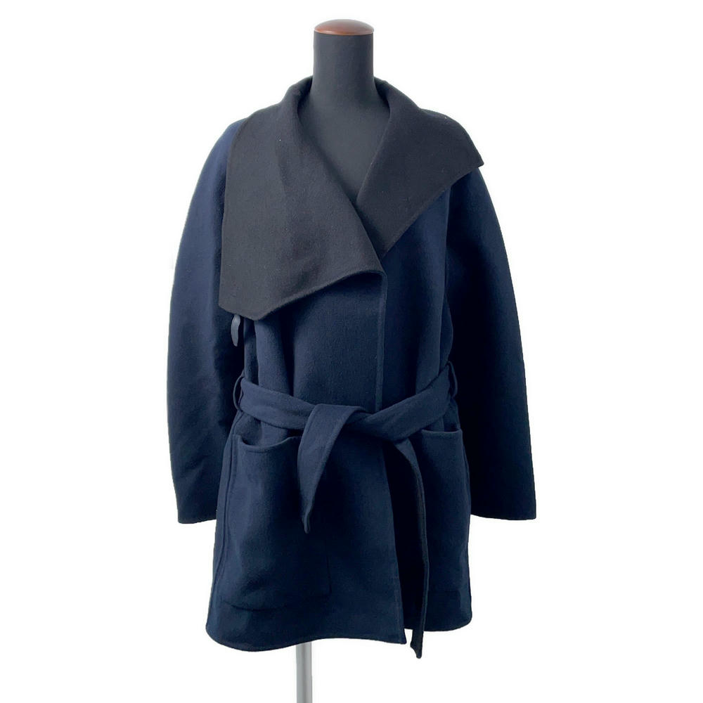 HERMES Blanket Coat Size 36 Navy/Black Cashmere100%