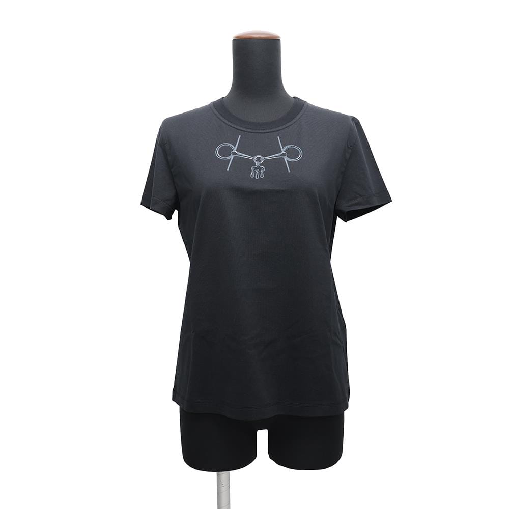 HERMES Cartouche Mall T-Shirt Size 36 Black Cotton100%