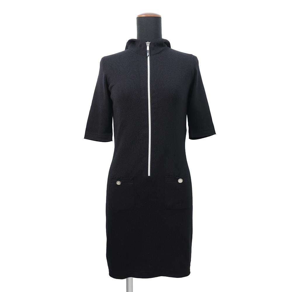 CHANEL CC LogoButton Dress Size 36 BlackP78647 Cotton70% Cashmere30%