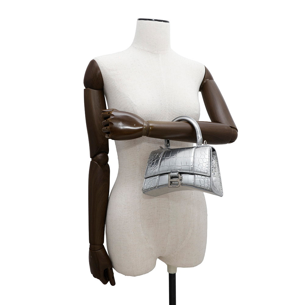 BALENCIAGA Hourglass 2wayBag Silver592833 Croco embossed leather Size XS