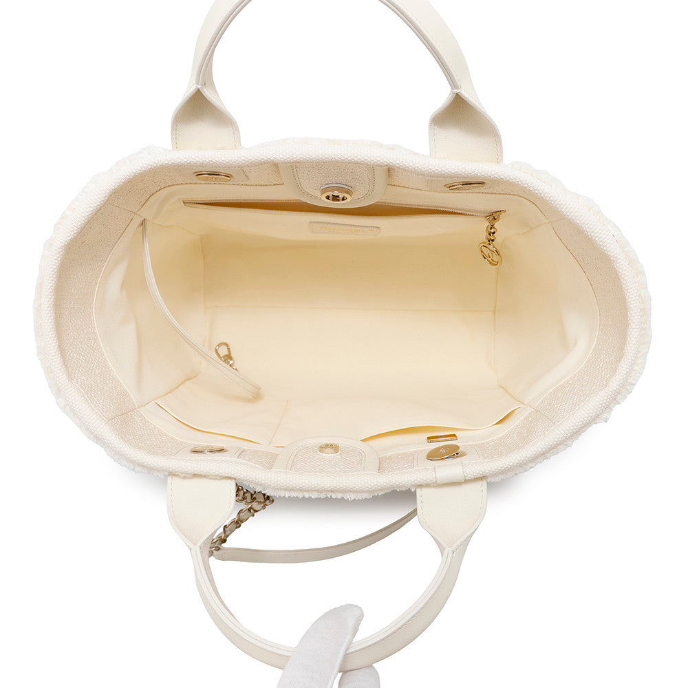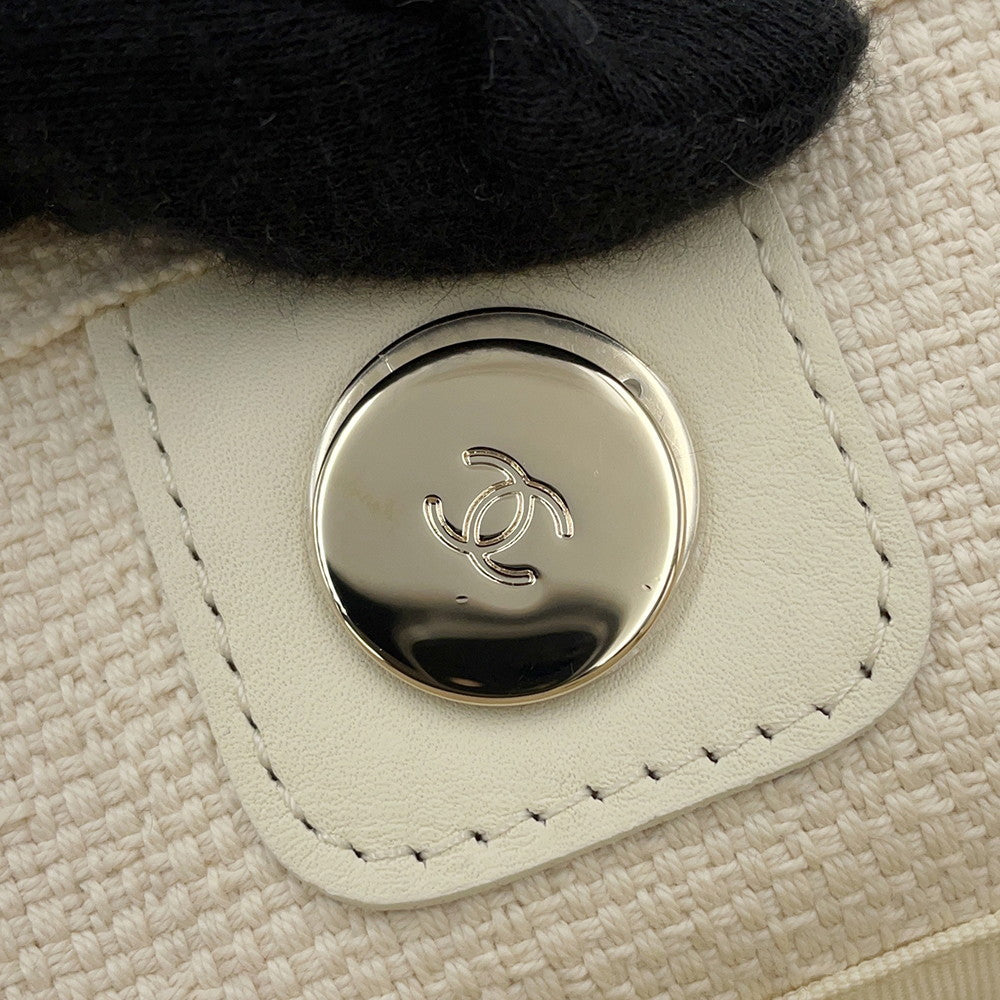 CHANEL Shopping Bag Deauville Ecru/Red/BlueAS3351 Cotton Leather
