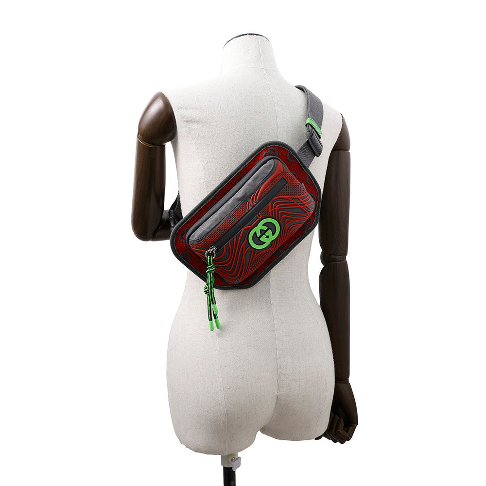 GUCCI GGNylon Belt Bag Gray/Red/Green752102 Nylon Rubber