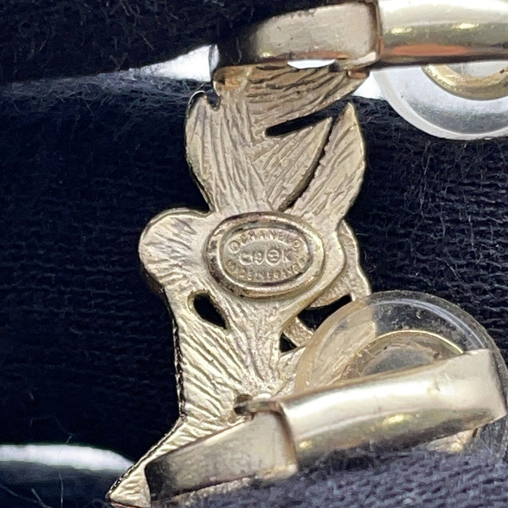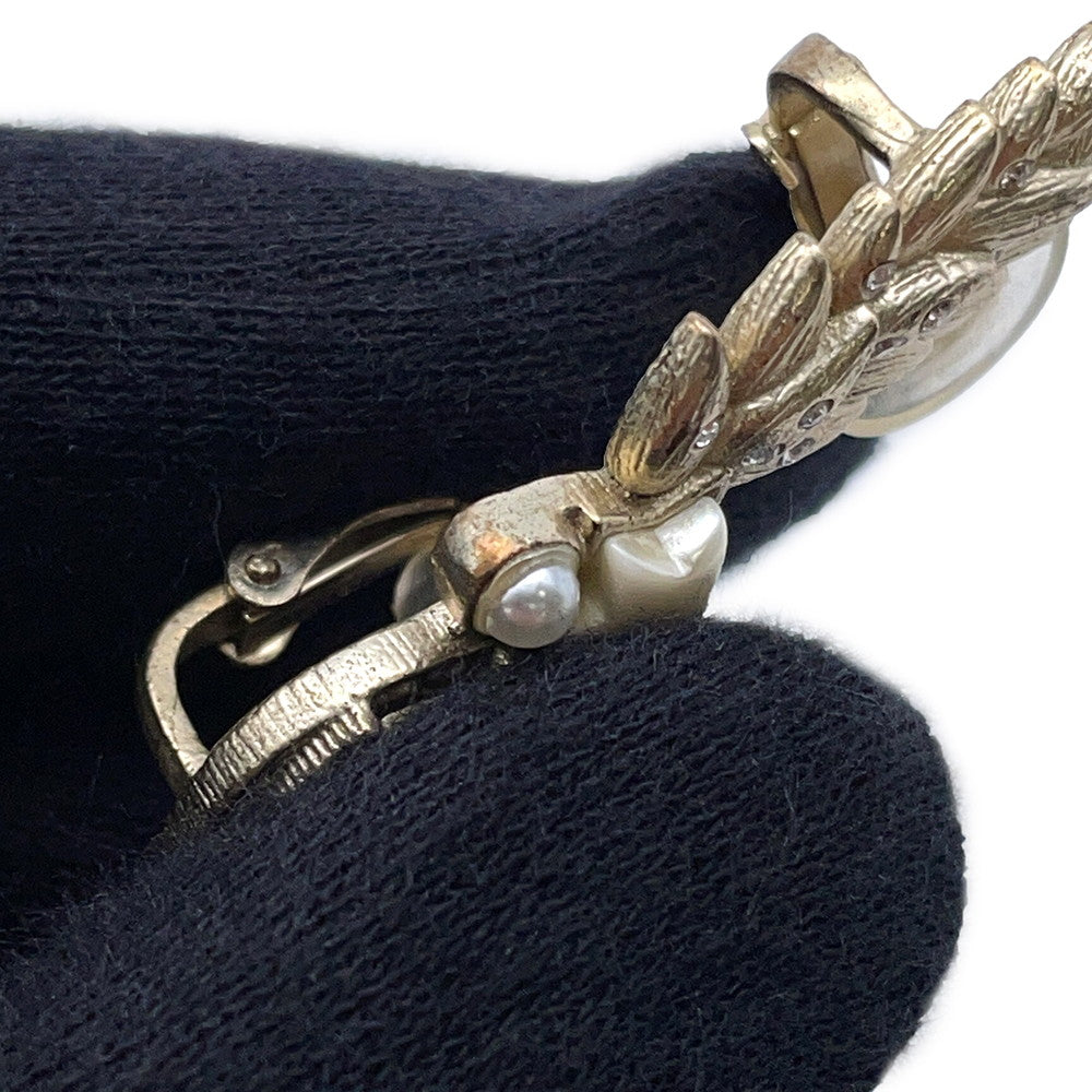 CHANEL Rhinestone Faux Pearl Star Earrings Gold Gold Plated