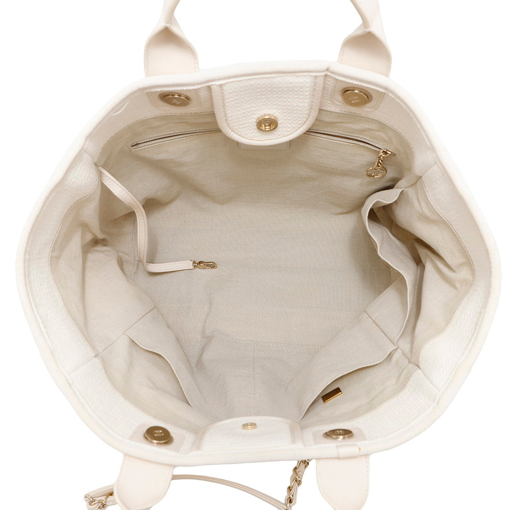 CHANEL Deauville 2WAY ChainTote Bag IvoryA66941 Canvas Leather Size GM